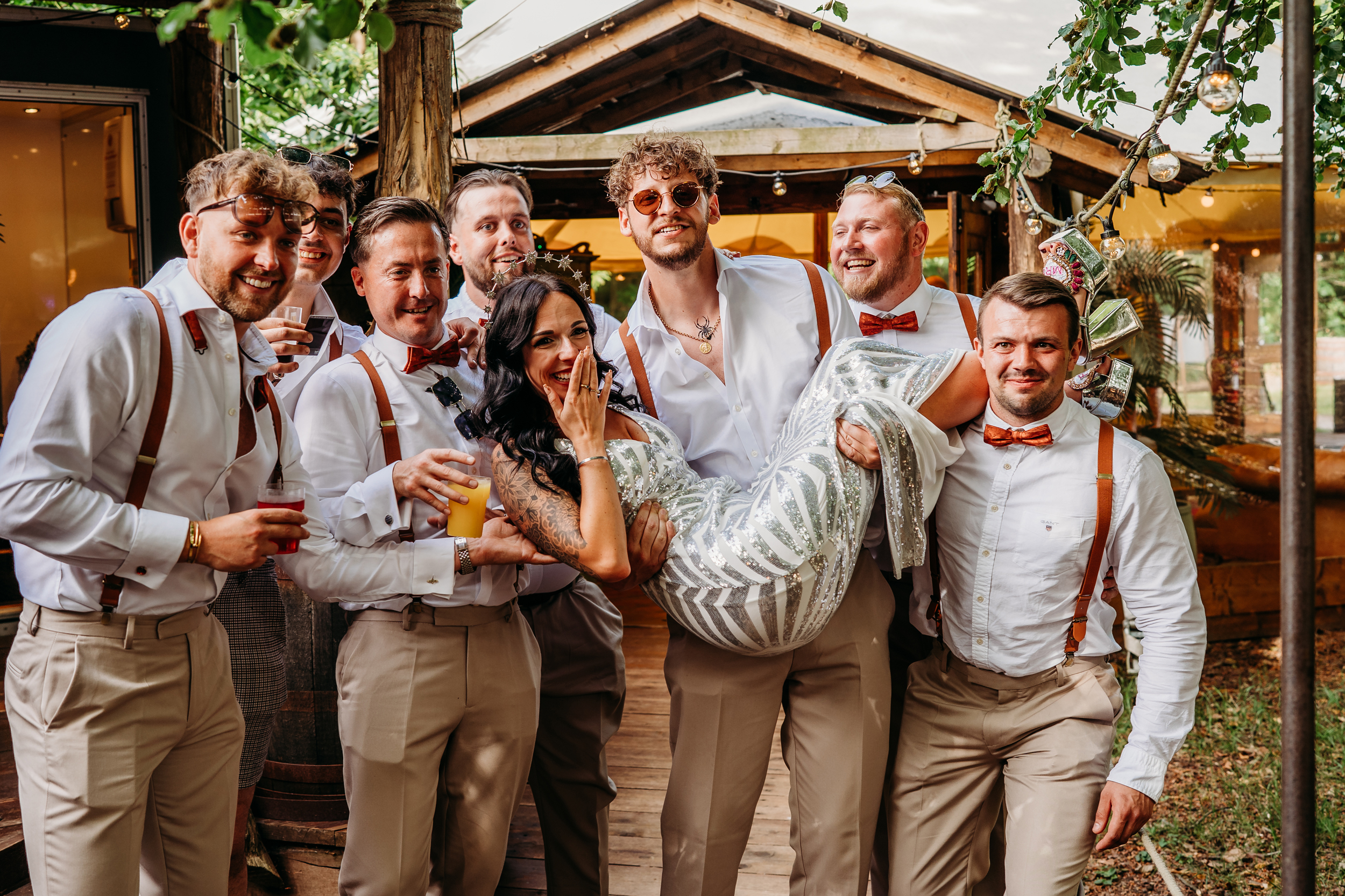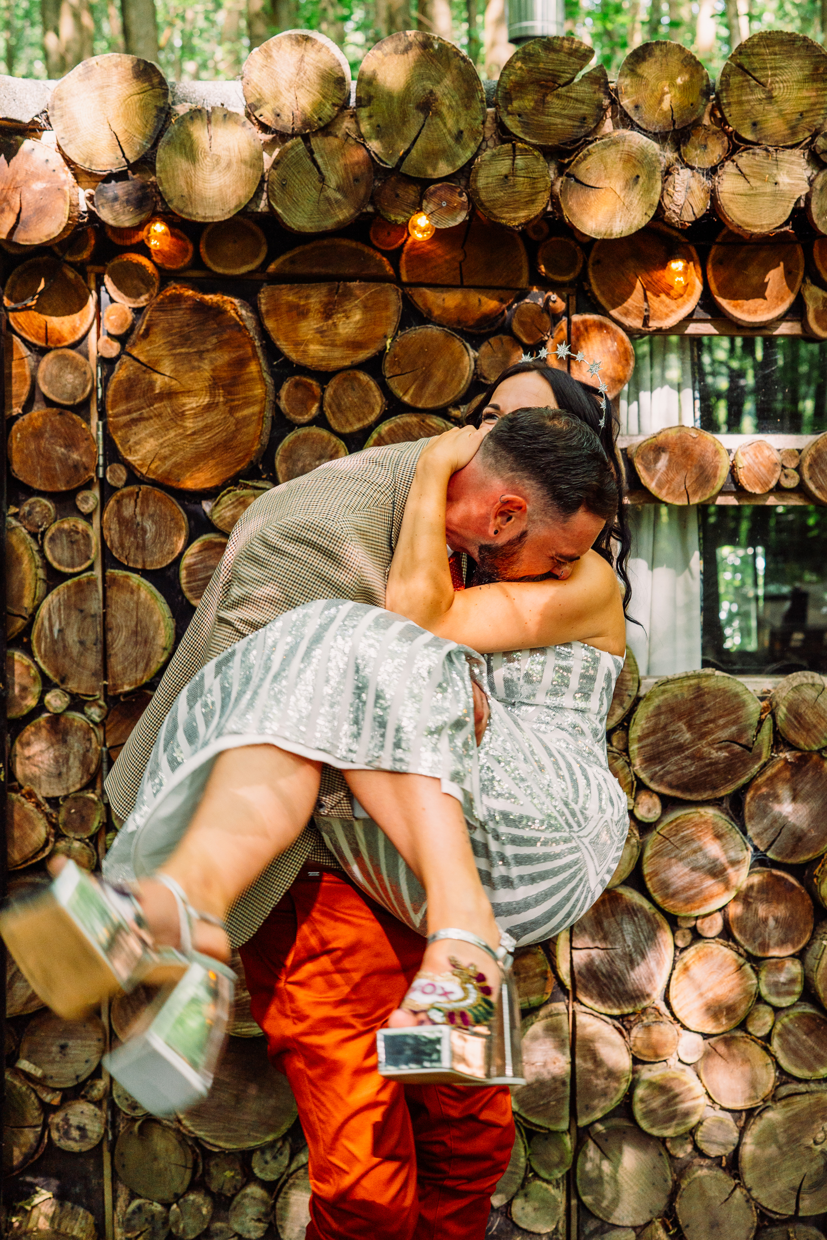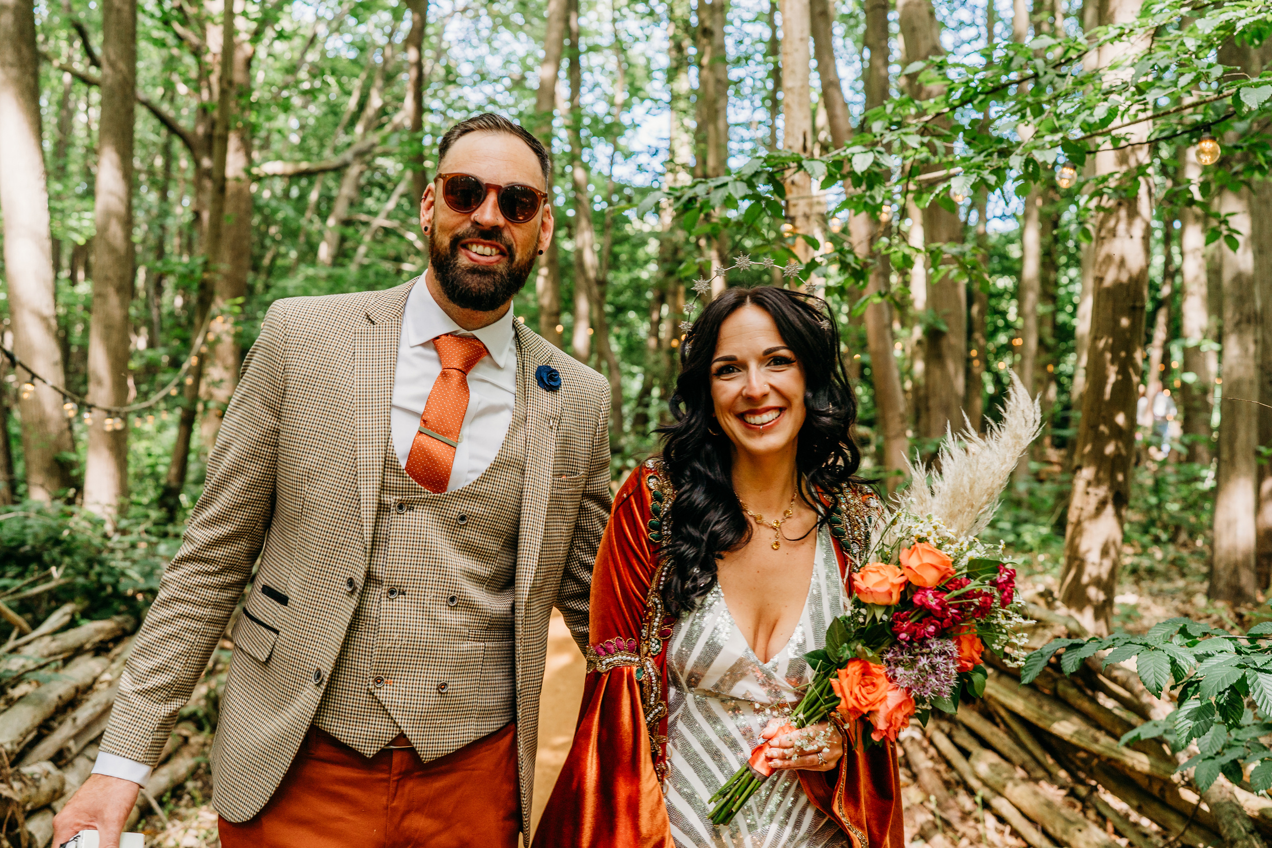 Fox Fest was the name Sián and Grant gave to their wedding, a nod to their surname and the fact it felt more like a festival than a wedding. Their day was held at The Dreys in Kent, a magical woodland venue with tents and music running late into the night. “There are no words immense enough to describe Jackie and Dave who own The Dreys”, the bride said. “Their energy together with nature herself has created perhaps the most special, beautiful corner of the universe. Their venue, nestled in the woods, became the most perfect festival spot in the sunshine and so we didn’t need to do tons to it.”