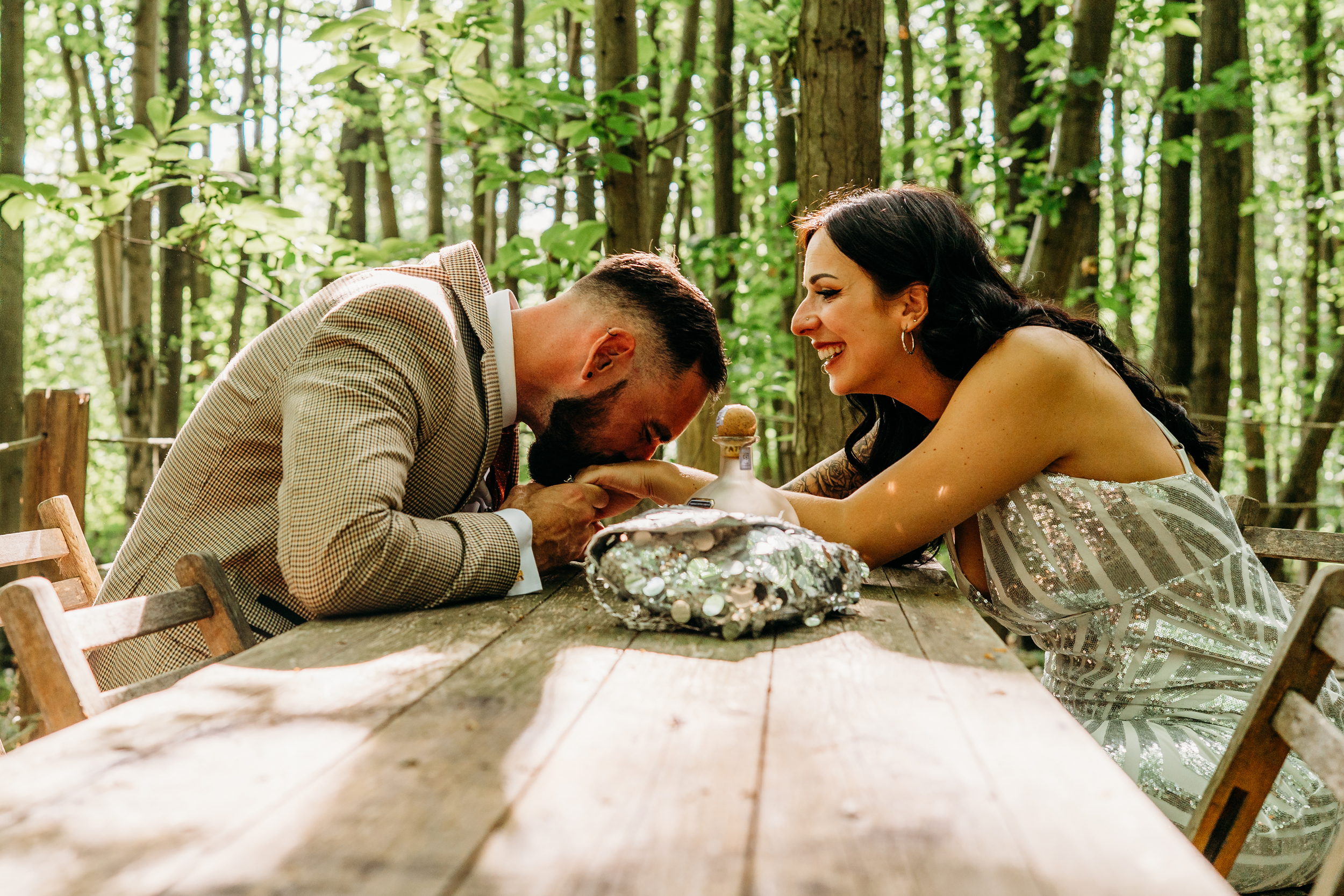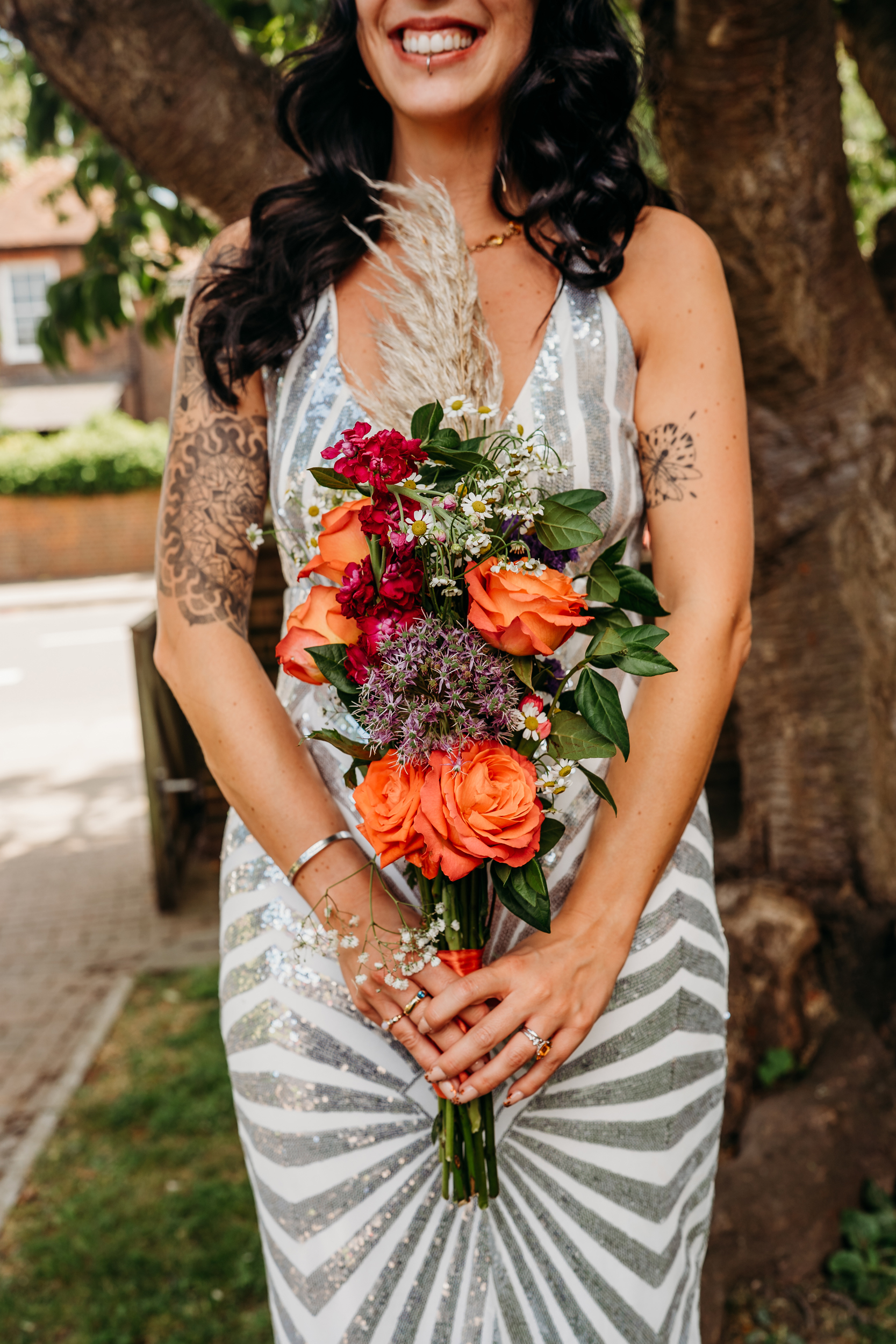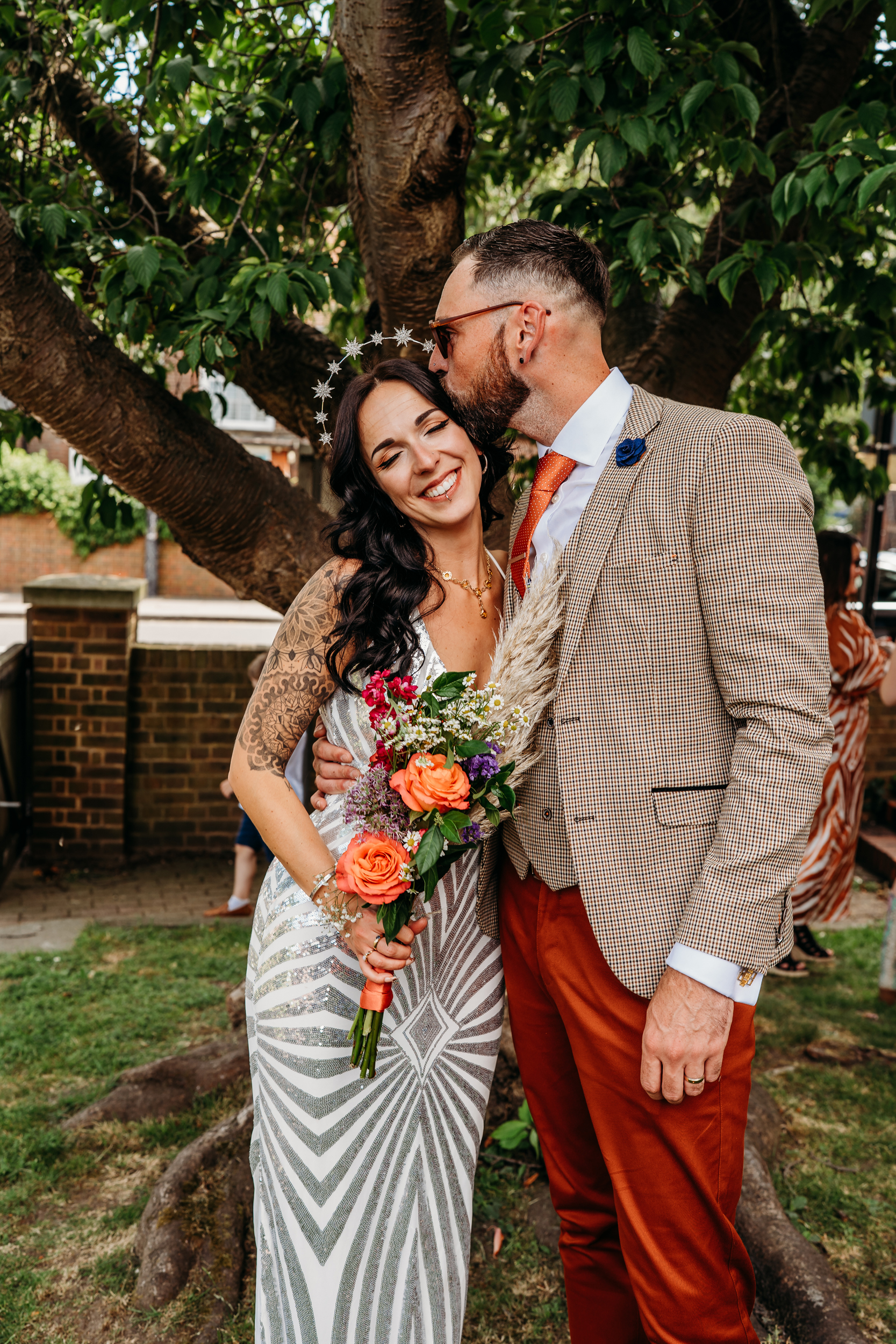 Fox Fest was the name Sián and Grant gave to their wedding, a nod to their surname and the fact it felt more like a festival than a wedding. Their day was held at The Dreys in Kent, a magical woodland venue with tents and music running late into the night. “There are no words immense enough to describe Jackie and Dave who own The Dreys”, the bride said. “Their energy together with nature herself has created perhaps the most special, beautiful corner of the universe. Their venue, nestled in the woods, became the most perfect festival spot in the sunshine and so we didn’t need to do tons to it.”