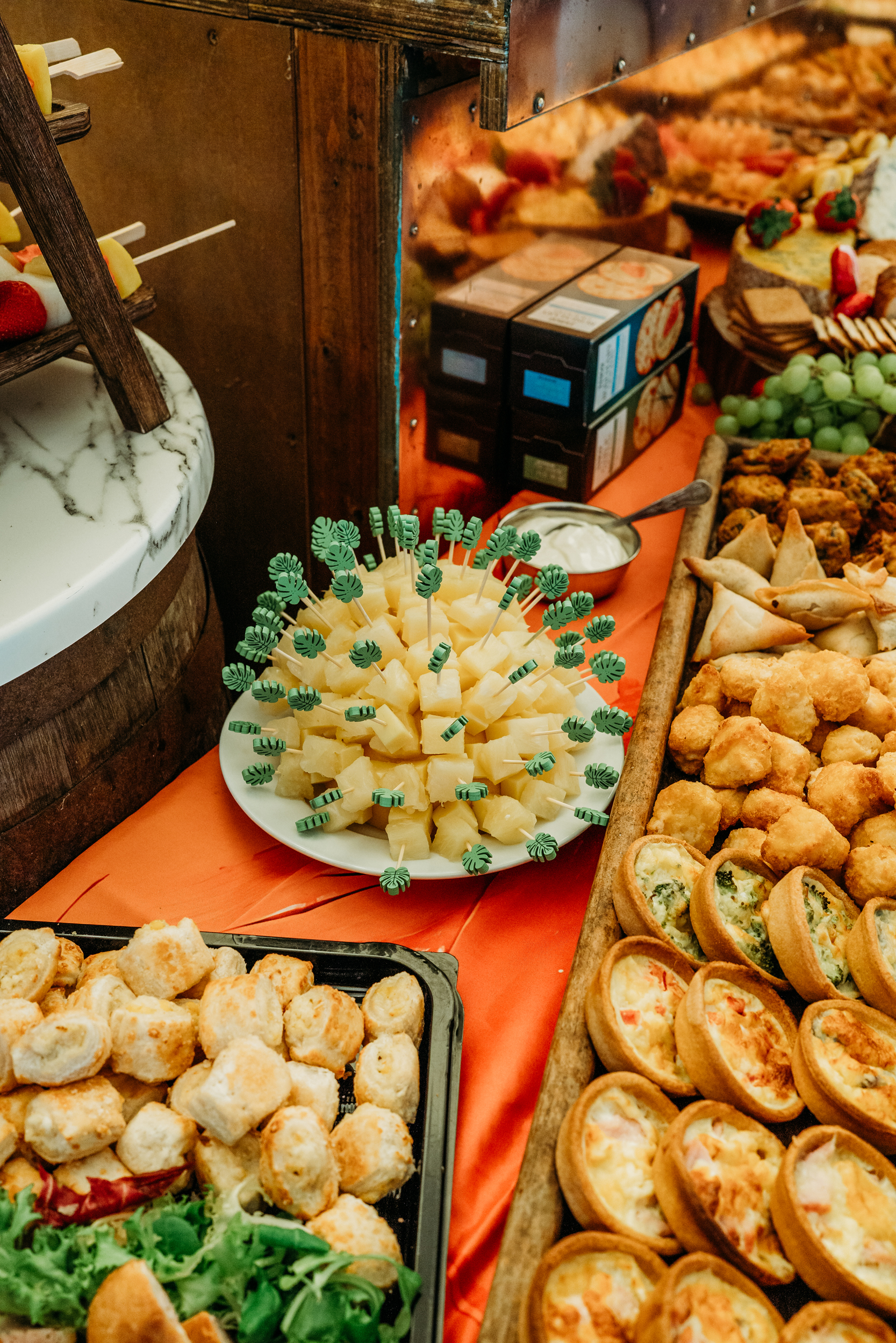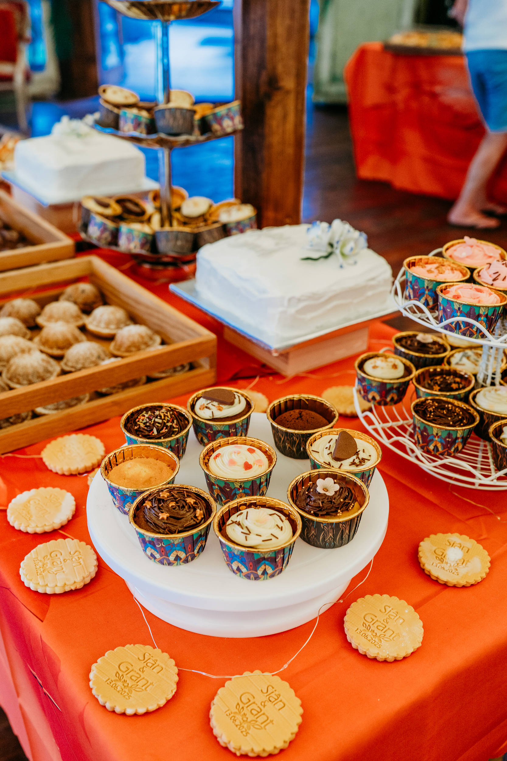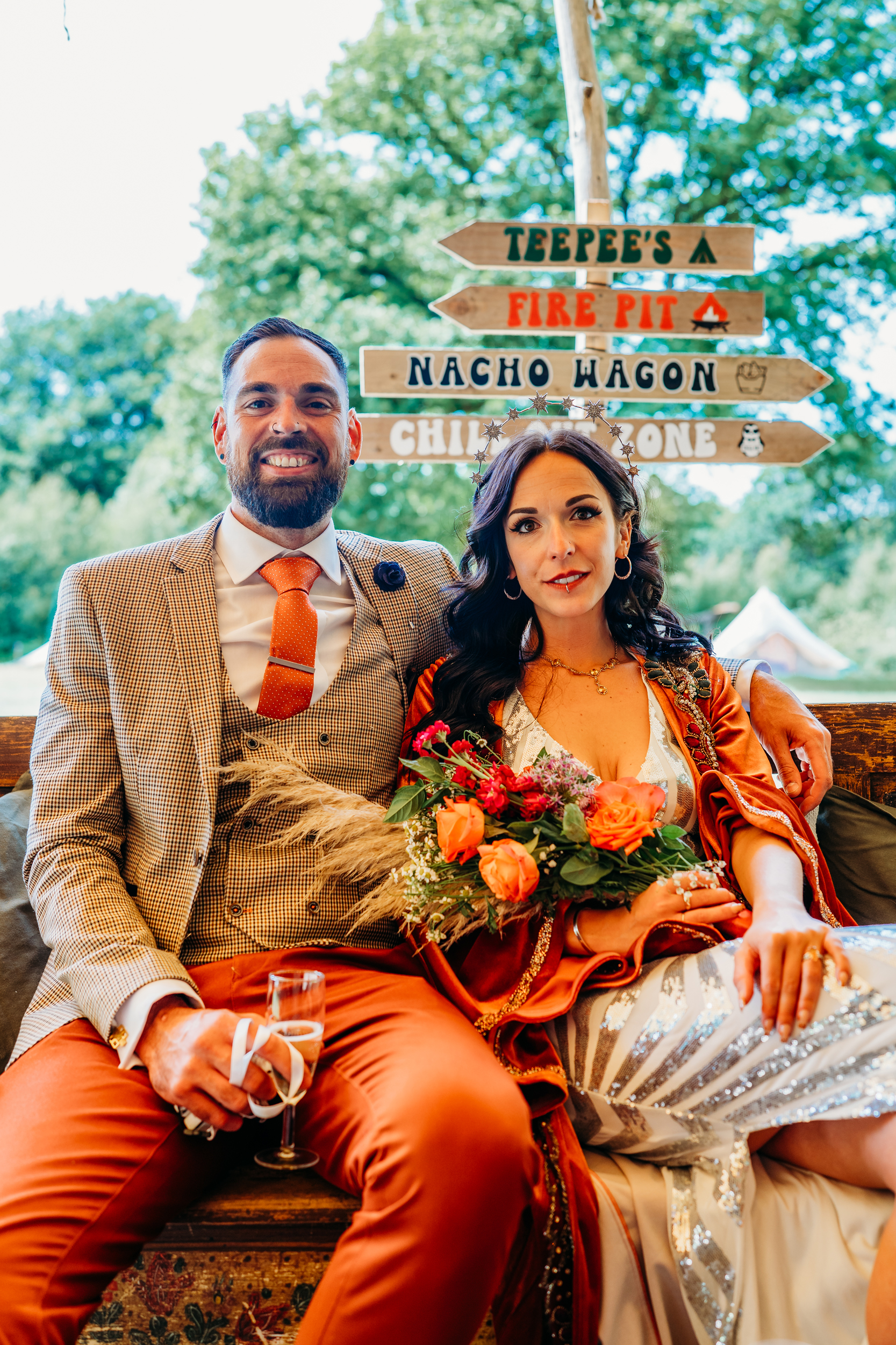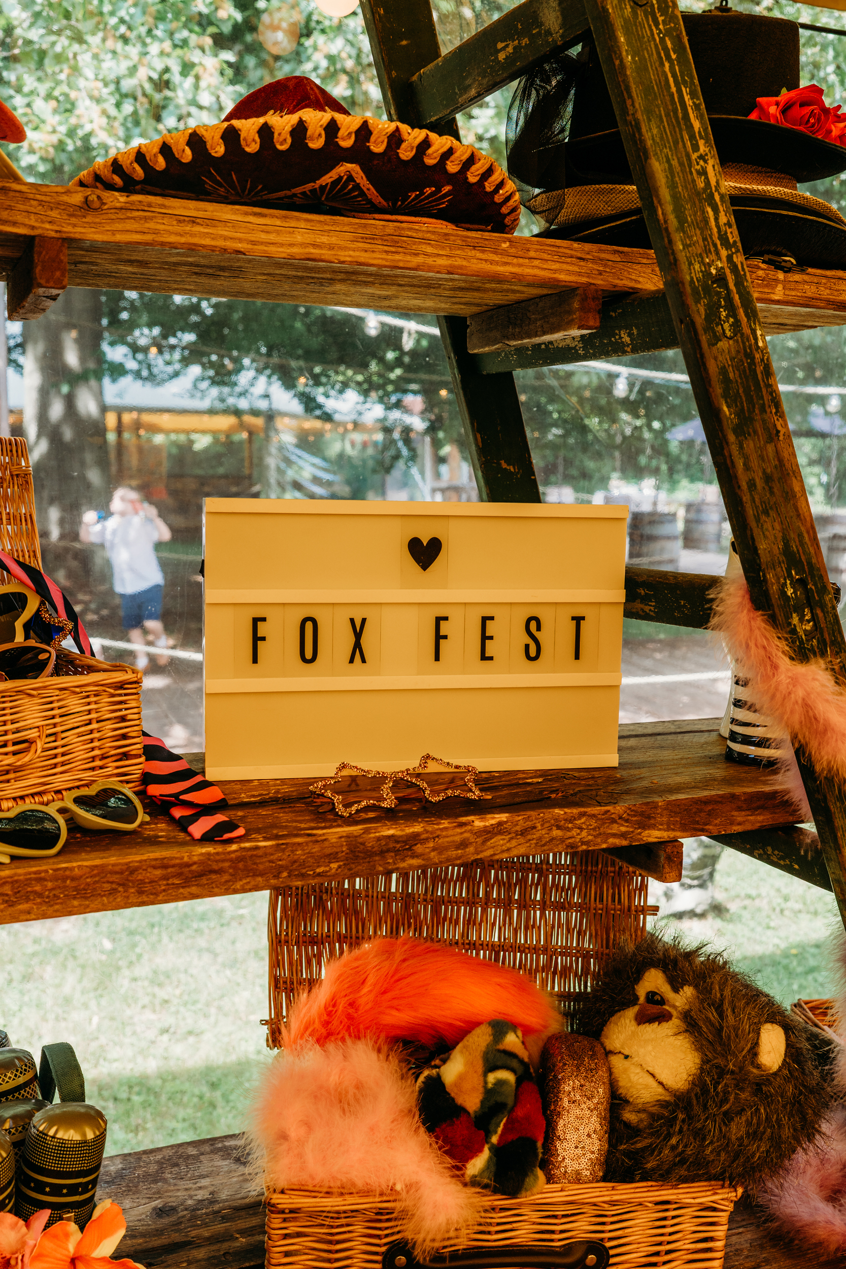 Their families pulled together to bring Fox Fest to life. Grant’s dad made the wooden signage, while Sián’s mum created all the festival signs and baked their wedding cake. Grant’s step-mum added chocolate brownie logs and trays of other sweets to the feast.