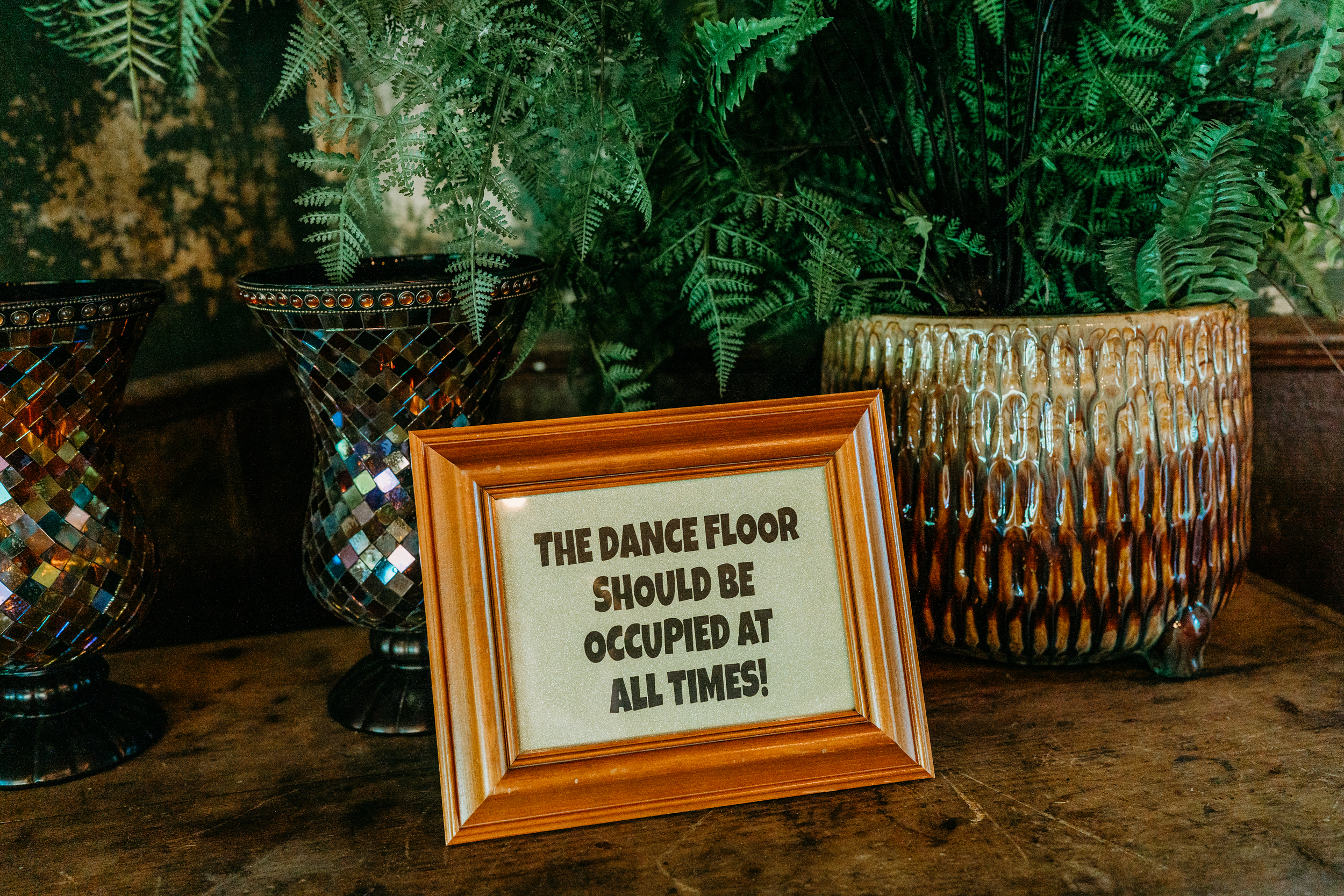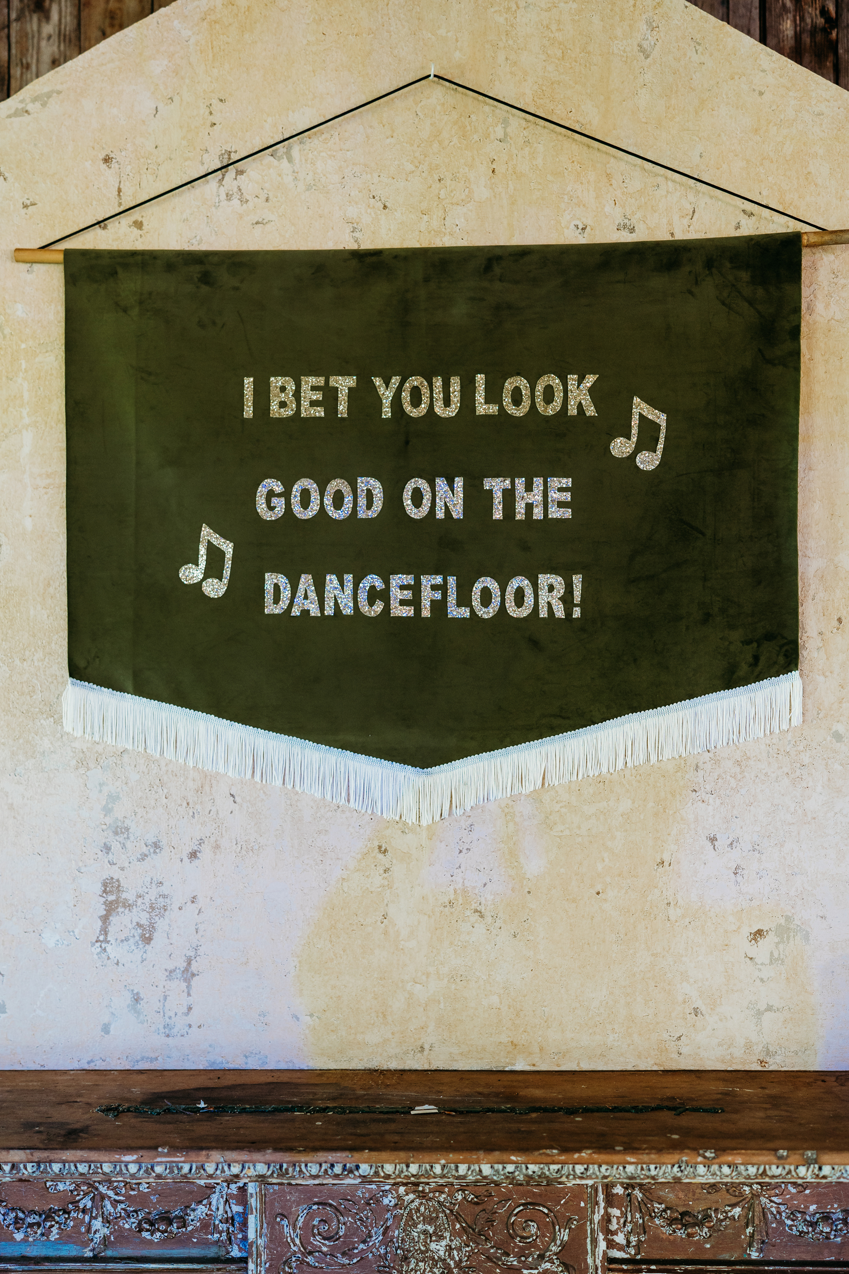 The couple wanted a celebration packed with glitter, dancing, and no absolutely rules. Their dress code was Elton John meets Ziggy Stardust, and their guests fully committed. Sequins, sparkle, floral headbands, gem-studded faces, and tattoos from the DIY station transformed the crowd as the night went on.