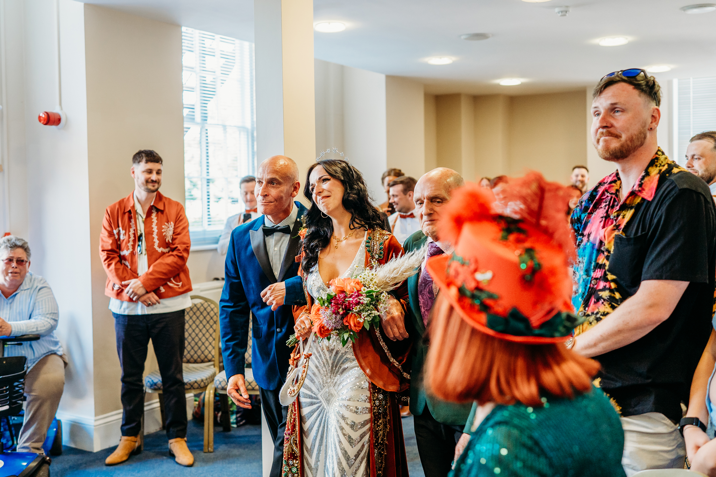 The DIY spirit ran through every part of the wedding. Sián’s dress was a £25 Vinted find, layered with a robe sourced from old film costume stock on Etsy. She customised her shoes and kept her total outfit spend to just £271. Flowers came from the reduced aisles of Morrisons and Asda, with a handful of special stems from her local florist, The Bloom Room. She and her bridesmaids built their bouquets the night before and in total the cost came to only £60 for all the bouquets!