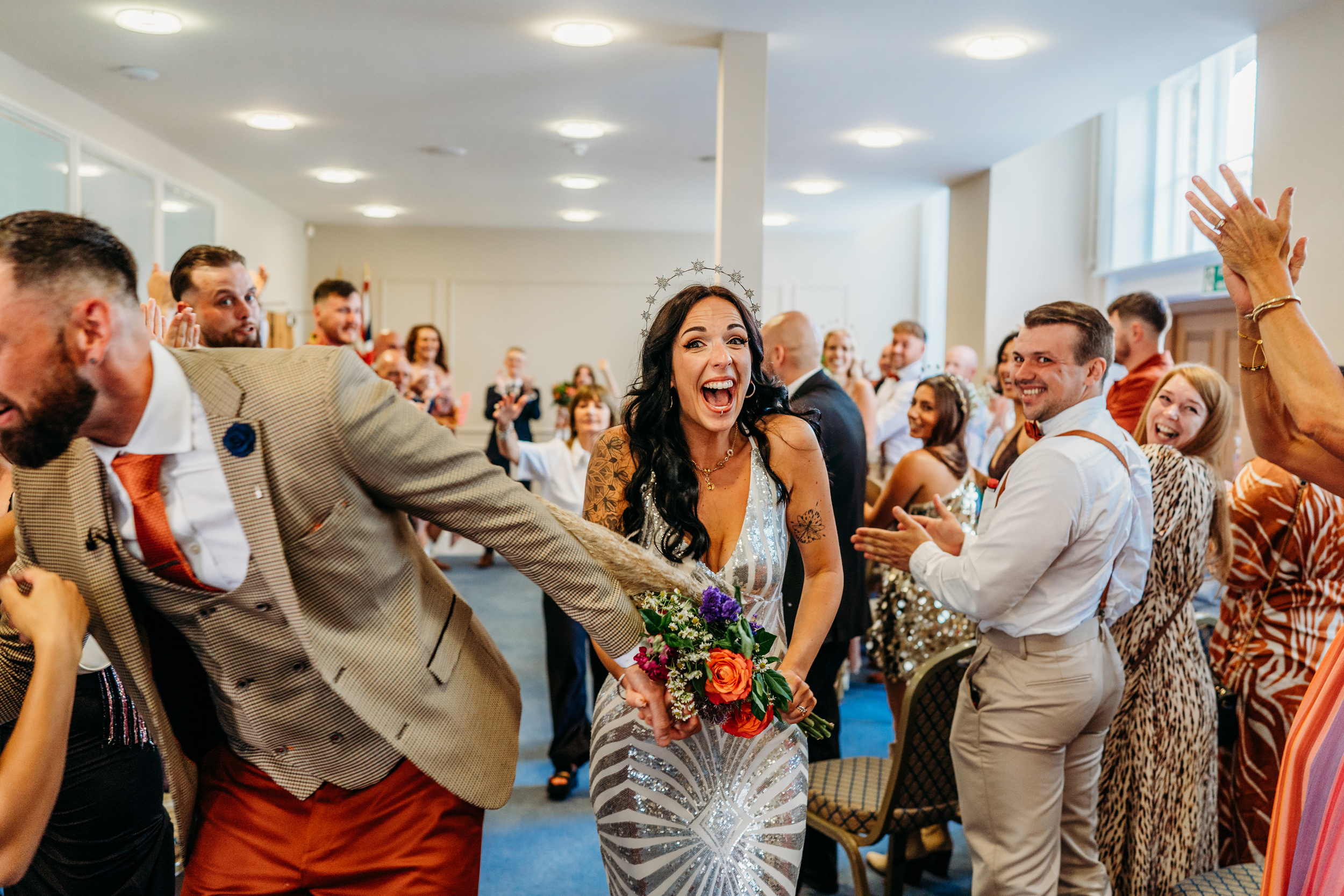 Planning took just three months, and they kept it light-hearted. “We made an effort to make planning really joyful – so we’d schedule cute coffee dates or evenings with bubbles and go through stuff.” The seating plan for the registry office was the most stressful detail, and even that turned out fine. The hardest part, Sián admits, was navigating guest list politics. “I didn’t imagine people would be so upset about our guest list. There were a number of instances that I had to remind family that it is our wedding and our decision who we invited.” The couple were firm about only inviting their favourite people, keeping the energy of the day exactly how they wanted.