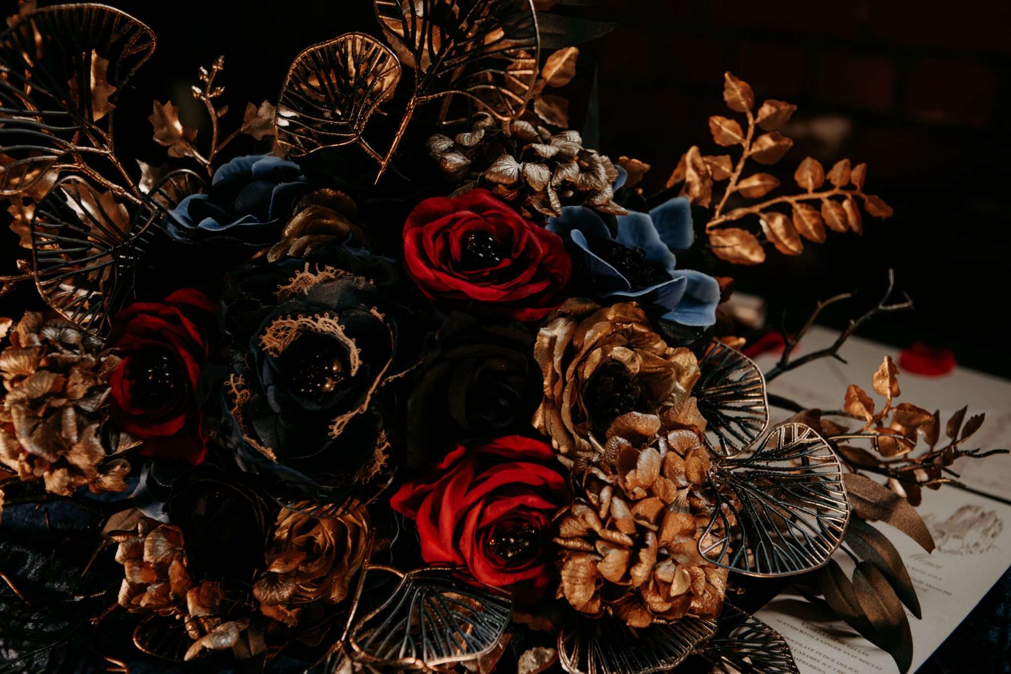 “The shoot is a celebration of dark romance, opulence, and individuality,” Sira continued “It’s inspired by the timeless fairytale but reimagined with a gothic edge.” The result was a cinematic fusion of moody florals, ornate fashion, and rich, decadent styling. Everything was designed to transport you into a world where fantasy and reality collide, and where couples can see what it looks like to embrace both magic and melancholy in equal measure.