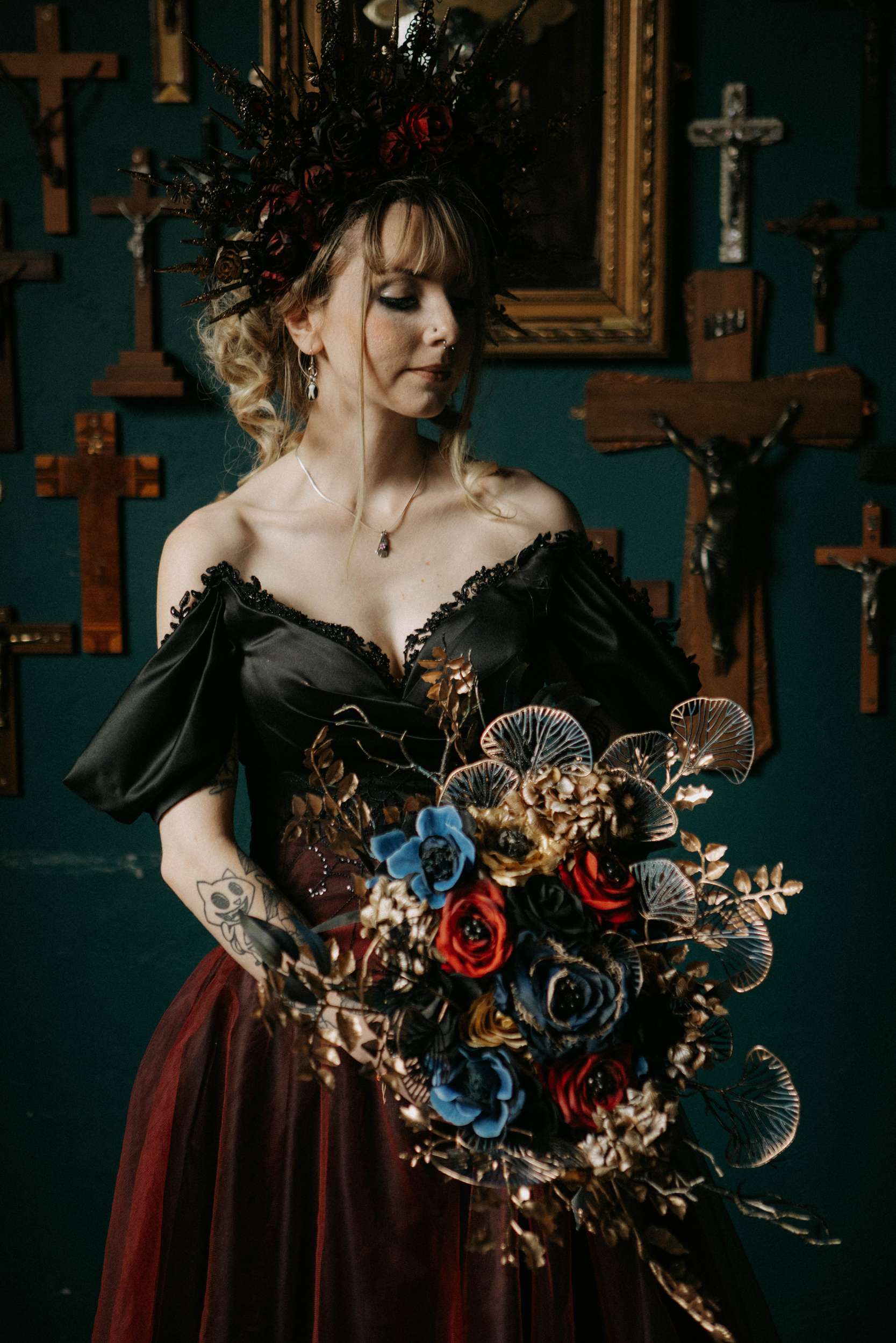 “The wedding industry can sometimes feel very rigid, with a lot of focus on trends, perfection, and ‘rules’ about what a wedding should look like. Navigating it as someone who wants to celebrate individuality and alternative styles can be challenging, but it’s also incredibly rewarding. Shoots like this show that there’s space for creativity, boldness, and inclusivity. It’s about giving people permission to see beauty in unconventional ways.”