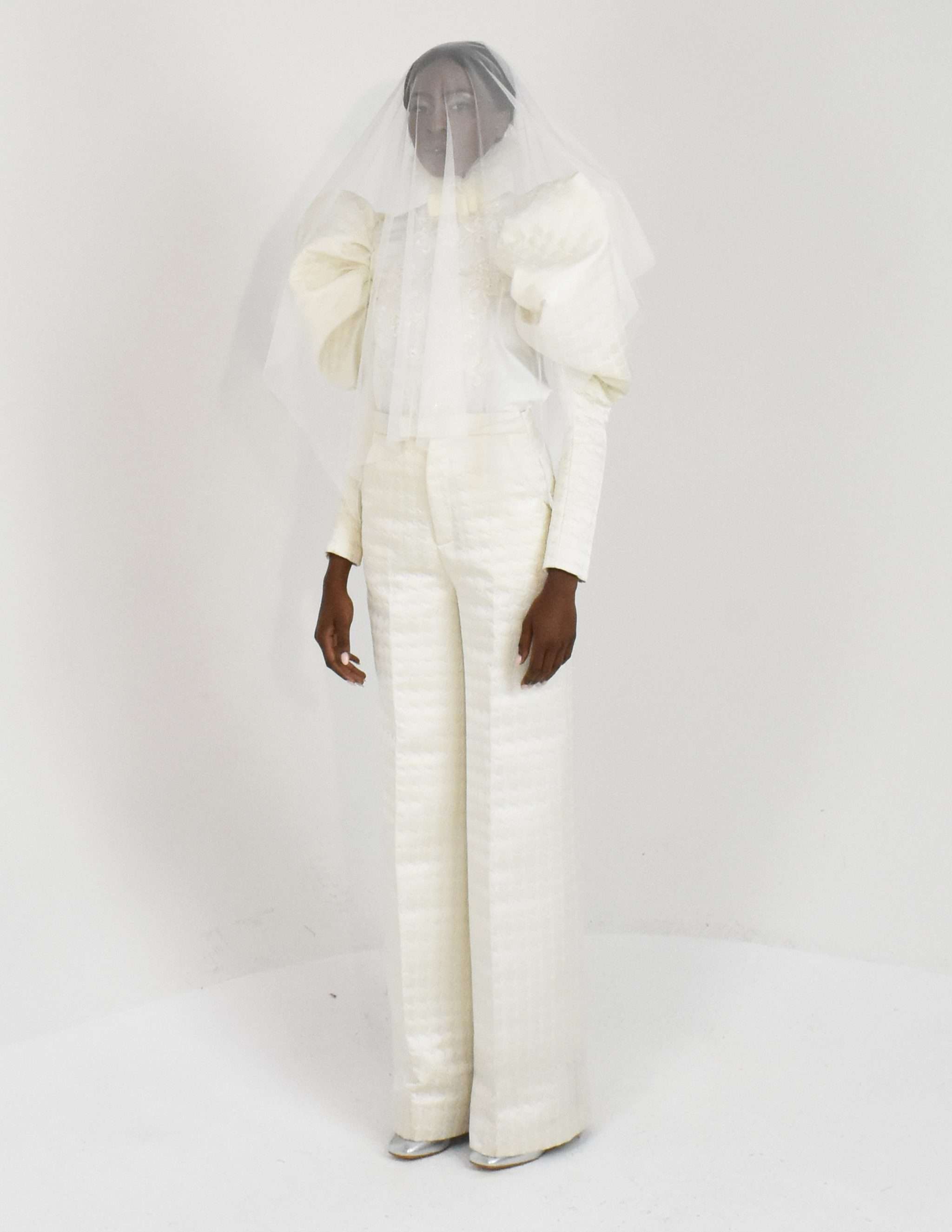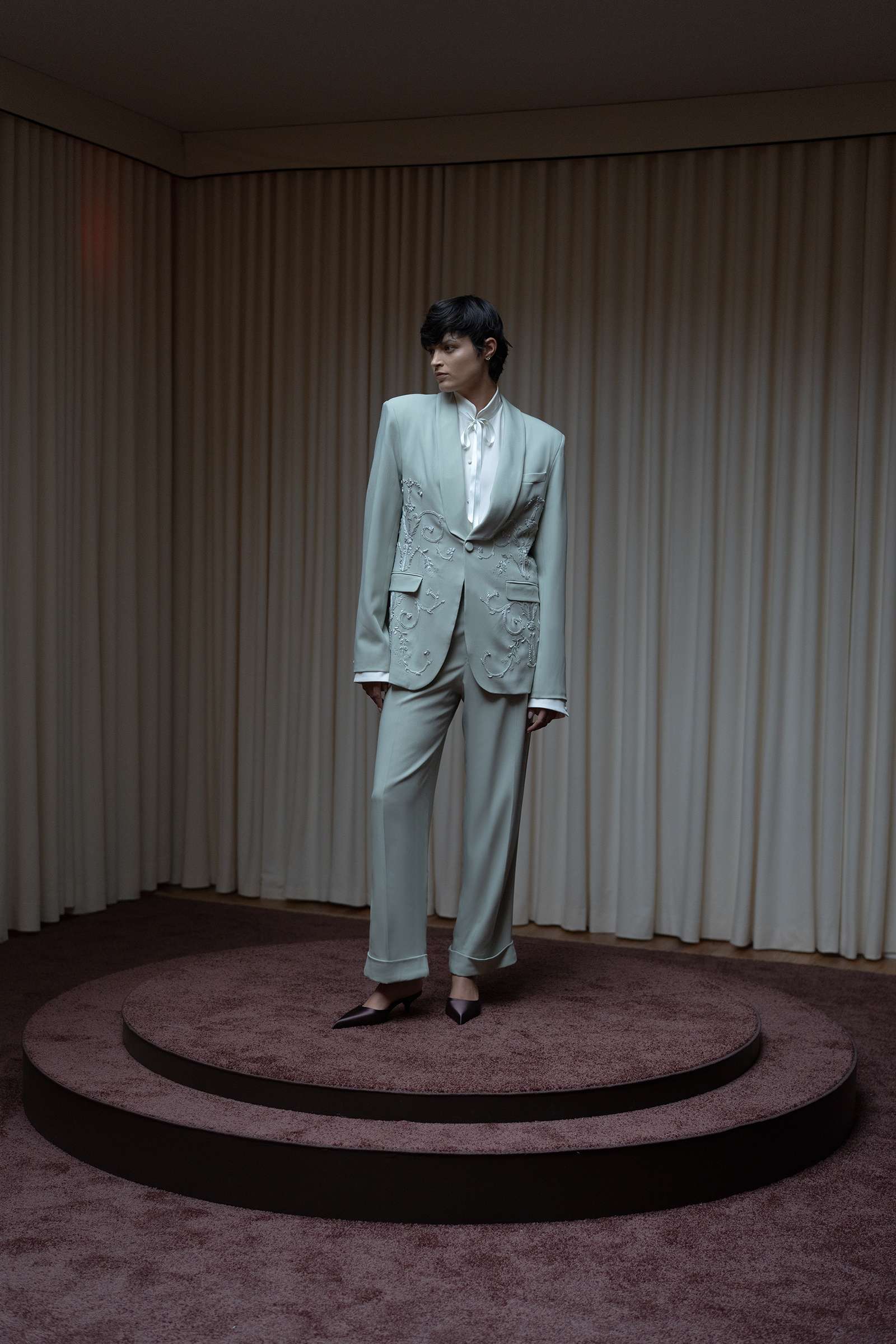 Alexandra Grecco’s The Great Occasion blurred the line between bridal and eveningwear entirely, introducing gender-neutral tailoring, fluid silks, and hand-embroidered illustrations created with Brooklyn artist Hannah Metz. It’s the kind of crossover fashion we’ve been waiting for.
