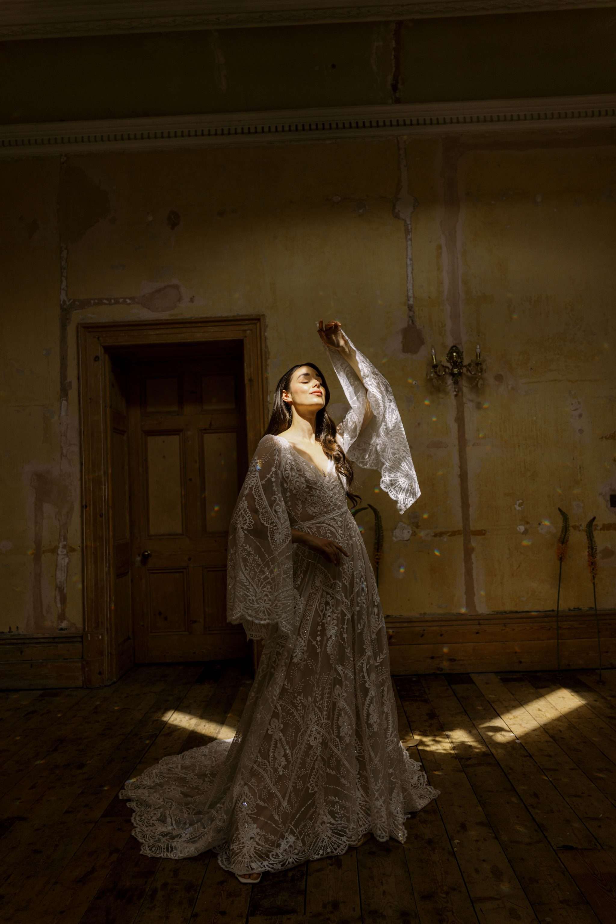 Hera Couture’s Luminaire collection also continued the theme with the same architectural precision, softened by light-catching details and tulle inspired by constellations.