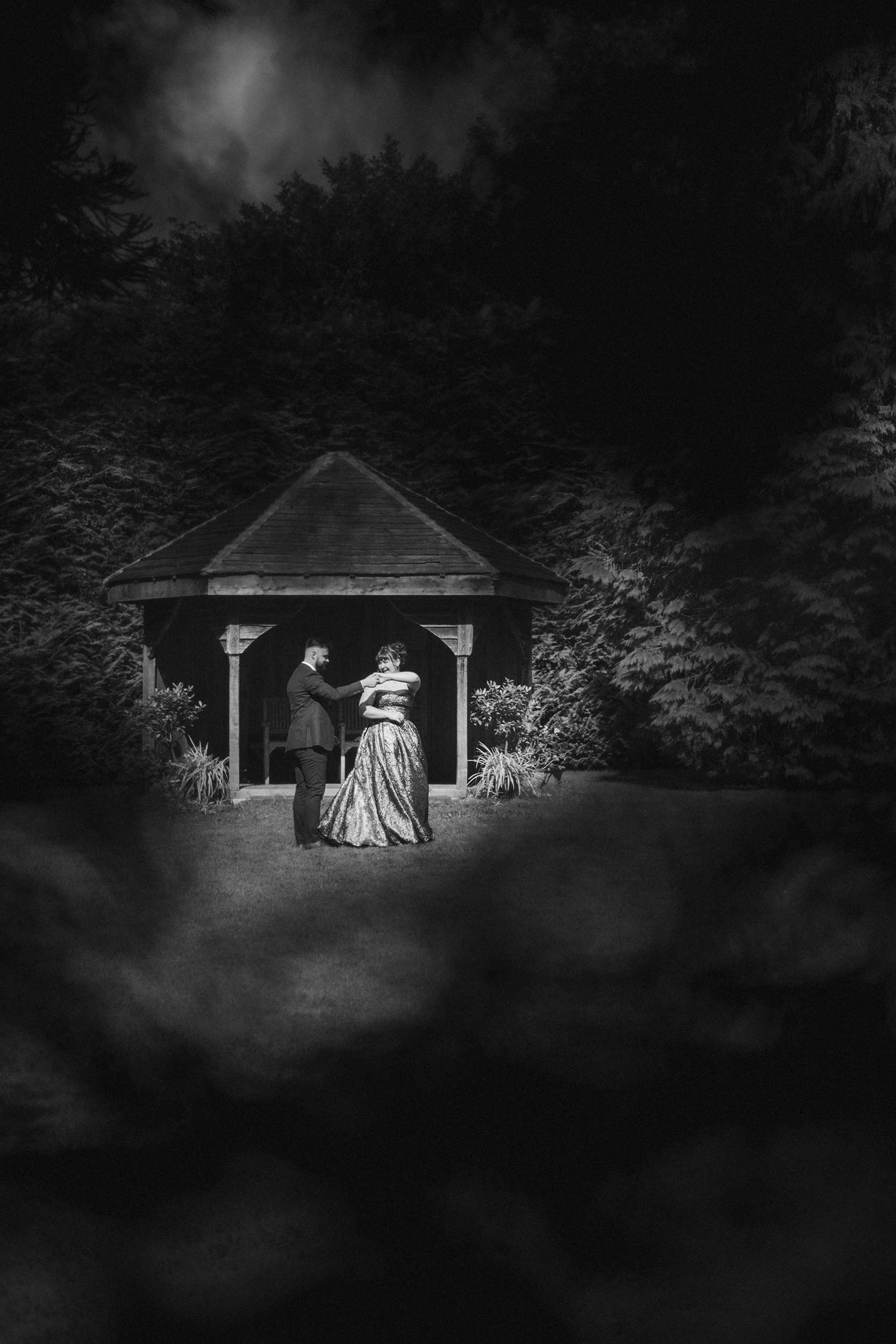 As the sun dropped, they slipped away again to the Magic Circle garden to have some moments together. “It was peaceful, and a minute to reflect on everything from the day before we went back down to party,” said Em. “We sat on a bench at the top of the hill overlooking the stunning countryside and took a breath together.”