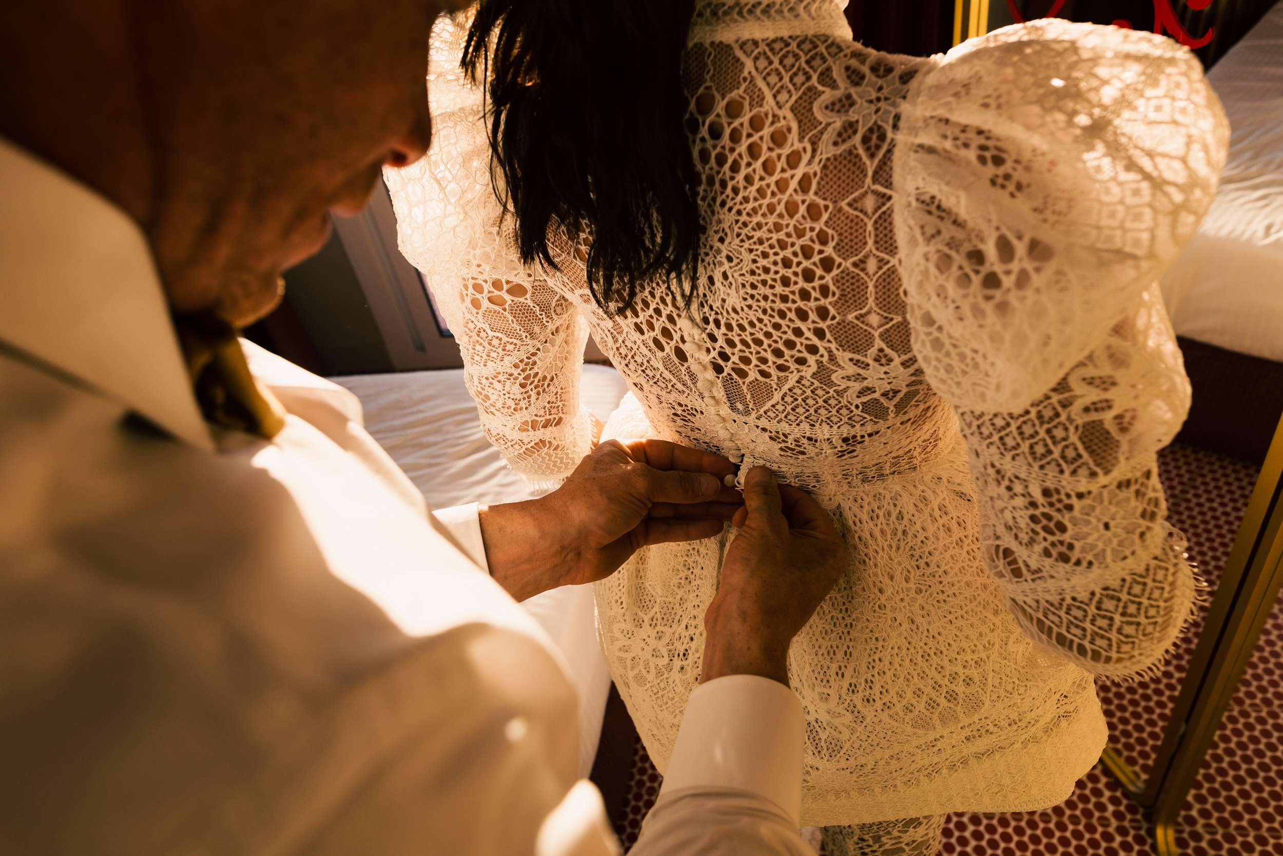For Jody, who works at Morgan Davis Bridal, the fashion was the most exciting part of planning. She sourced vintage for Riyston and had her own stocking boots made from the same fabric as her second dress. “Doing it all in secret was also really exciting,” she explained. “My outfits were our biggest expense, however I was really lucky to good prices and be able to I was able to borrow certain pieces as I work at a bridal boutique!”
