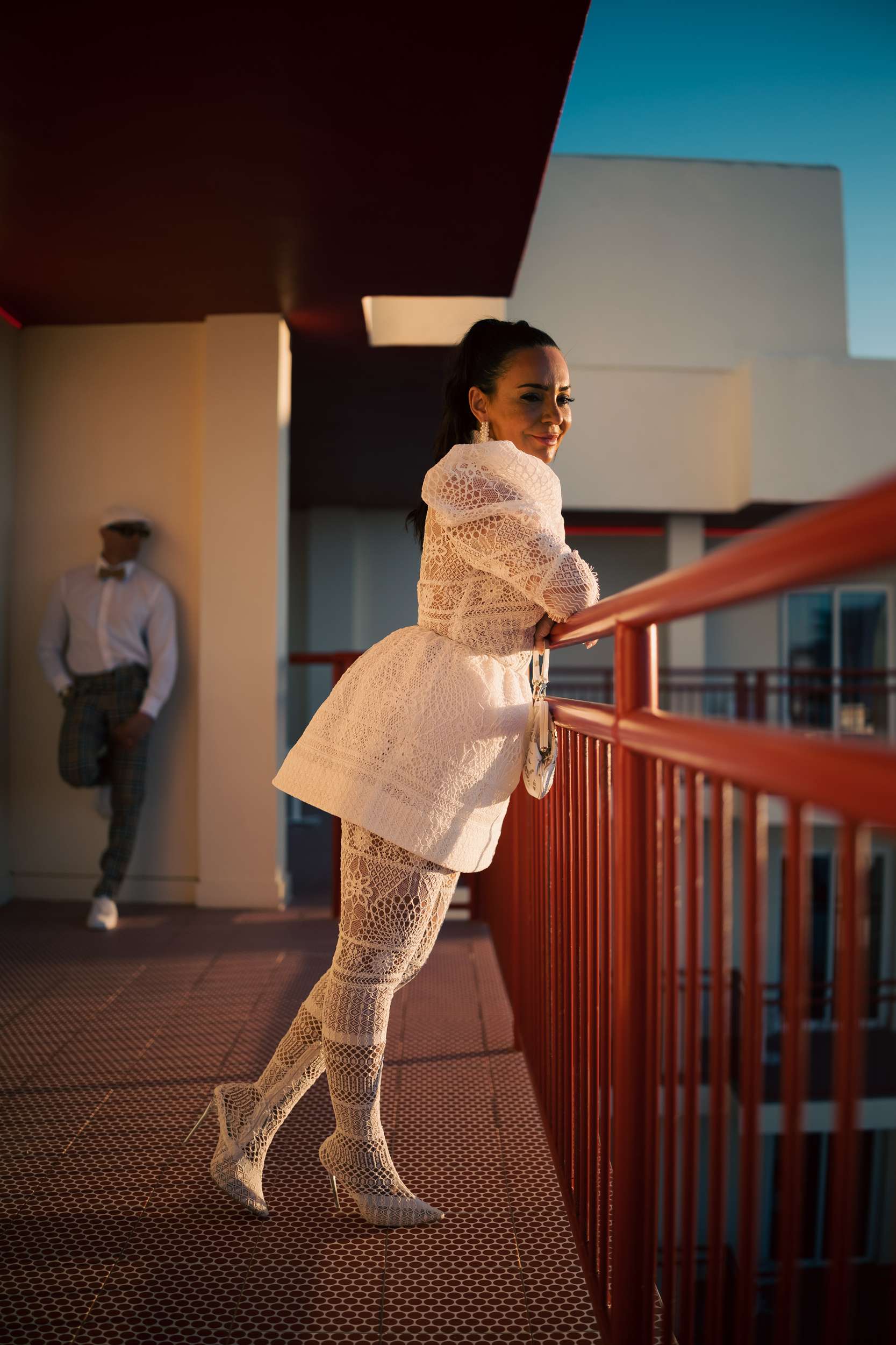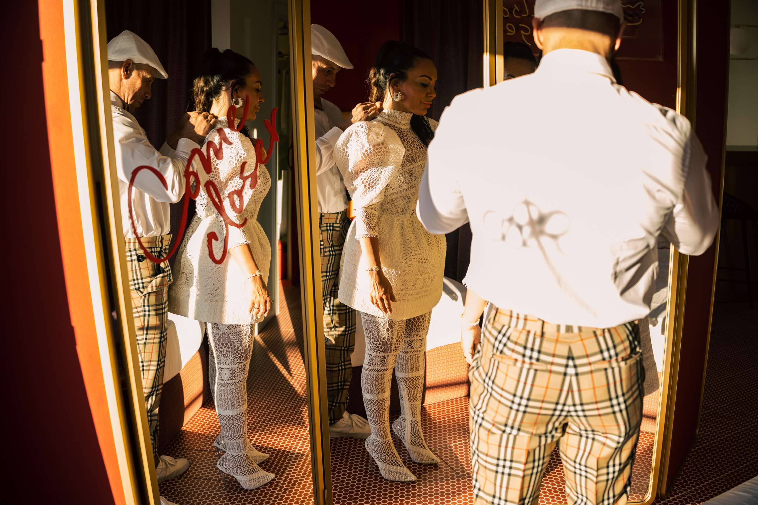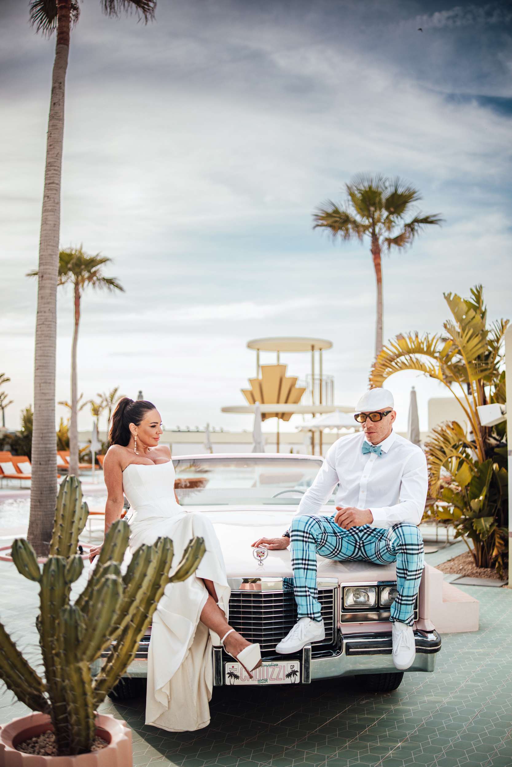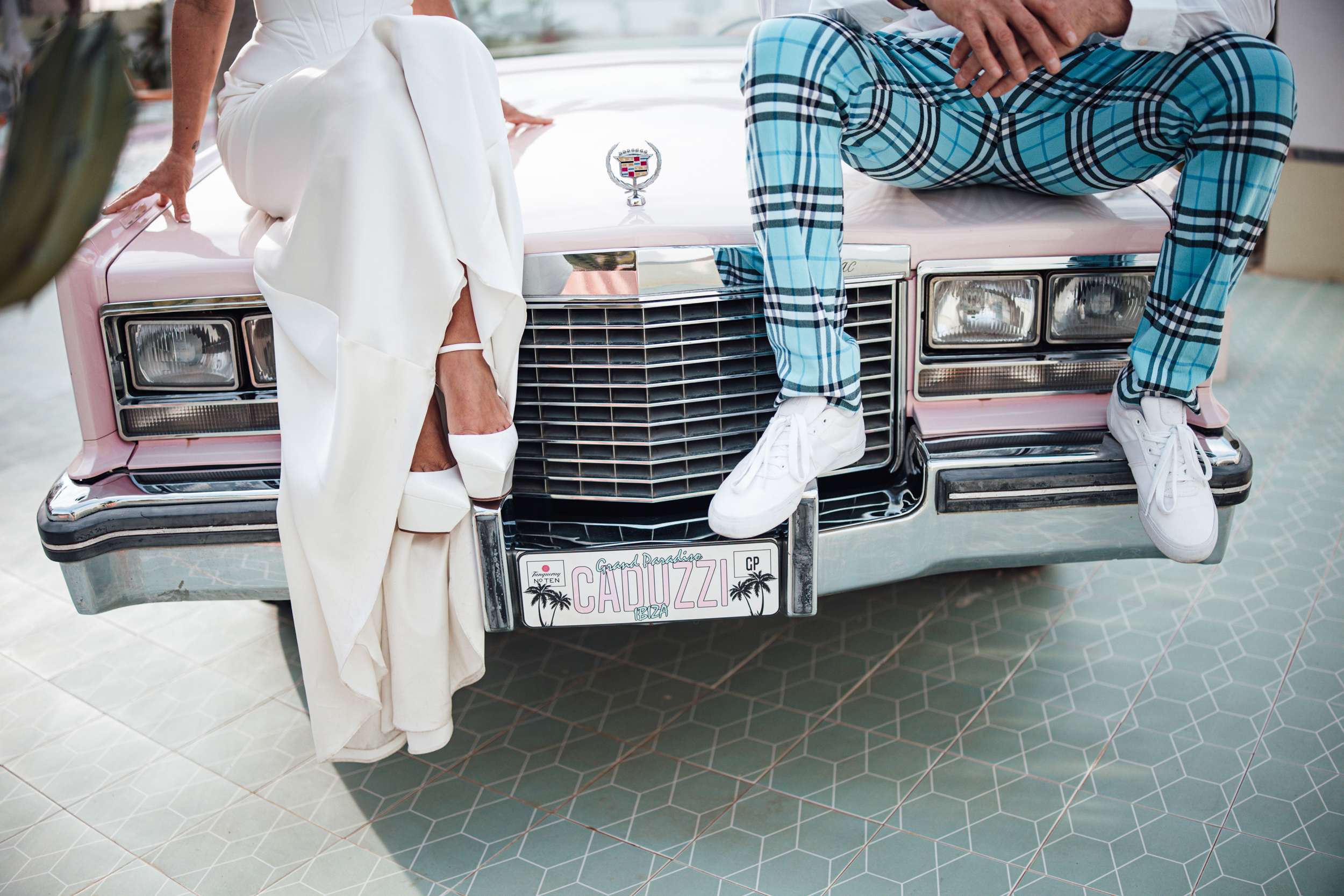 Jody and Riyston climbed a lifeguard tower in Ibiza as part of their wedding photos. Not the kind of image they might have imagined years ago, but that was the point. Their elopement was designed to be unpredictable and playful, inspired by Vegas weddings and shaped entirely around them. After Ibiza, they returned to London for a second ceremony and reception with family and friends.