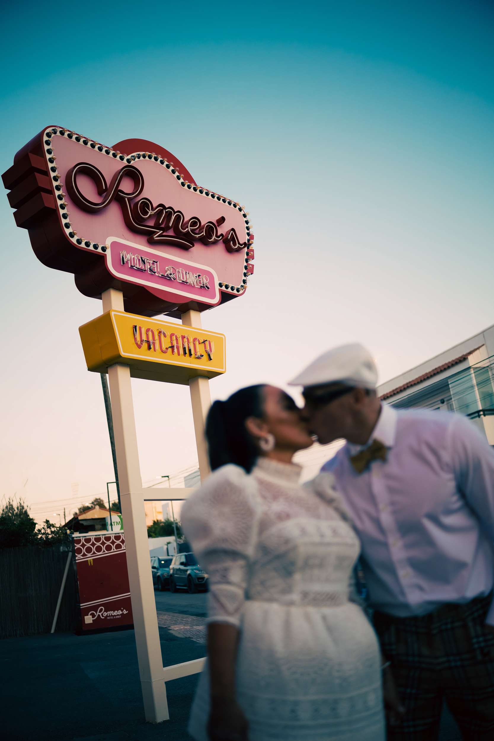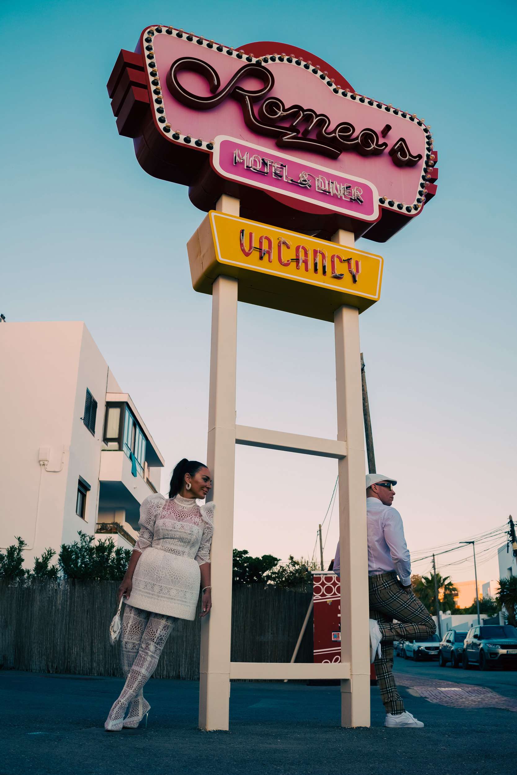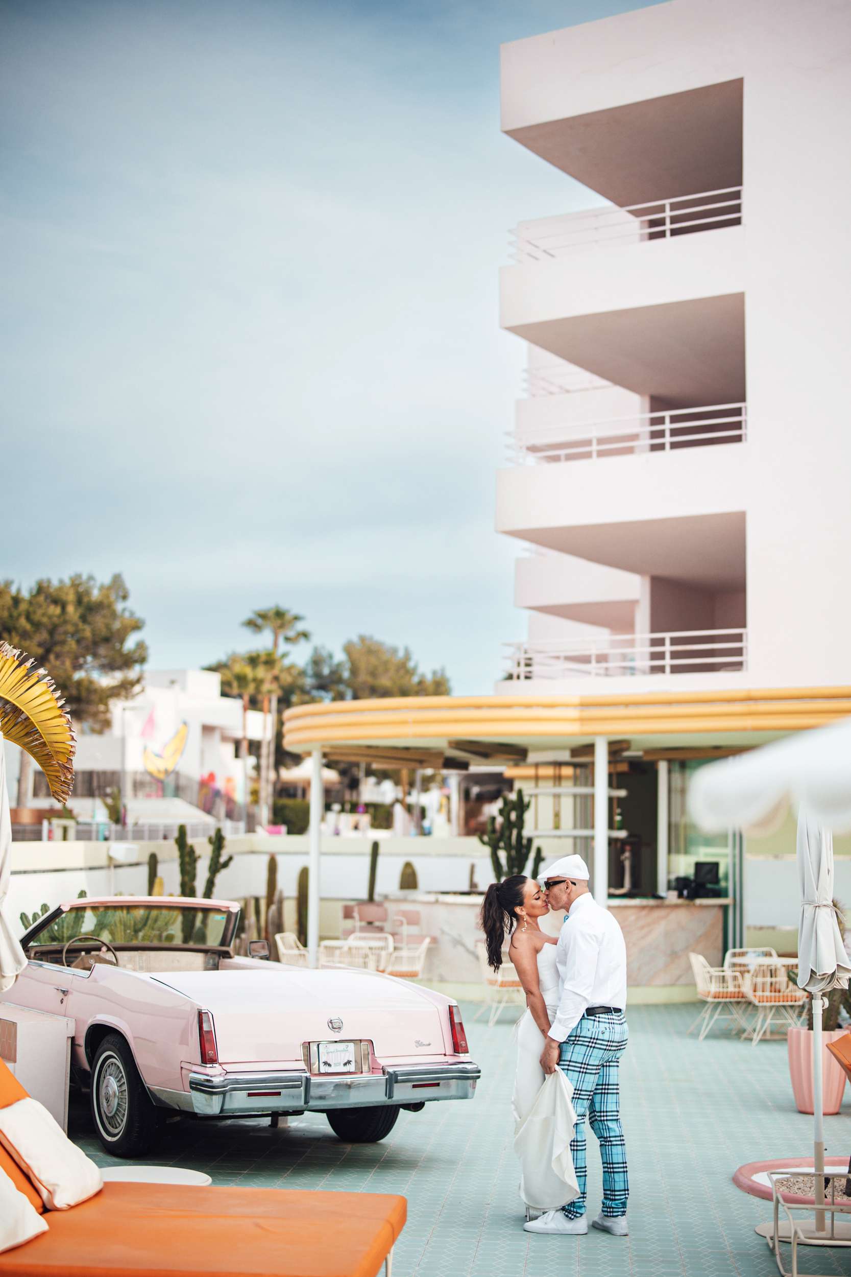Before the vows, they did a photo session at Romeos and Grand Paradiso. “Our Ibiza wedding shoot was inspired by a Vegas weddings”, the bride told us. “We wanted something a bit different, fun that reflected our personalities rather than a traditional wedding. We always say through thick and thin, sick and sin. So the “Lovers & Sinners” theme of Romeos seemed perfect for us.”