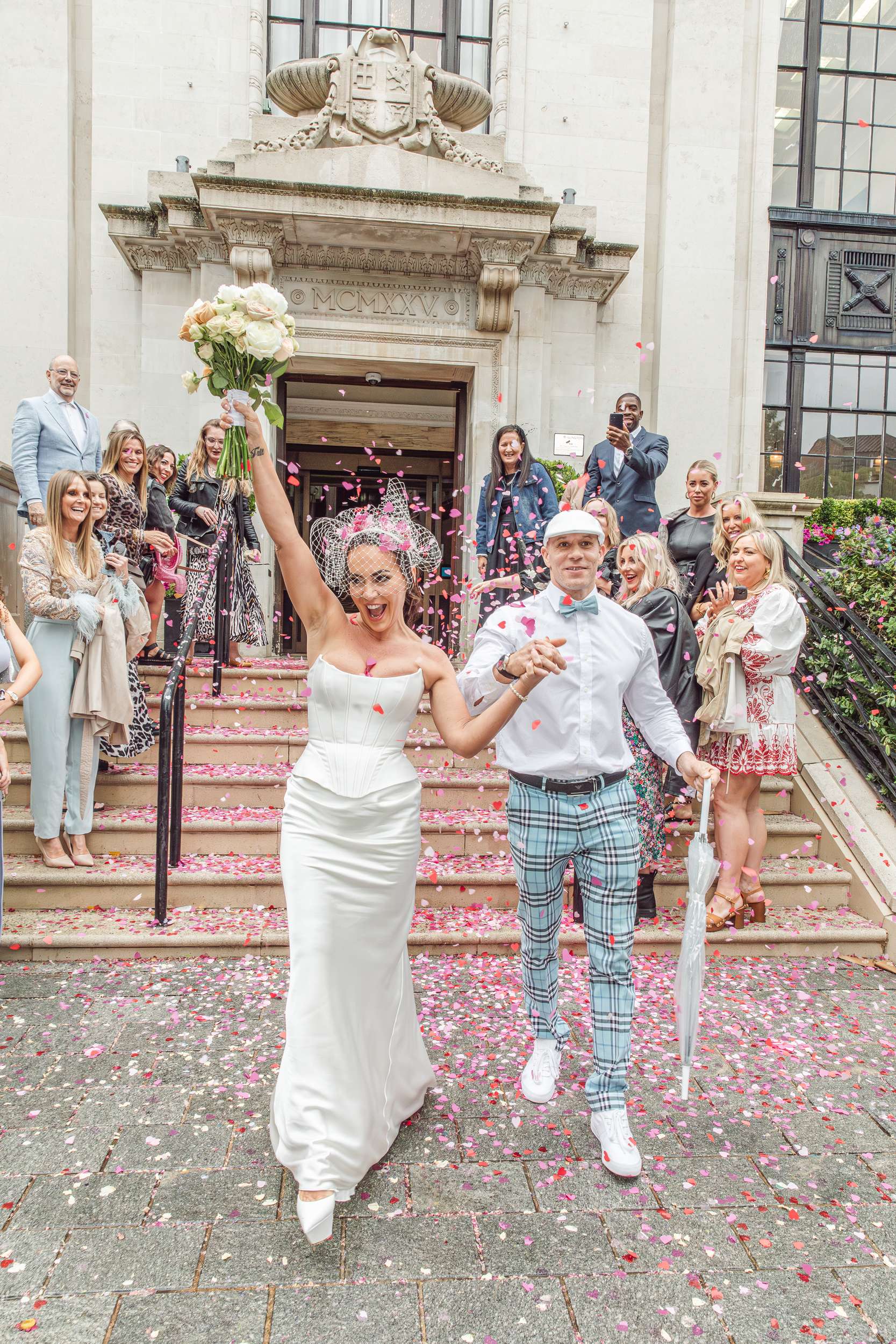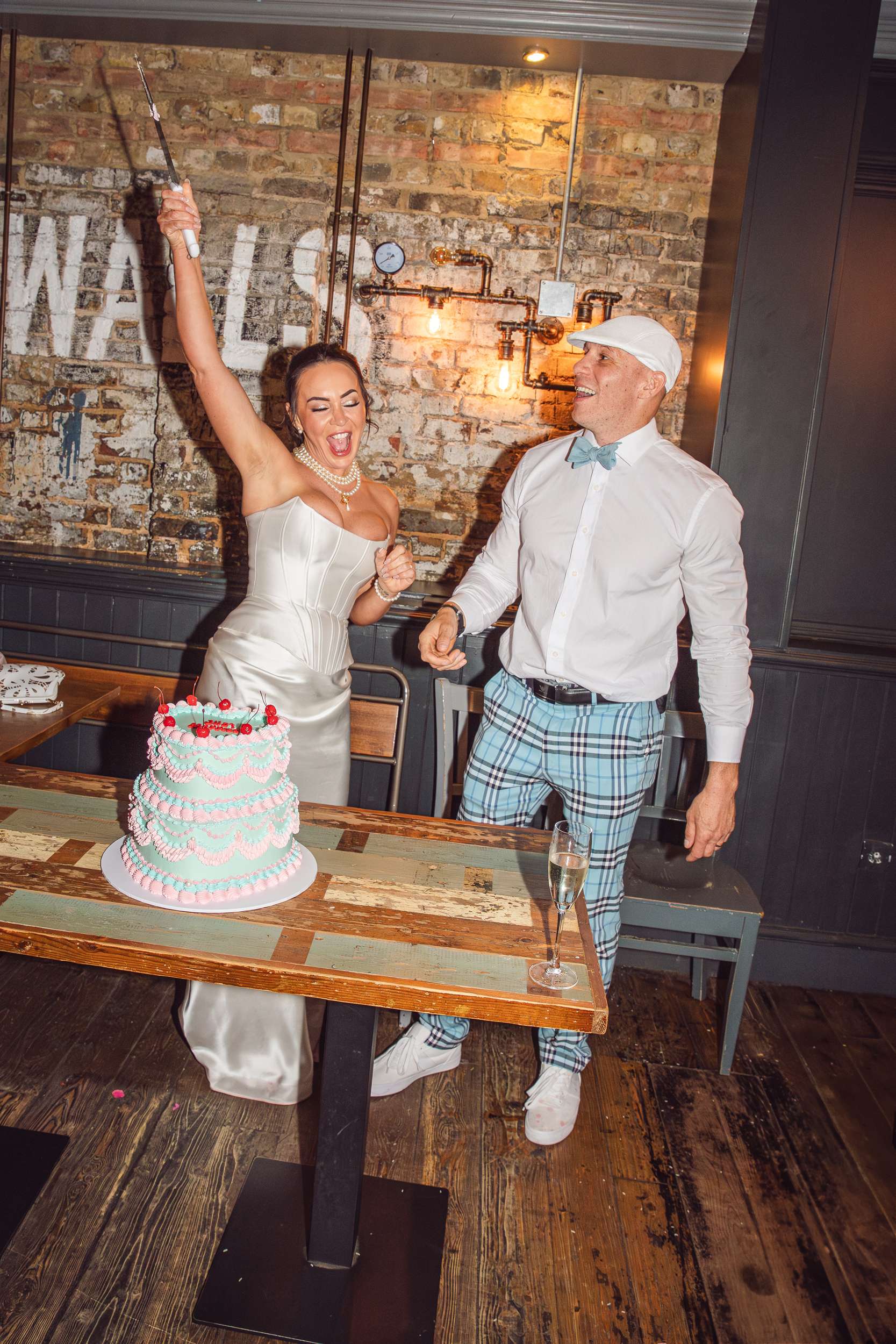 When they got home, they sent their Ibiza photos to their loved ones, inviting them to join their official ceremony at Islington Town Hall. They also had a pre-shoot wedding shoot in Angel, with their French Bulldog, Saint Ikah Smith.