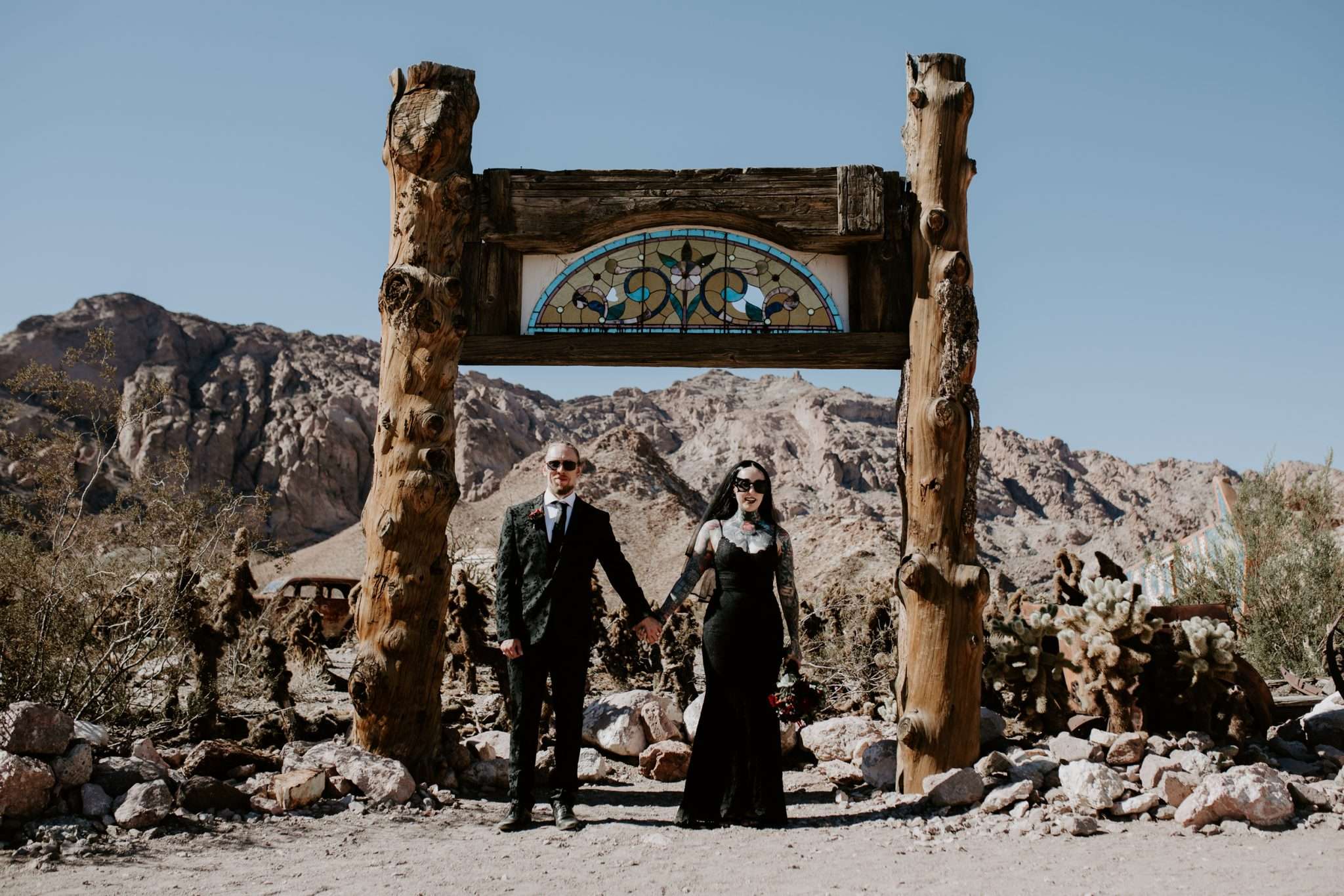 Aimee and Jon left Birmingham to get married in the Nevada desert. The bride loved the idea of Vegas, the groom wanted something outdoors or in the mountains, so as soon as they found out about the little chapel at Eldorado Canyon, they knew it would be the best of both worlds.