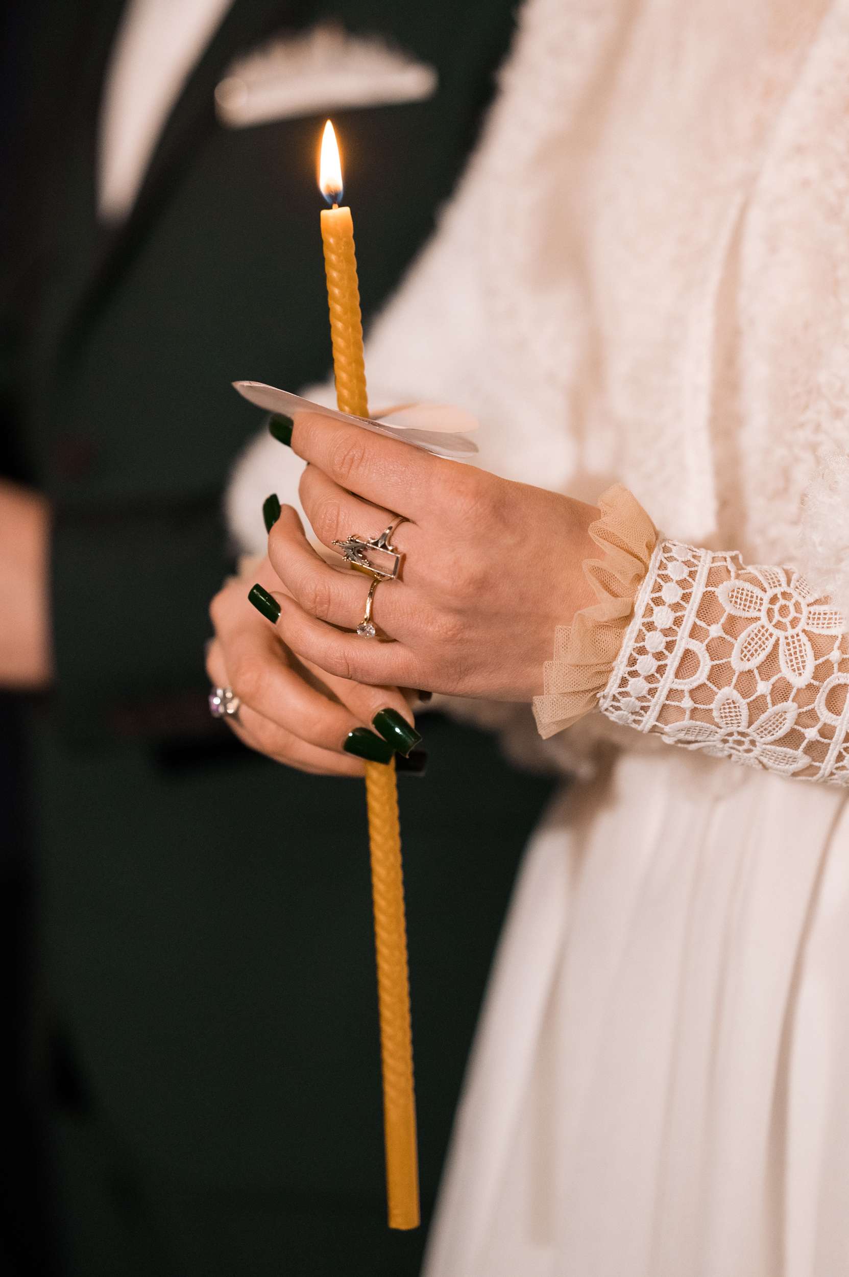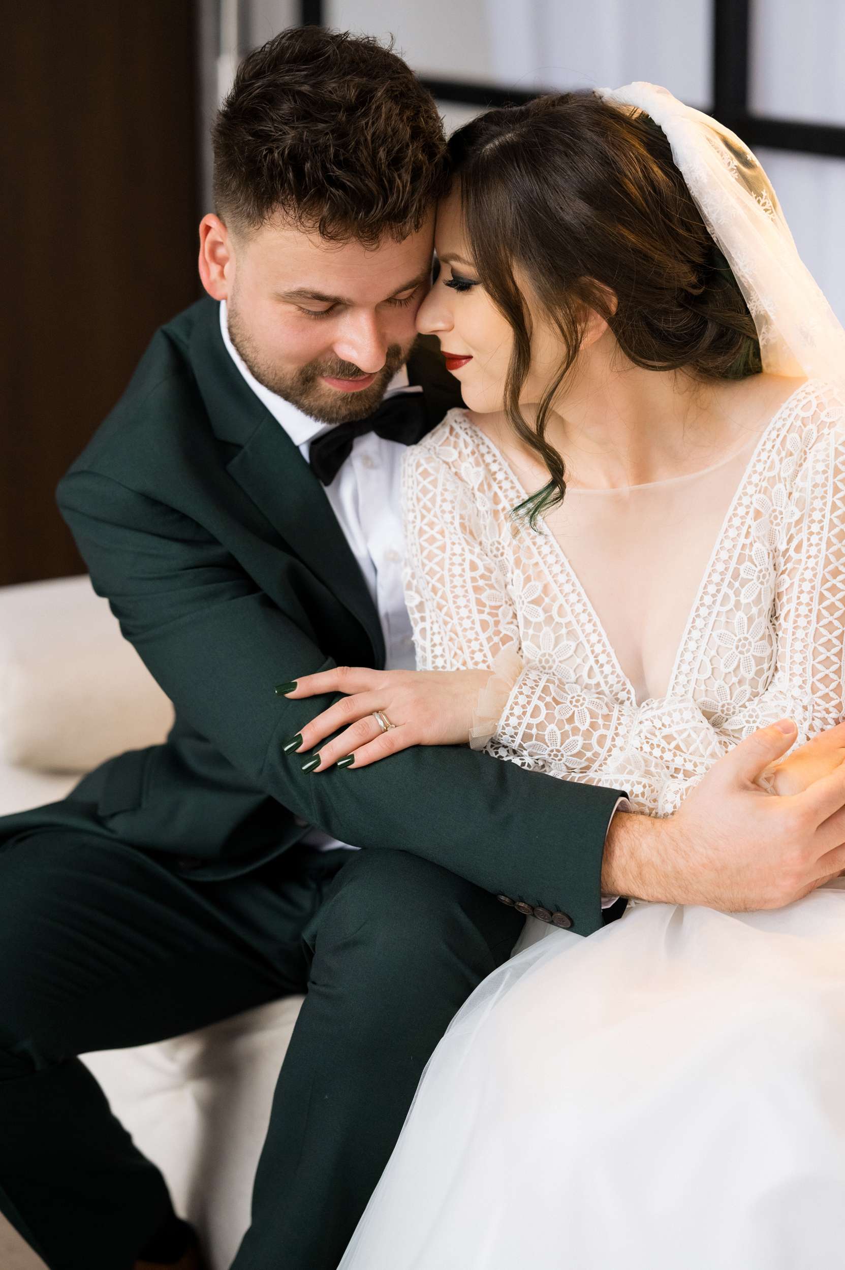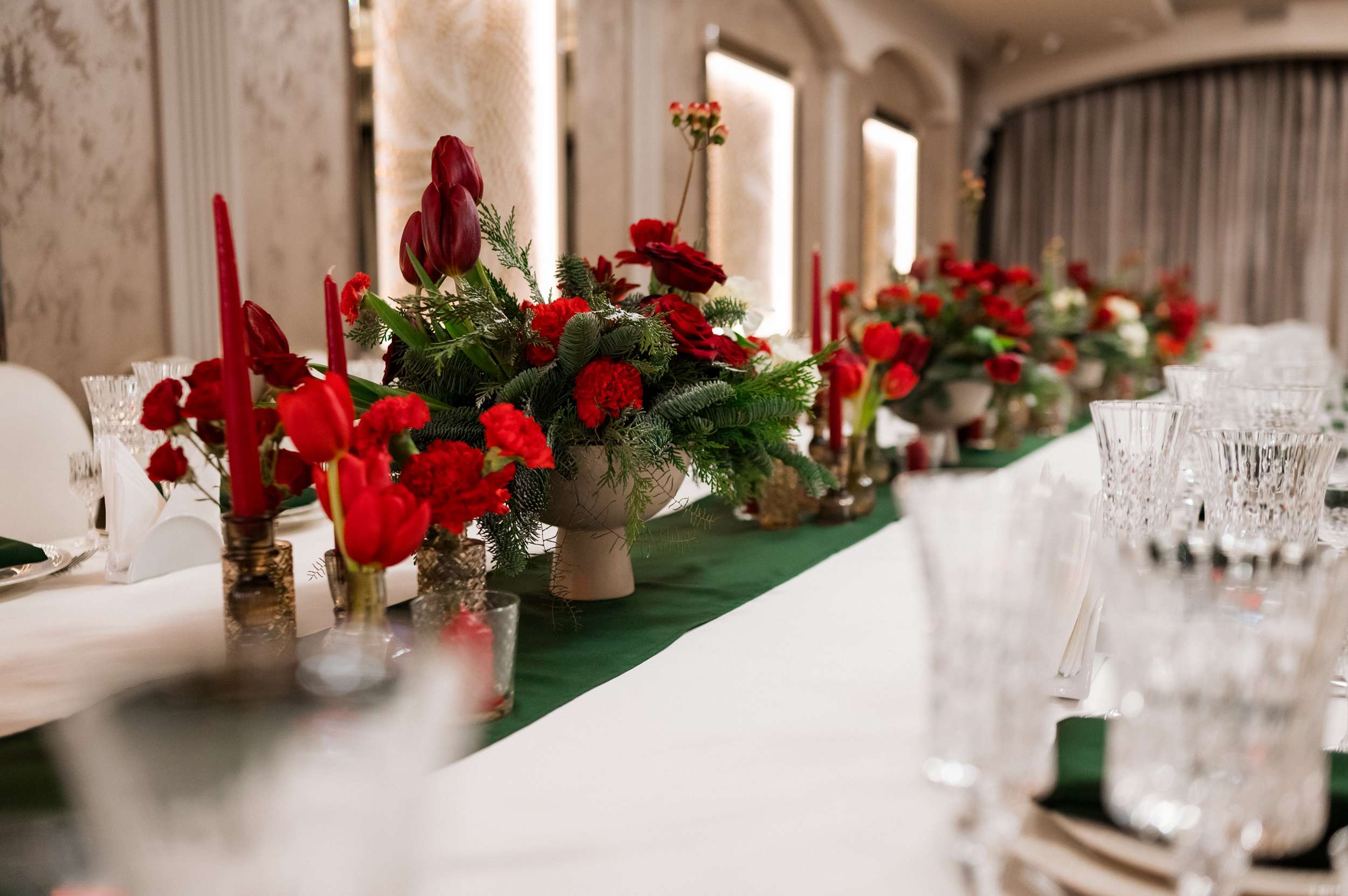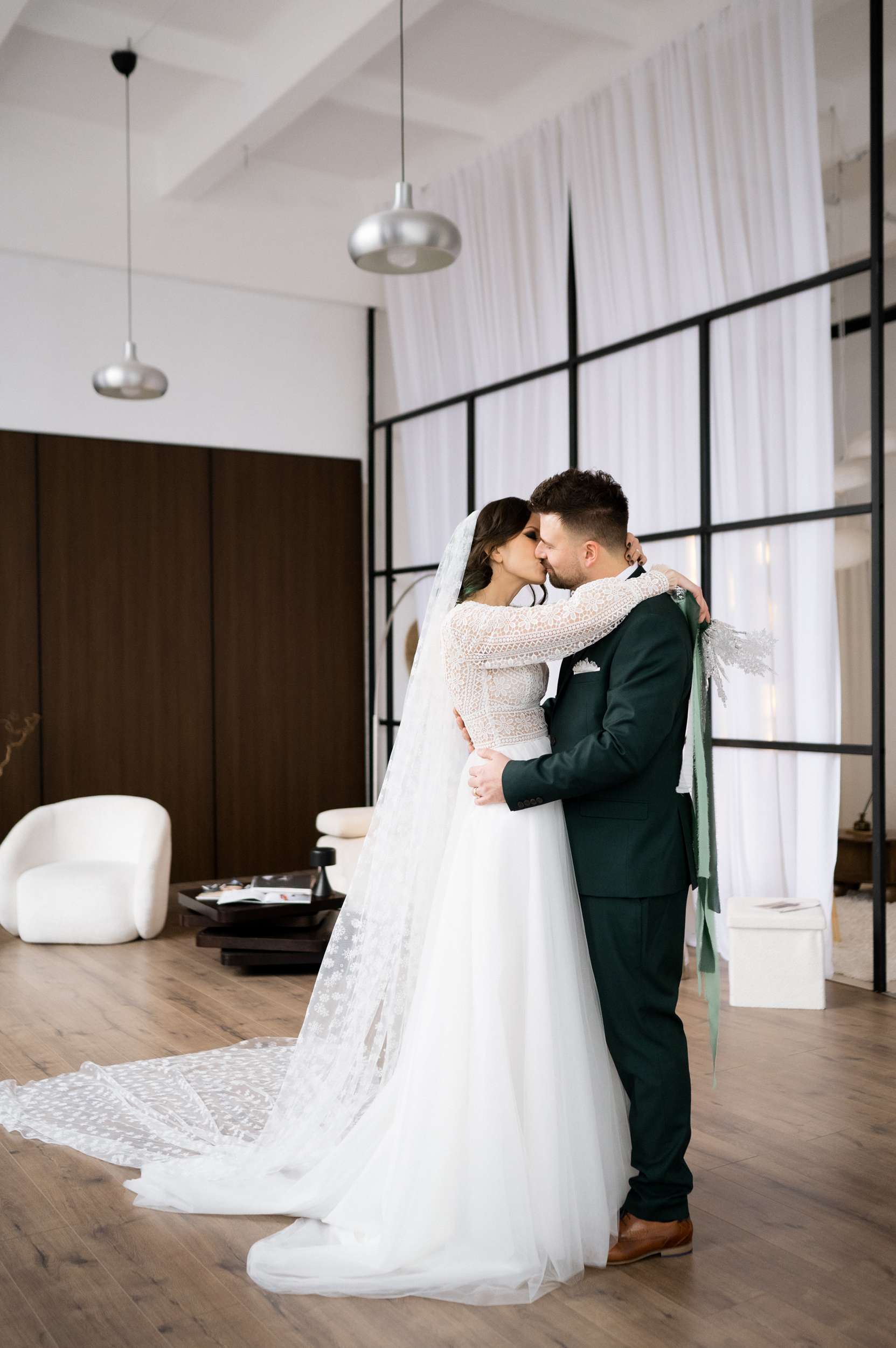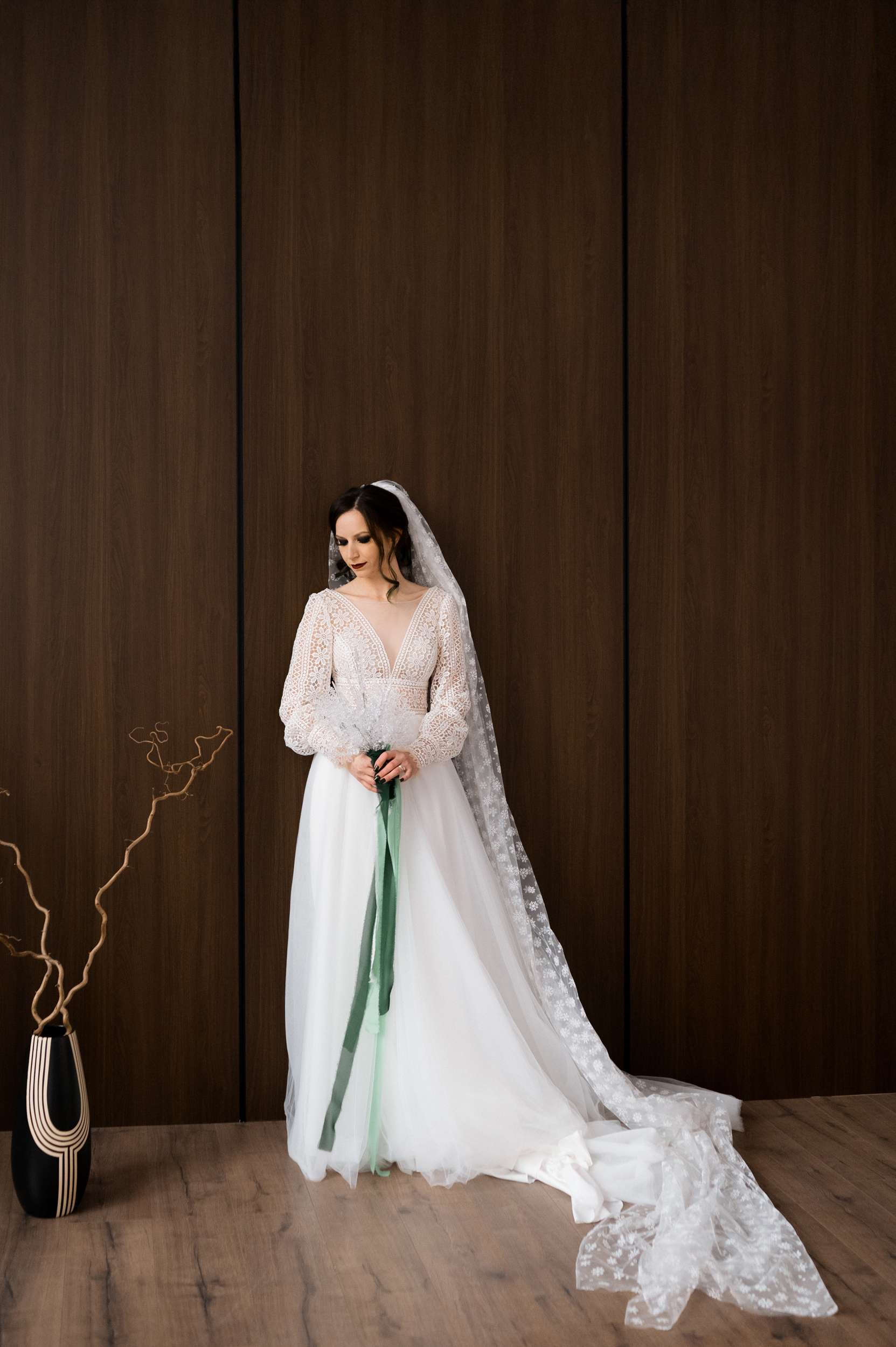 “We are snow people,” Maria told us. “I also really love the colour green. I adore winter and the small, gentle magical snowflakes. Beside our love, our wedding reflected the joy of snow. I couldn’t imagine having a wedding in any other way. Of course, you can’t really predict a snowy day, so I tried to make most of it through décor elements and by throwing snowflake confetti. My bouquet was made by me and it also had to be snowflakes.”