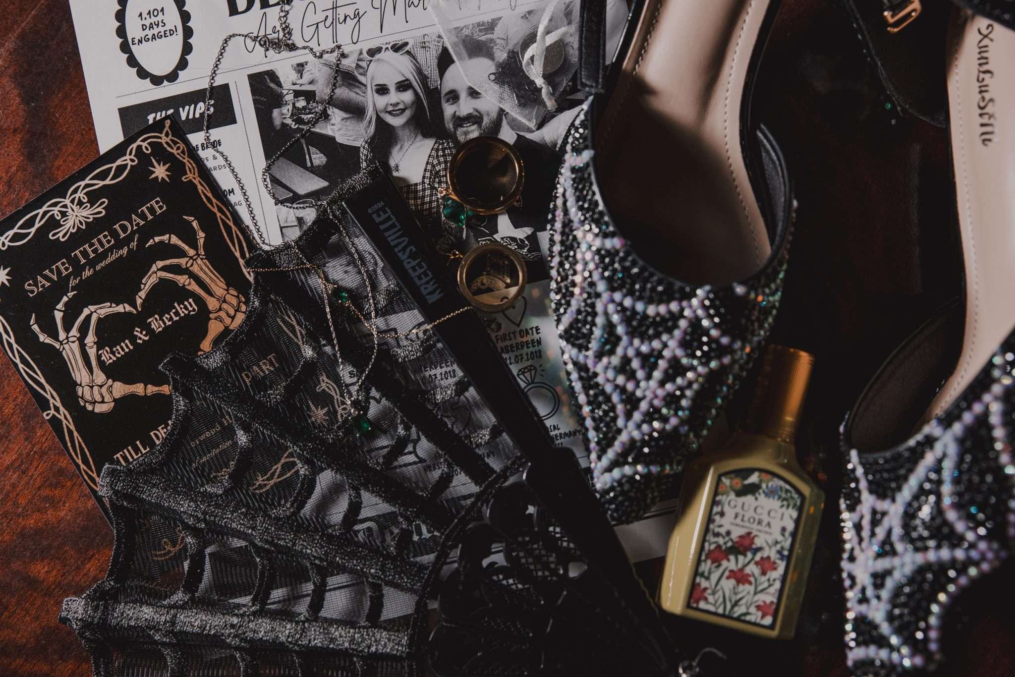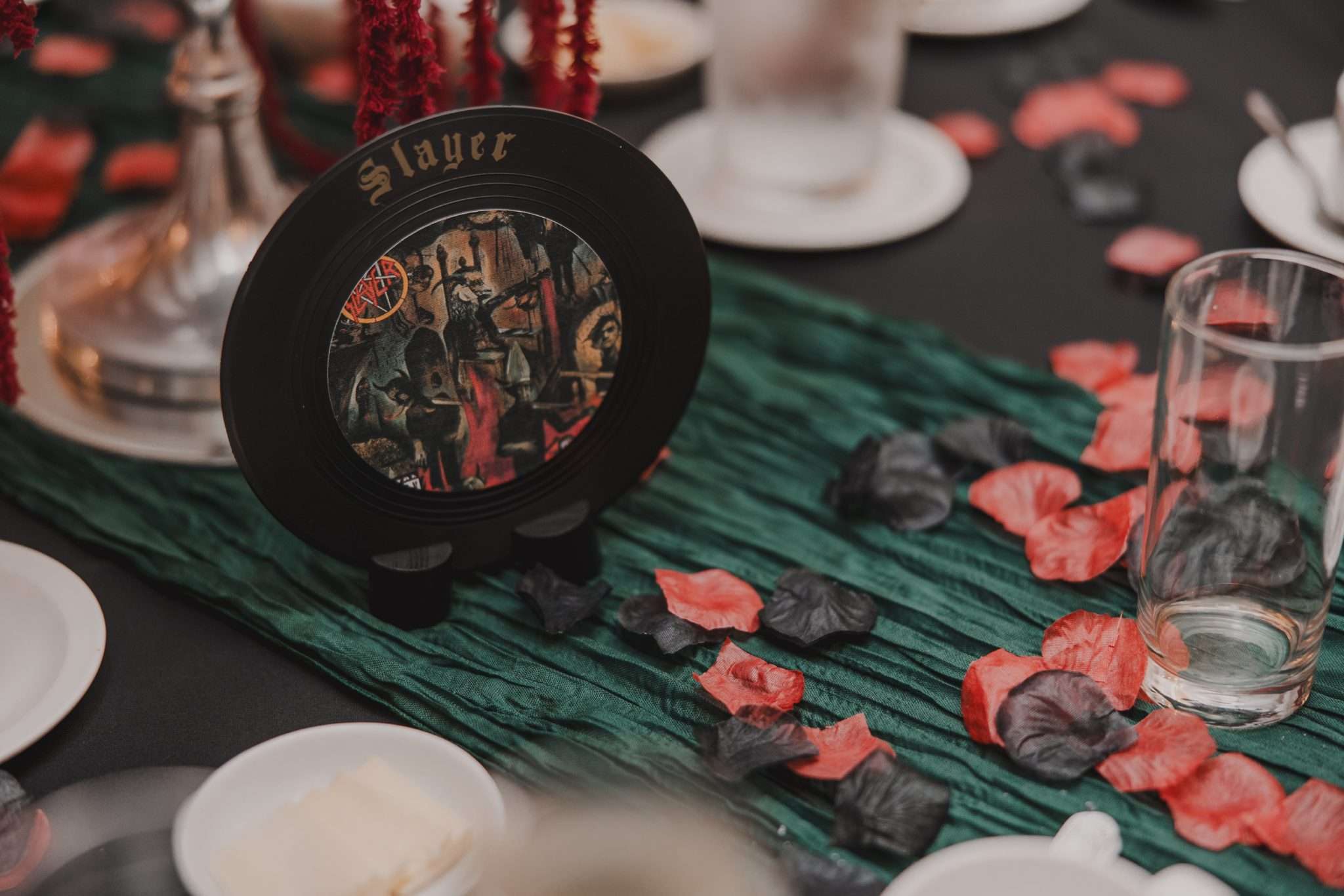 “If you want a wedding with heavy music, dark and moody décor, and a black dress, then go for it!”, Becky concluded. “And if you plan to DIY, buy a Cricut because it was one of our best investments.”