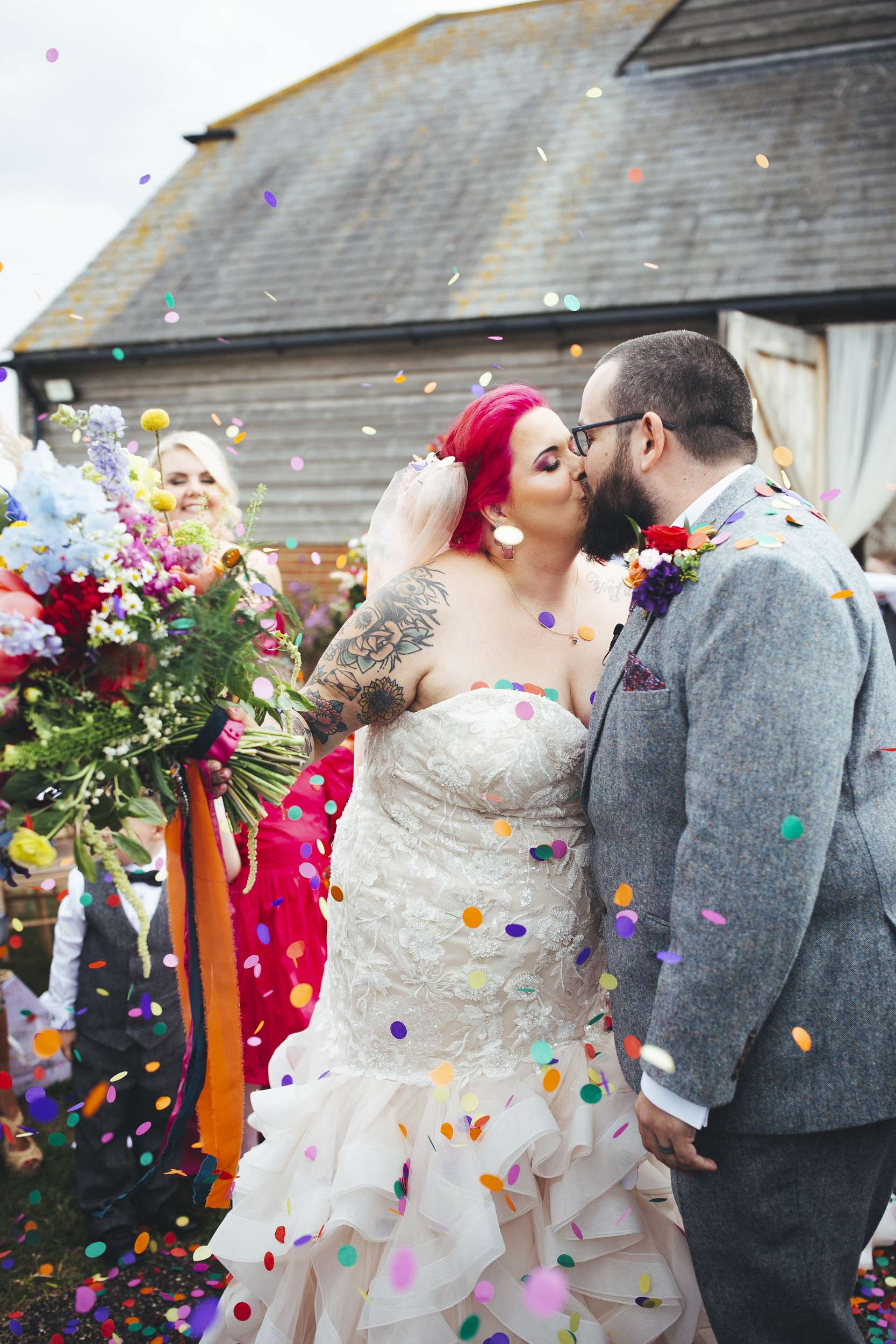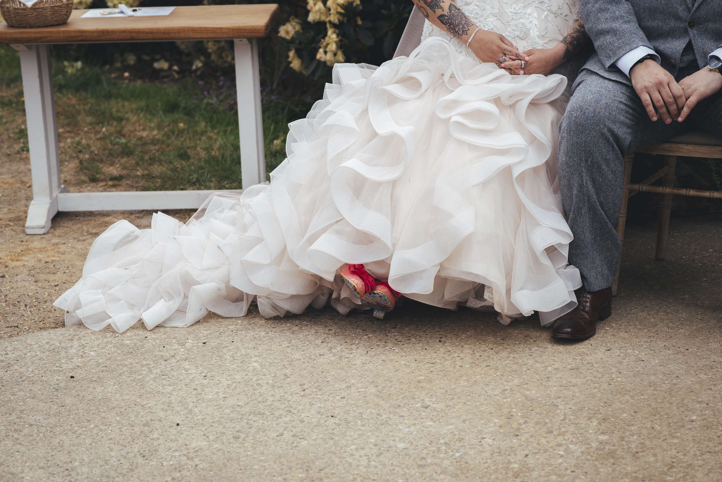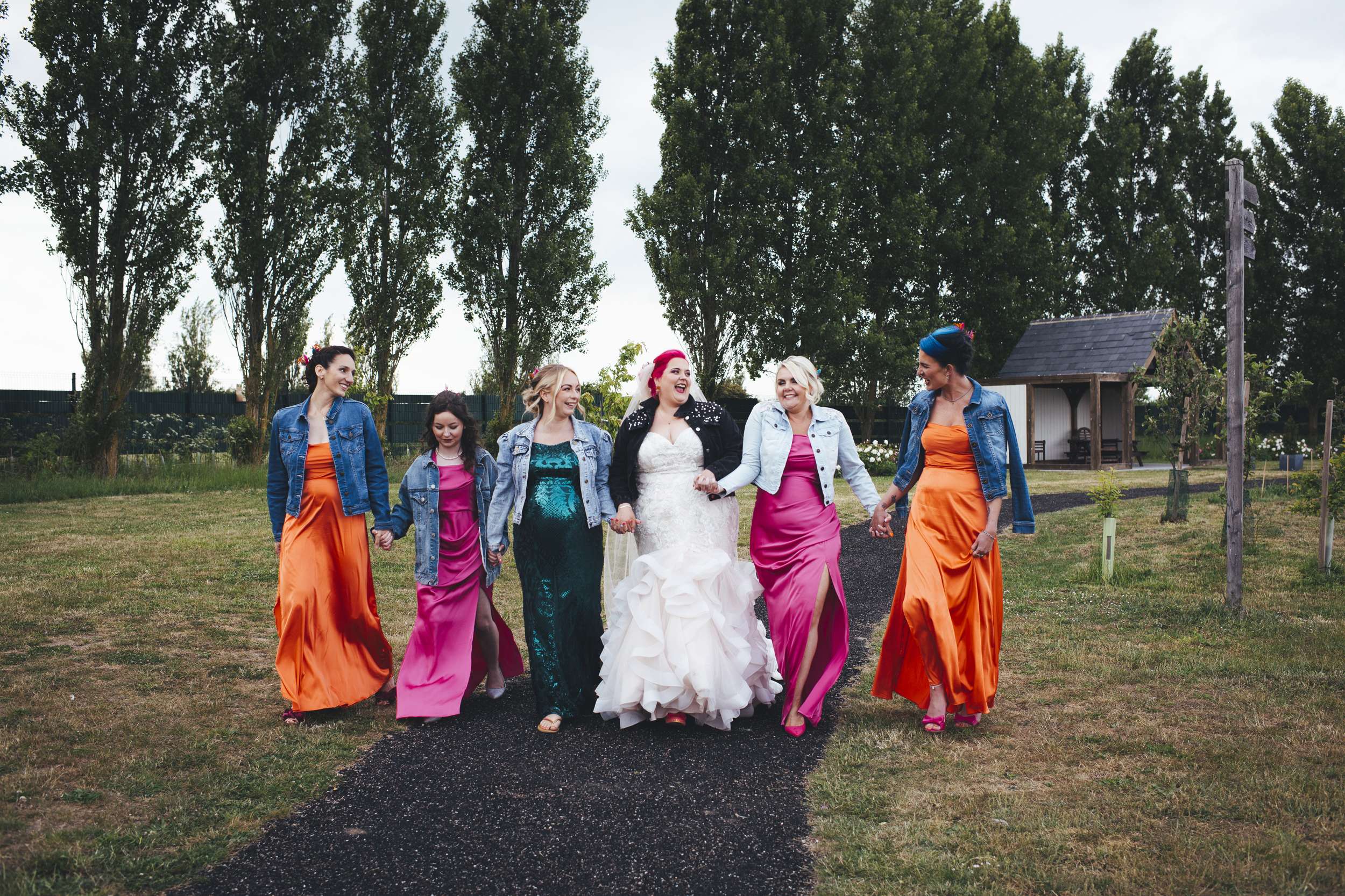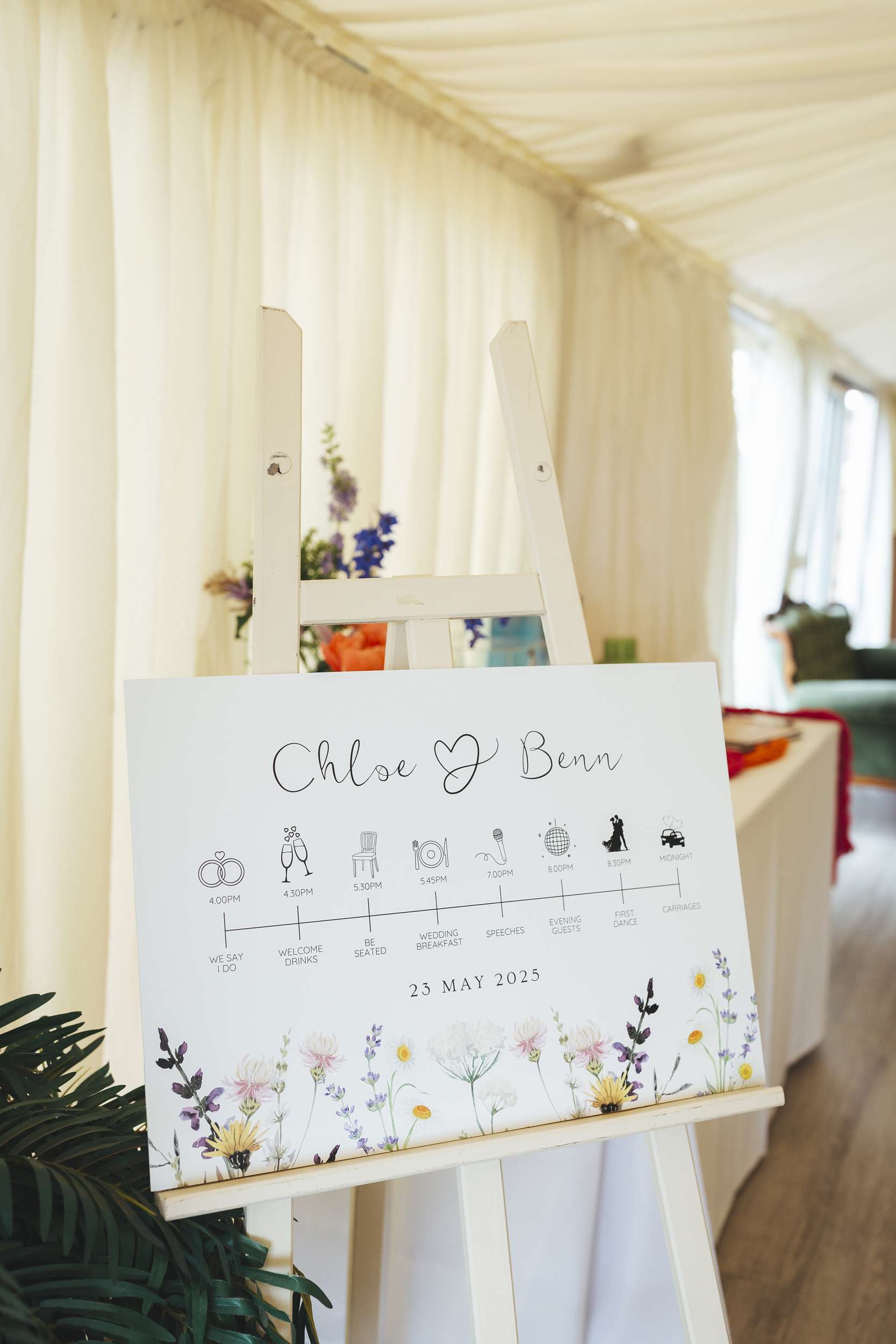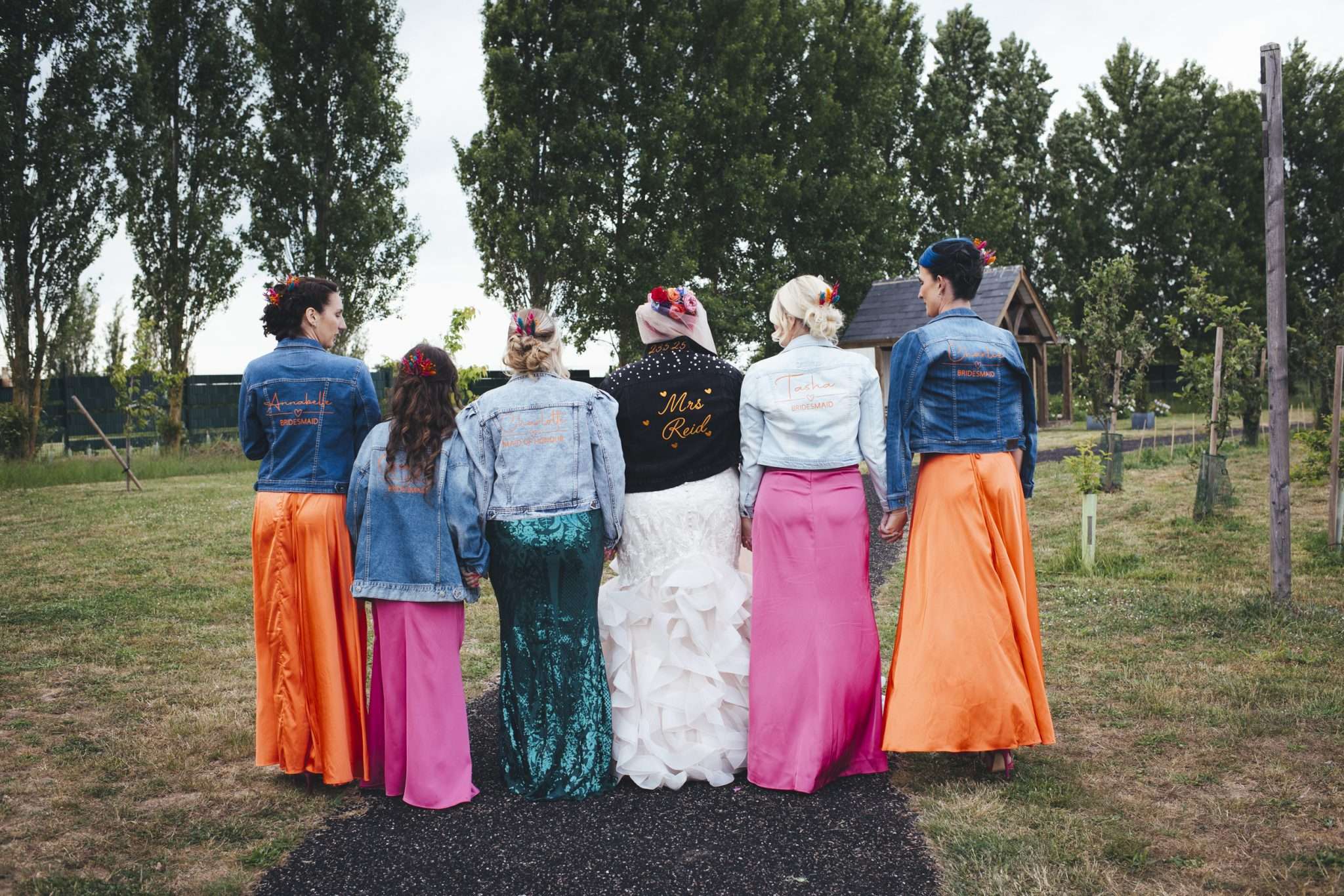 Their best friends sang the first dance song live. Benn and his daughter danced to Depeche Mode, and Chloe stood up and gave a speech. Plenty of their choices were practical and money-saving too. They bought their own frames and vases and put together children’s entertainment packs. Chloe even made the bridesmaid jackets, she found her shoes secondhand and sourced a lot of other pieces from Vinted.