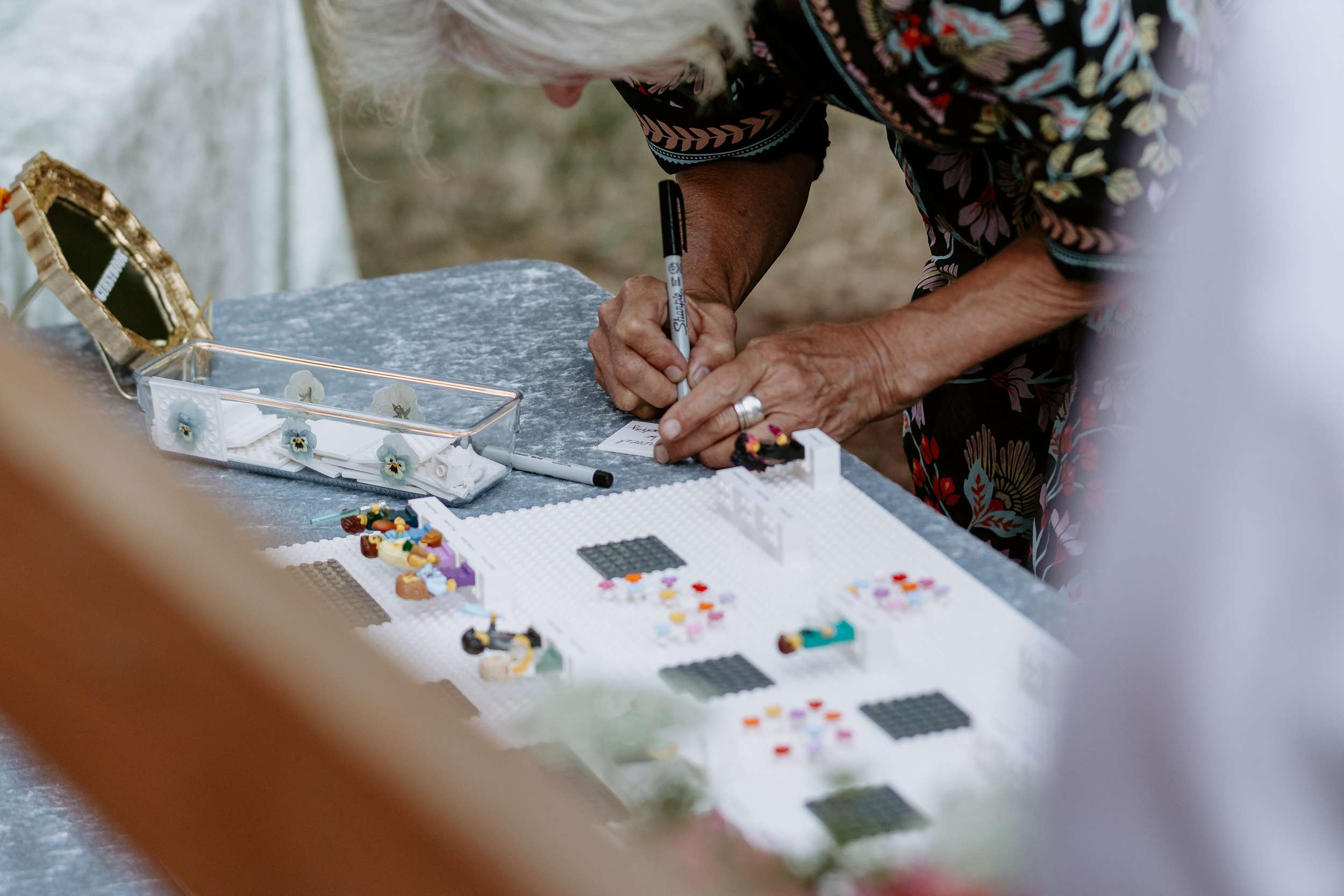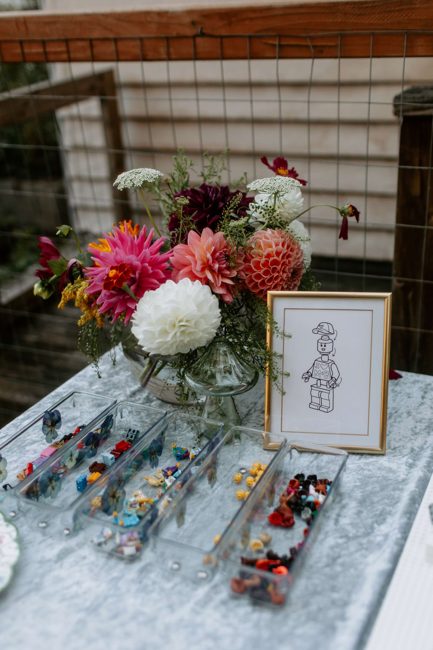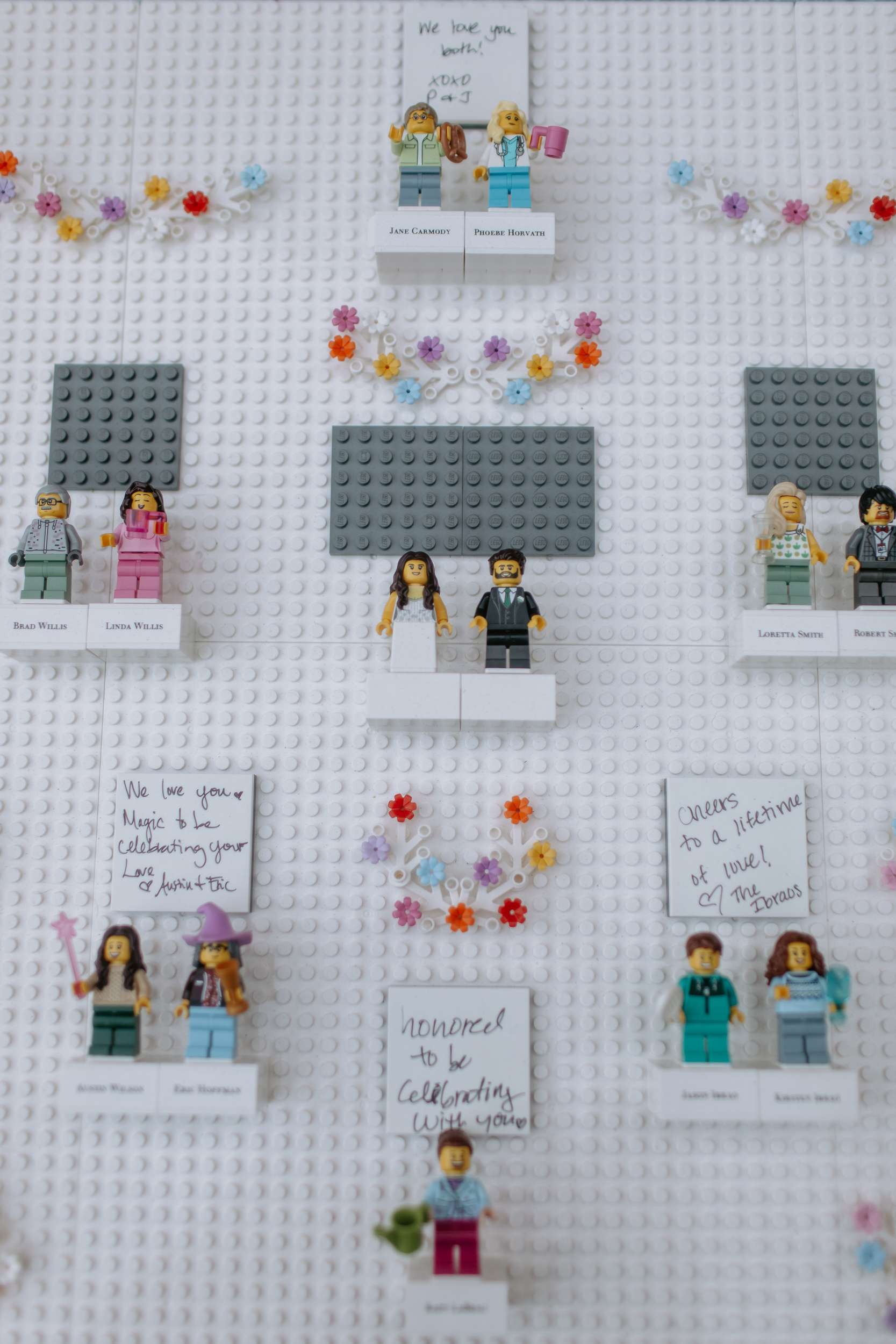 They also insisted their dog, Rudy, was a big part in the wedding. There were cocktails named after Rudy and their cat Molokai. Guests built tiny Lego versions of themselves for the guestbook, which will eventually hang in the couple’s home. A wall of wedding photos from their guests sat opposite the dance floor, collected through “a very sophisticated blend of gentle fibbing and light social media sleuthing.”