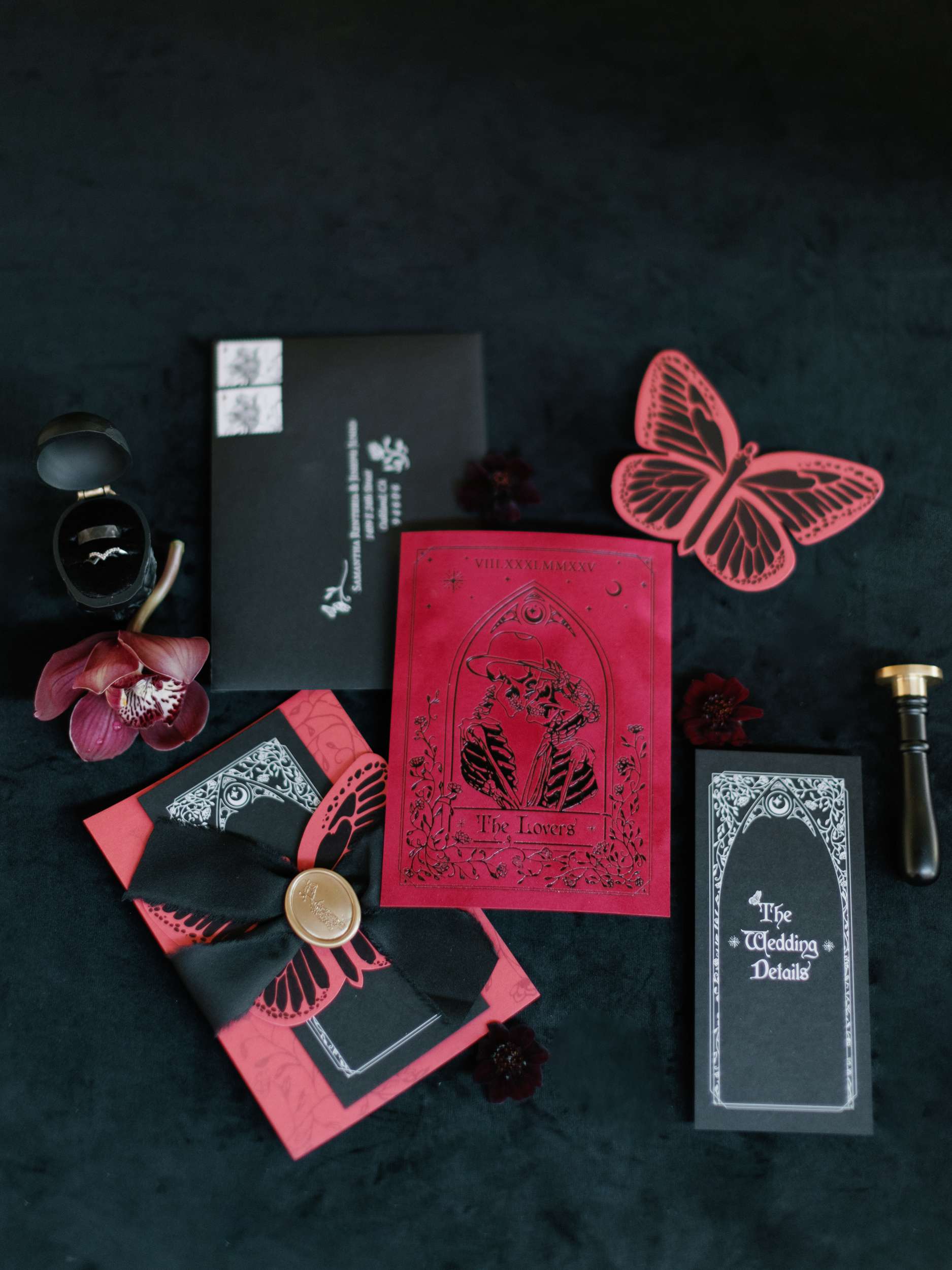 Their theme sat somewhere between emo, goth and a little bit chic with what they called “Pop Punk, Mexican goth. Darkwave with a Latin twist” and they skipped anything that felt obligatory. They read personal vows to each other privately, instead of doing it in front of an audience at their ceremony.