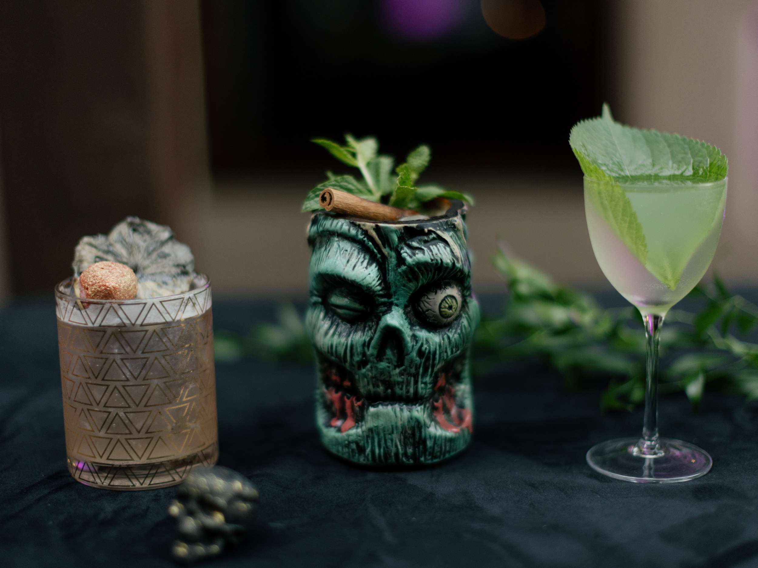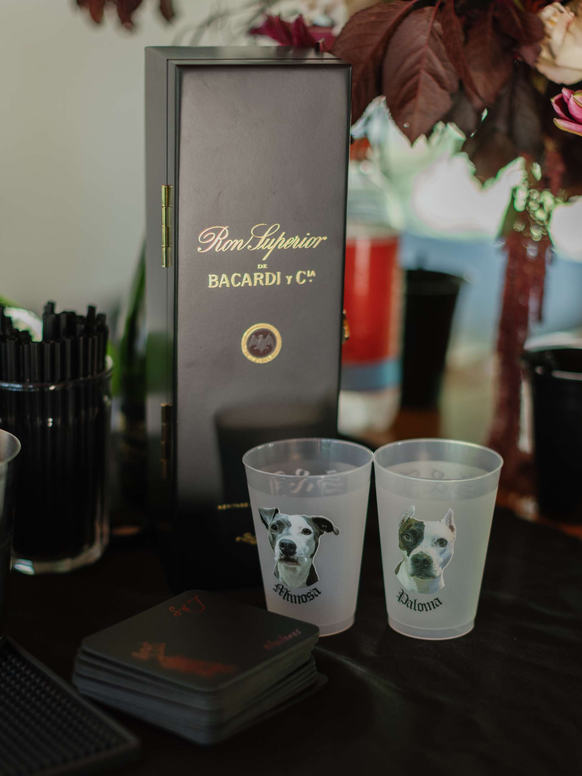After the intimate ceremony, the party lit up fast. The playlist flipped between pop punk, metal and EDM. At one point, a mosh pit formed. The bride had made two piñatas shaped like their dogs for a chaotic, joyful toss. The cocktails followed a ‘Hers’, ‘His’ and ‘Ours’ structure, with the ‘Ours’ drink inspired by cocktails they have enjoyed together, and created and a nod to their shared history as working in bars (which is also how they met).