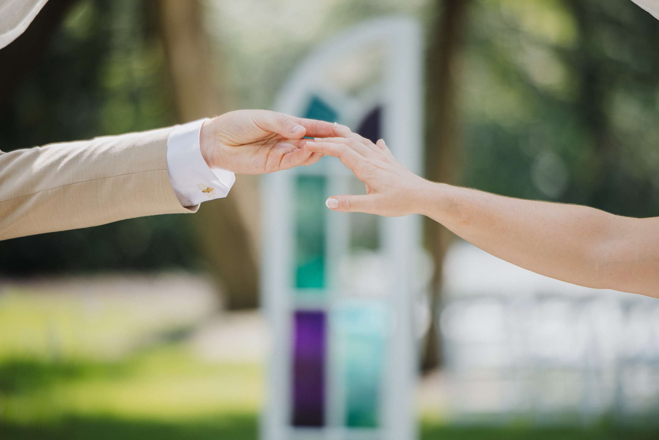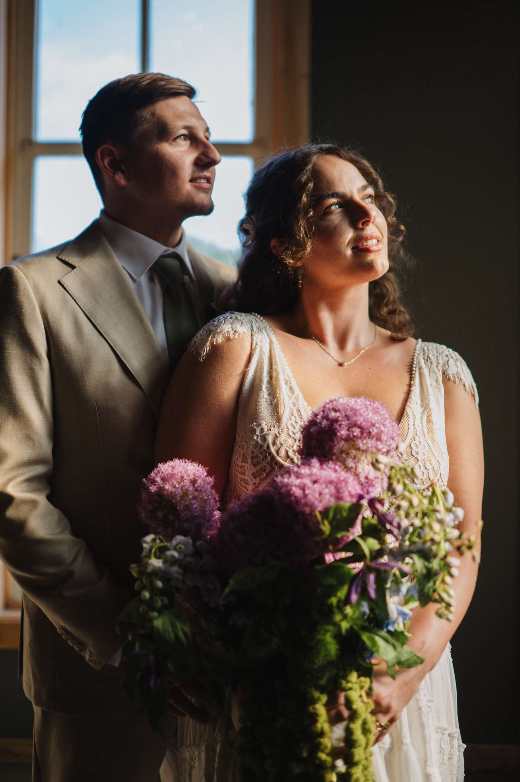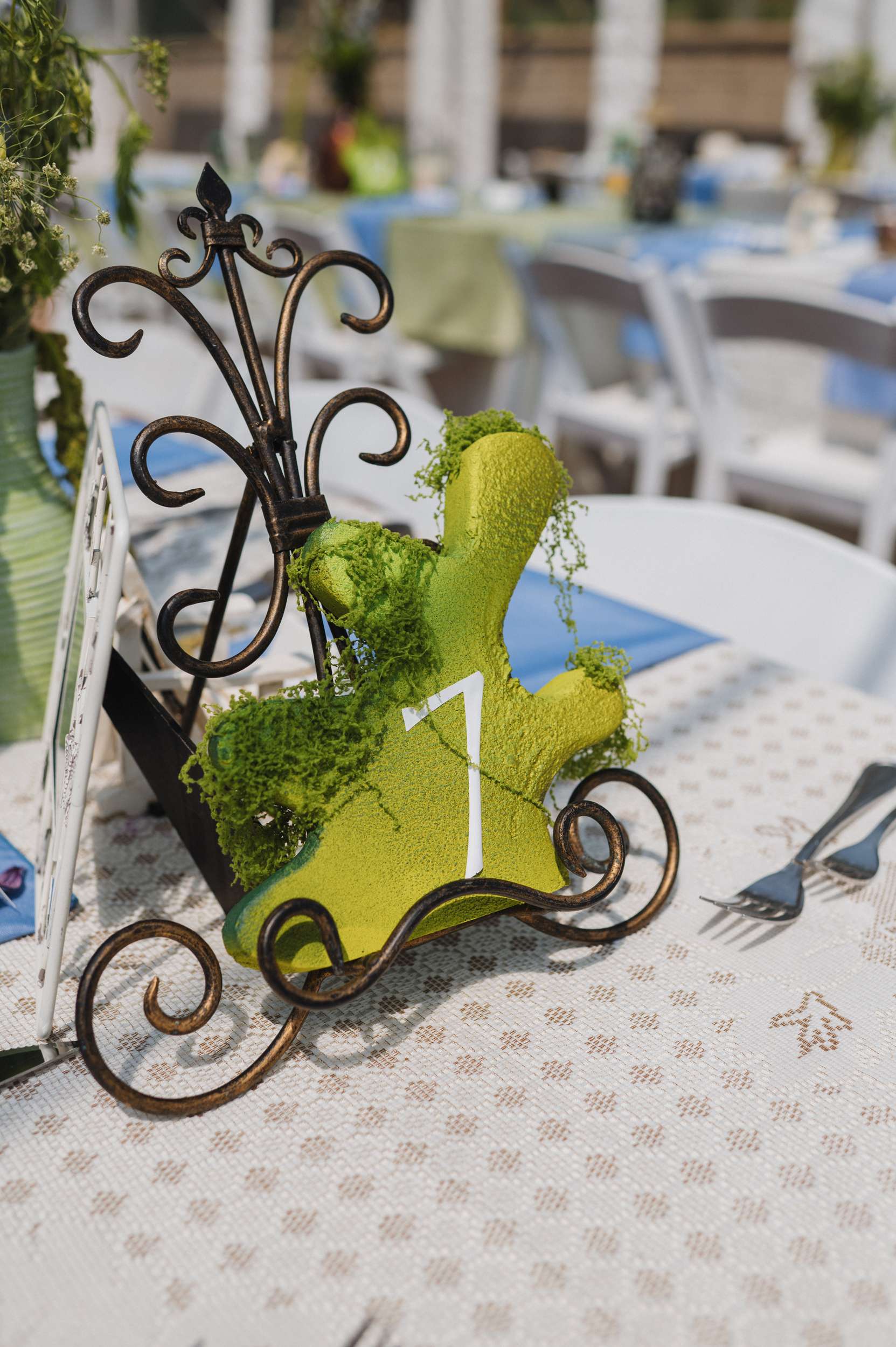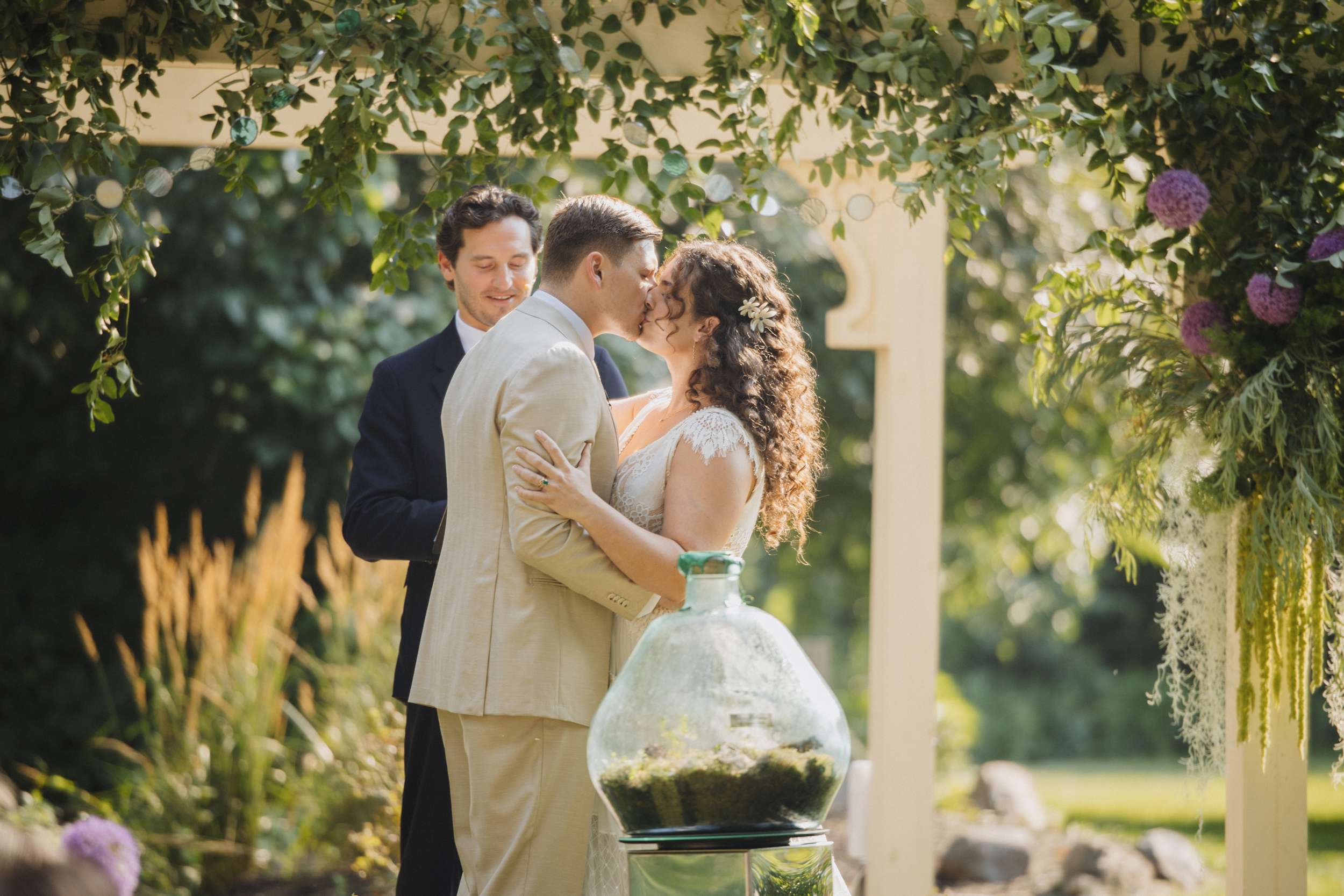 Instead of a more usual sand ceremony, the couple put together a terrarium, which they called Terra d’Amore. They filled it with moss from their venue, their joint hen/stag trip, the river where they white-water rafted, their apartments, and the bride’s mum’s house. The terrarium closing ritual ended in a wax seal during the ceremony. “Our vows were perfect”, she remembered. “We have been together for seven years so it’s hard to say things you don’t already say on a daily basis. It was such a special moment publicly declaring our love to one another while speaking so intimately.”