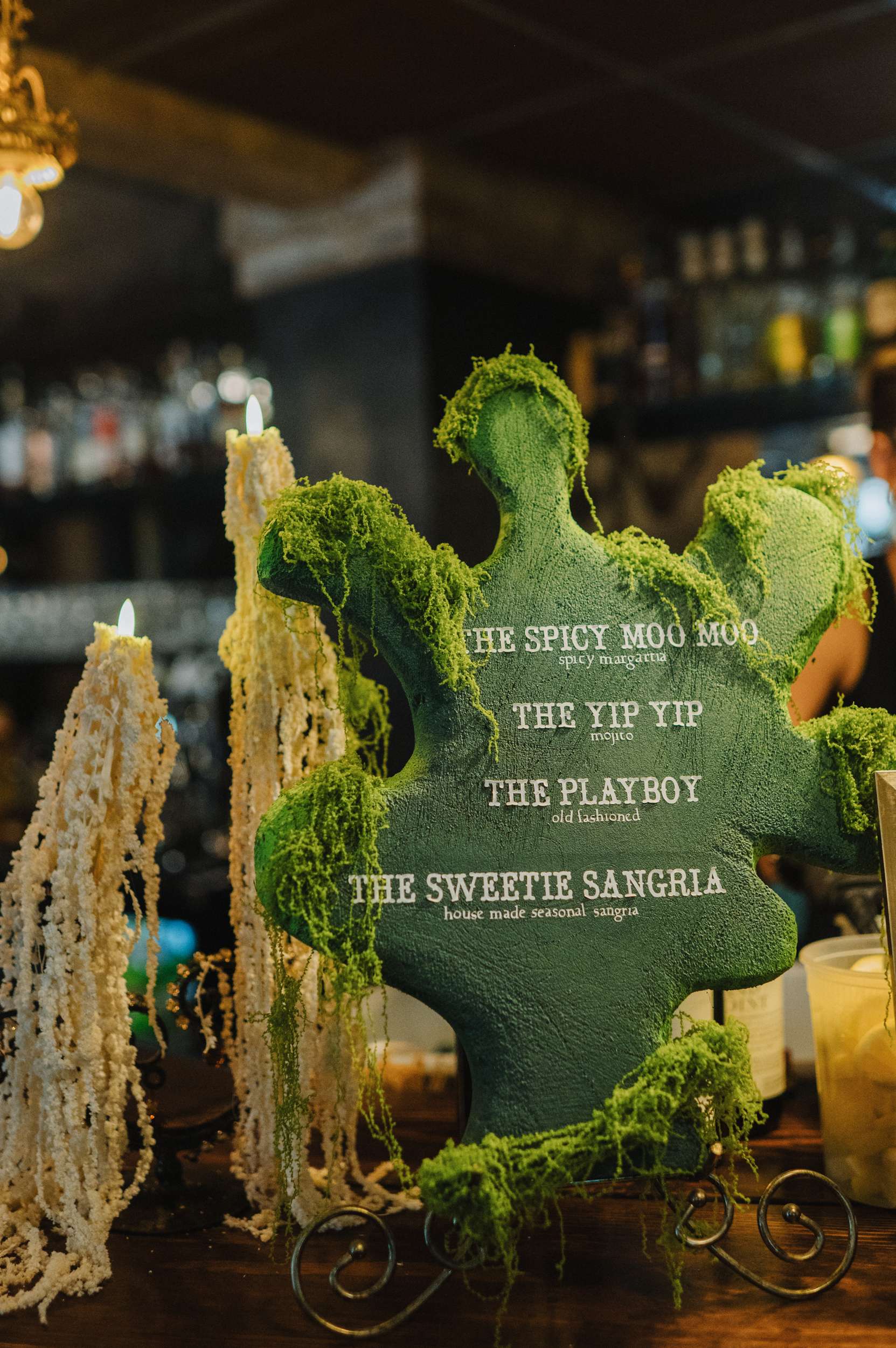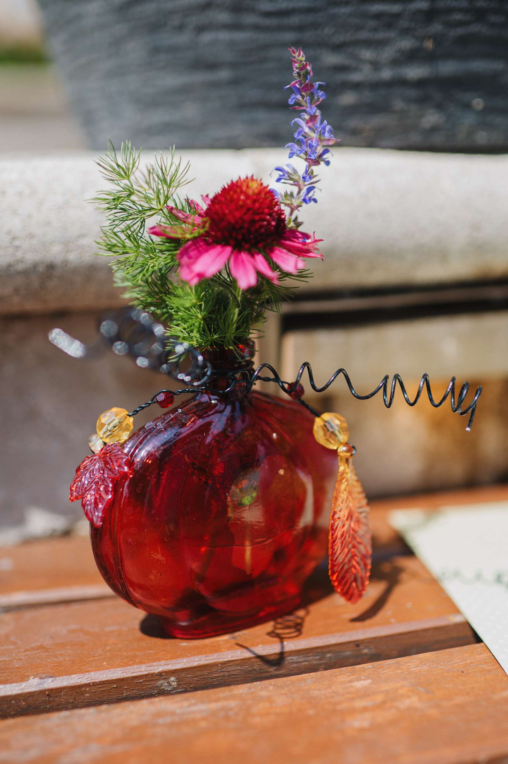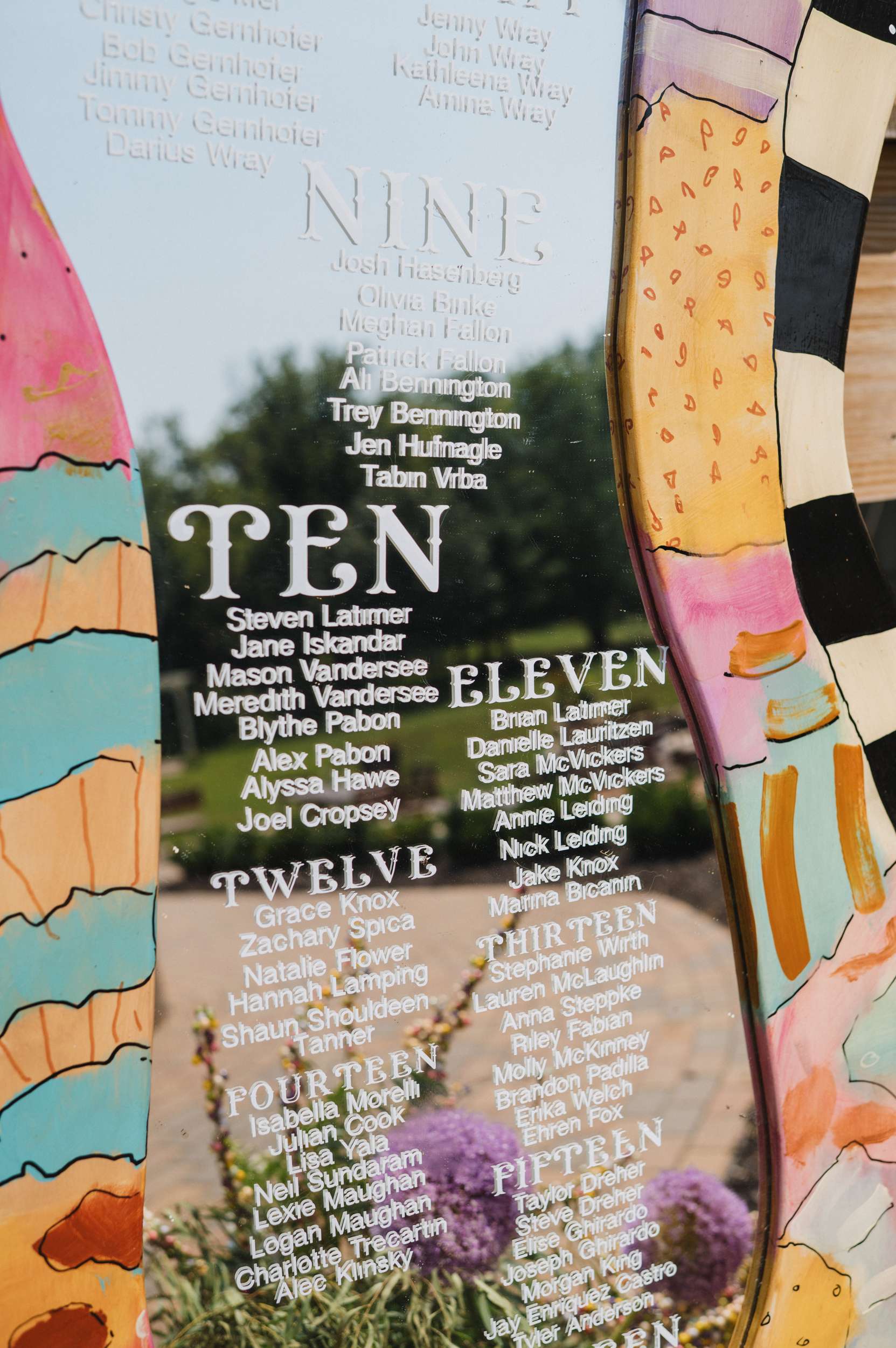 Mia had always called the theme ‘The Whimsical Wedding of Jake and Mia’. She and Jake grew up on fantasy books and loved the idea of a magical garden that felt alive. She said, “I don’t think its everyday you have a bride doing fused glass flowers, making all the signage by hand, doing all the florals, and doing her hair and make-up.”