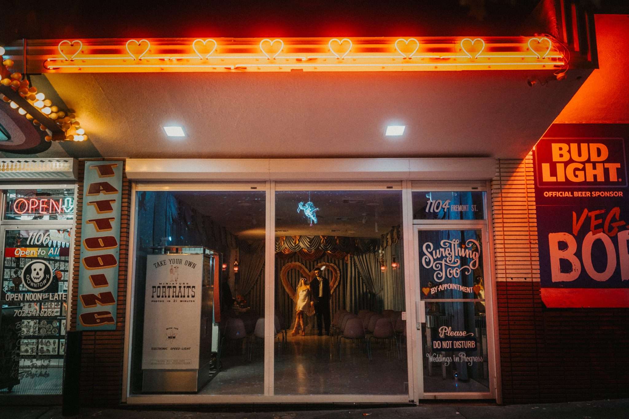 Sure Thing Chapel (and their second location, Sure Thing Too) in Las Vegas has become somewhat of a pilgrimage spot for alt couples who want a kitsch, quirky Vegas wedding. We see a lot of weddings in this space. We’ve featured weddings with rhinestones, leather, Hellvis, pink suits, black veils and every combination possible. Then Zuza and Marcin walked in and the way Tree of Life Films & Photos captured them almost shifted the room into something new. We are totally obsessed with these photos and we think you will be too.