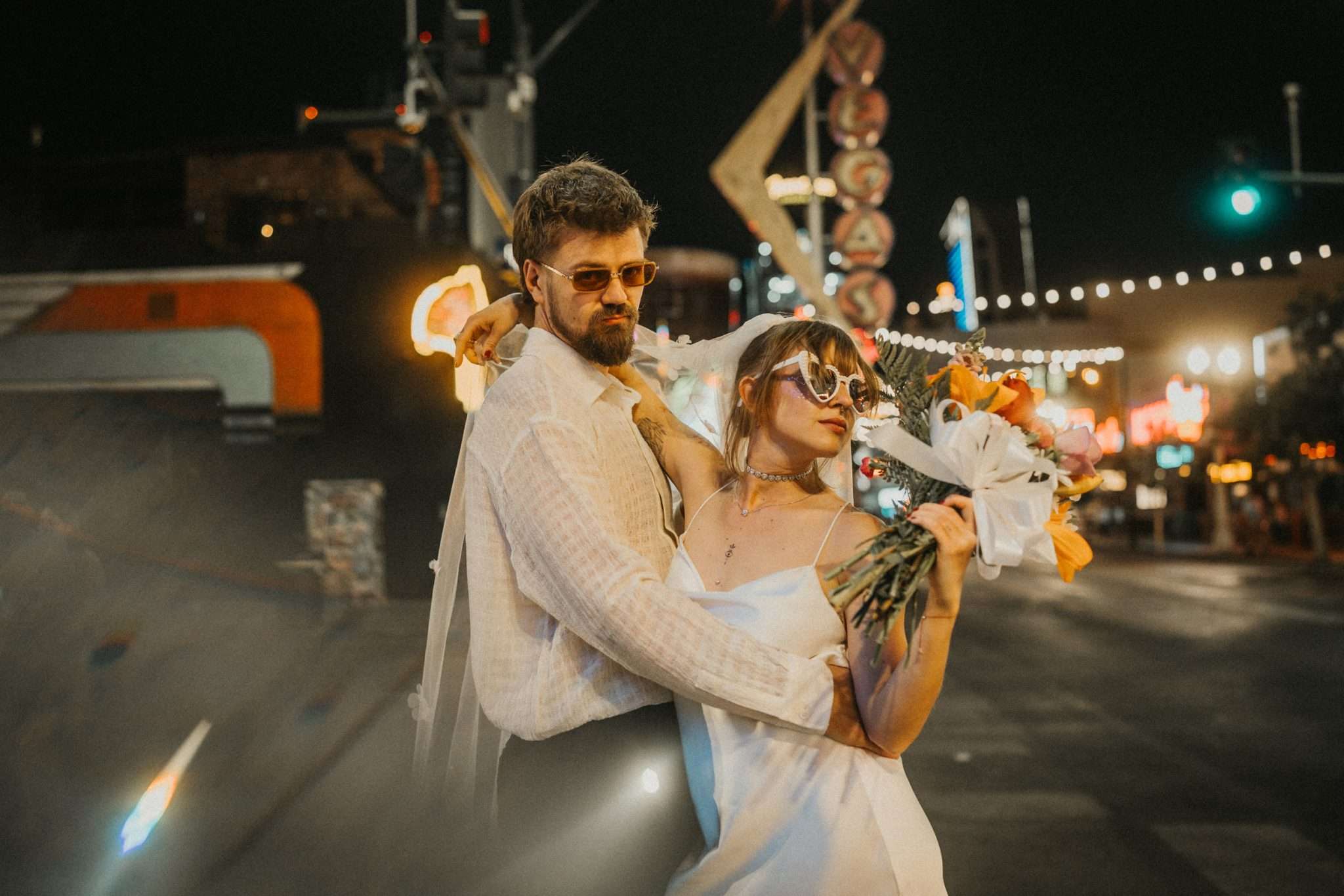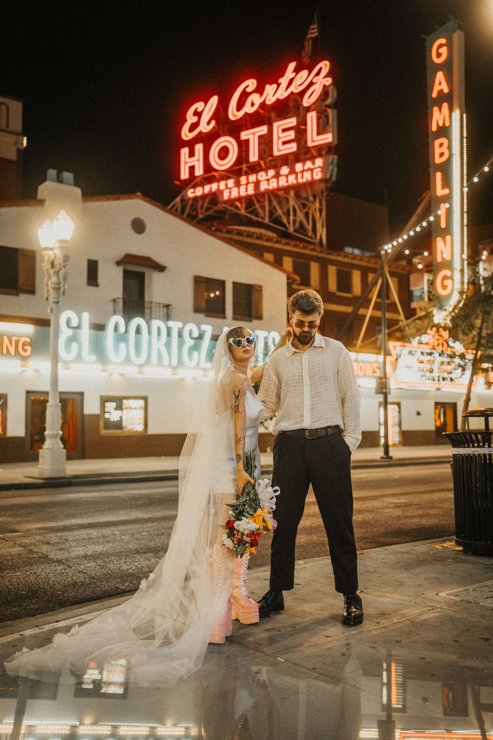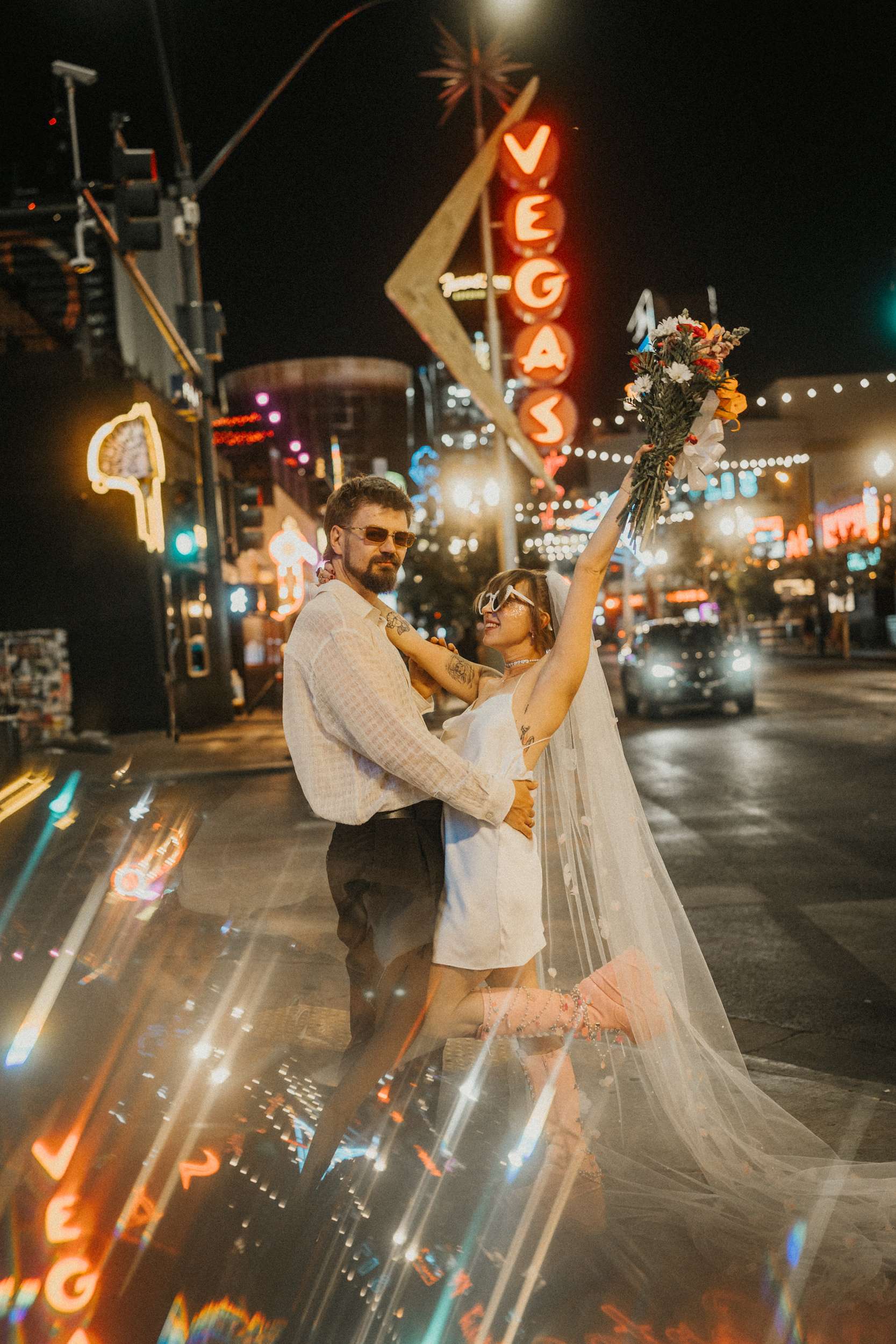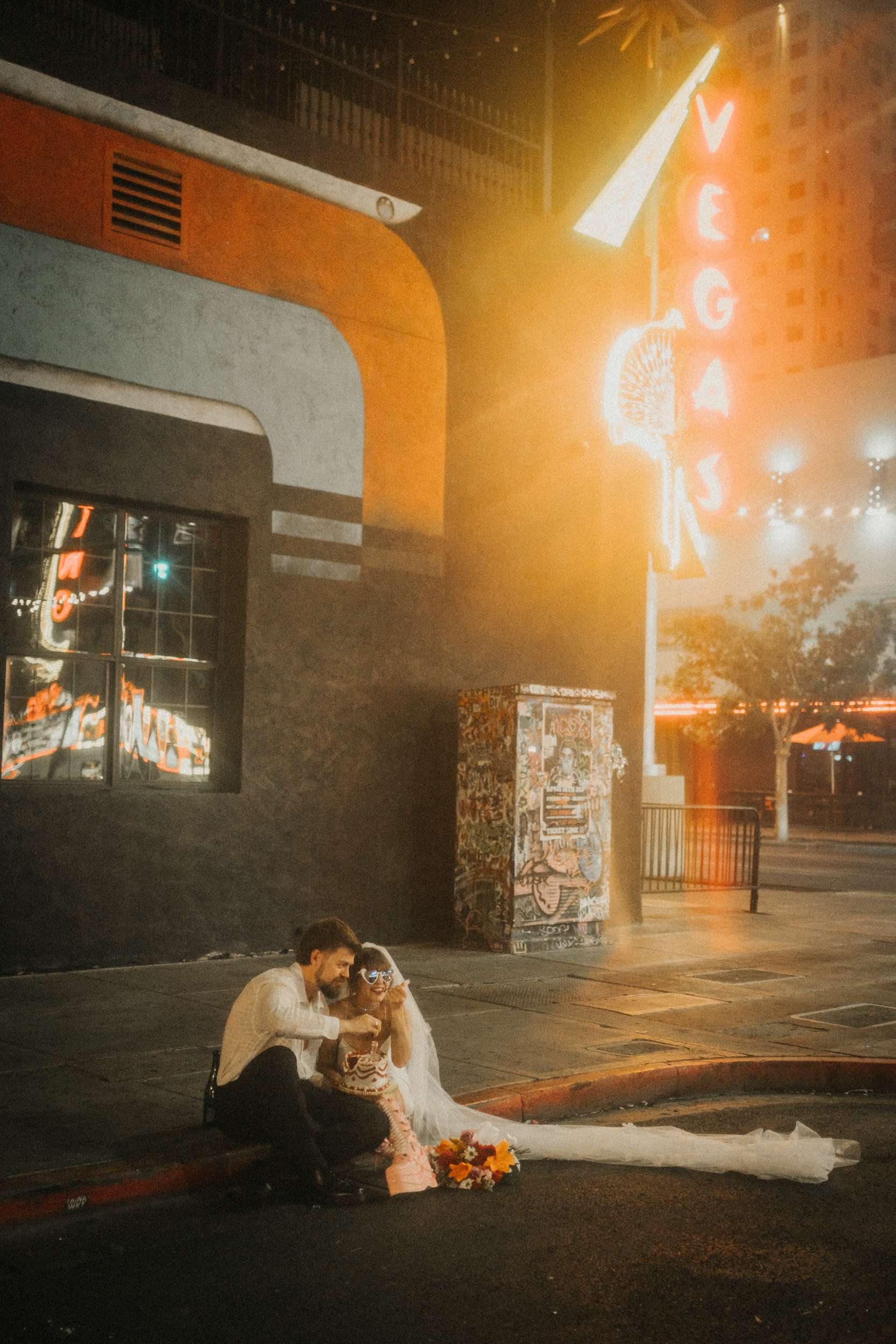 They strutted out of the chapel as if stepping into a music video. Champagne in hand. Cake eaten siting on the street. A random staircase in a casino was turned into an epic portrait location. “We wanted to look like rockstars!” they said “And Vegas was the ideal place for that. We loved that we had time for ourselves and we didn’t really have to care about anything else.”