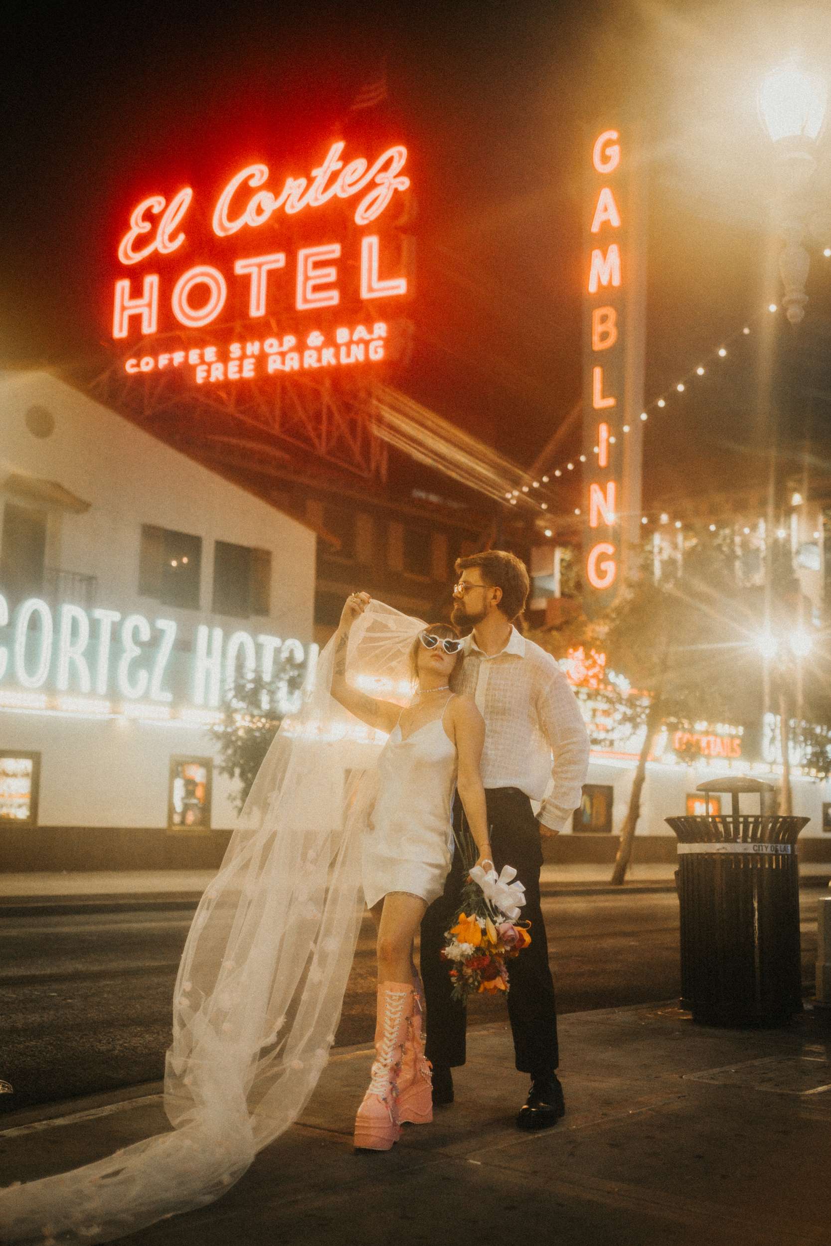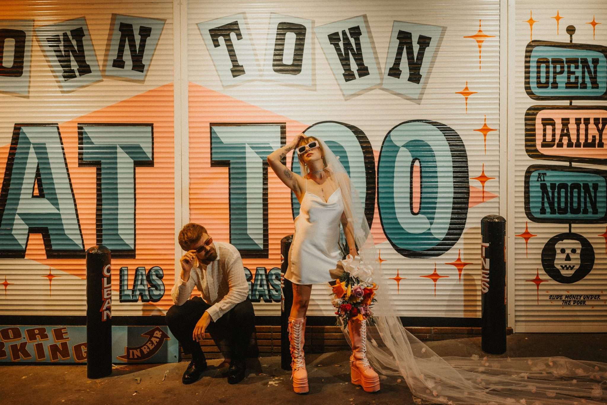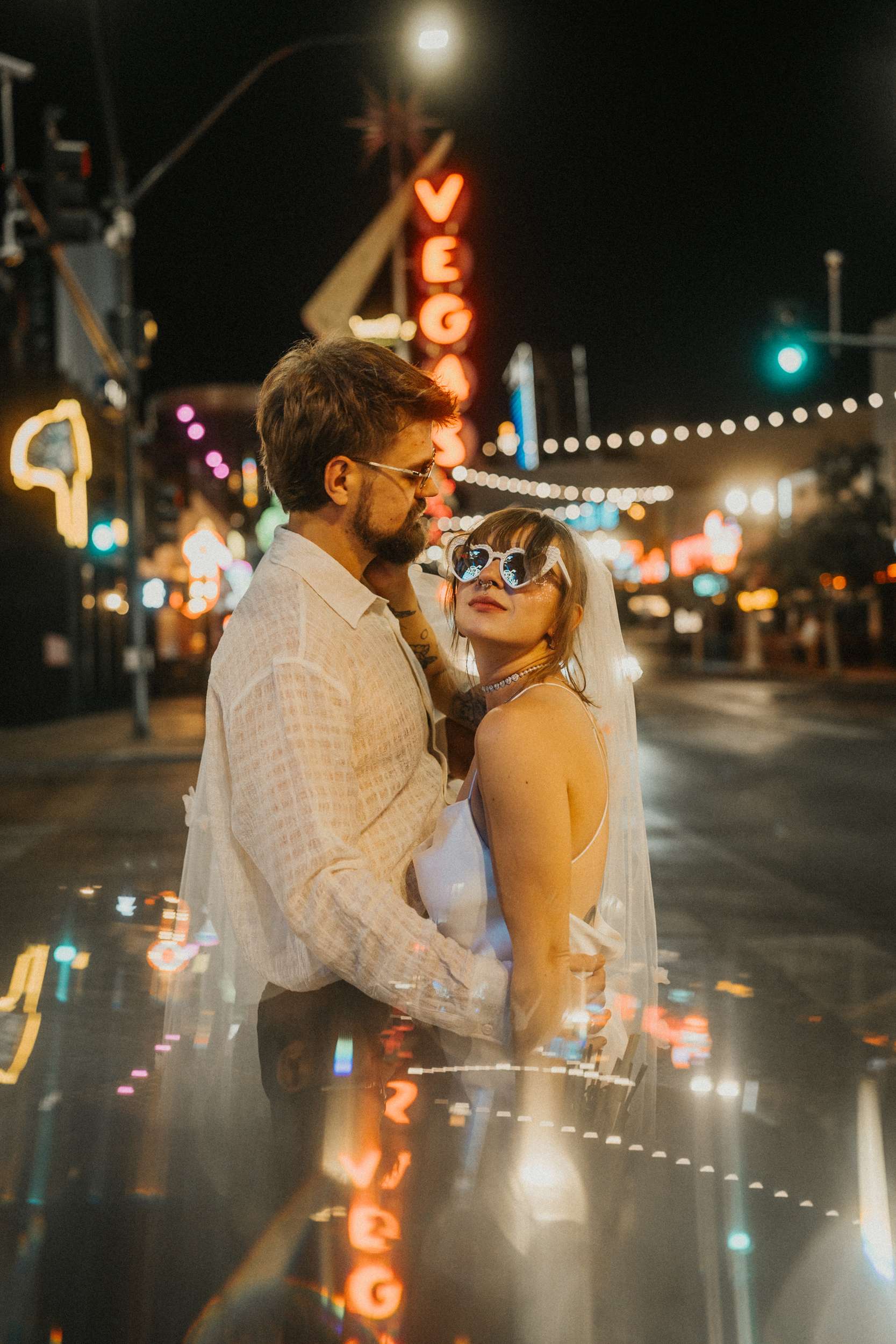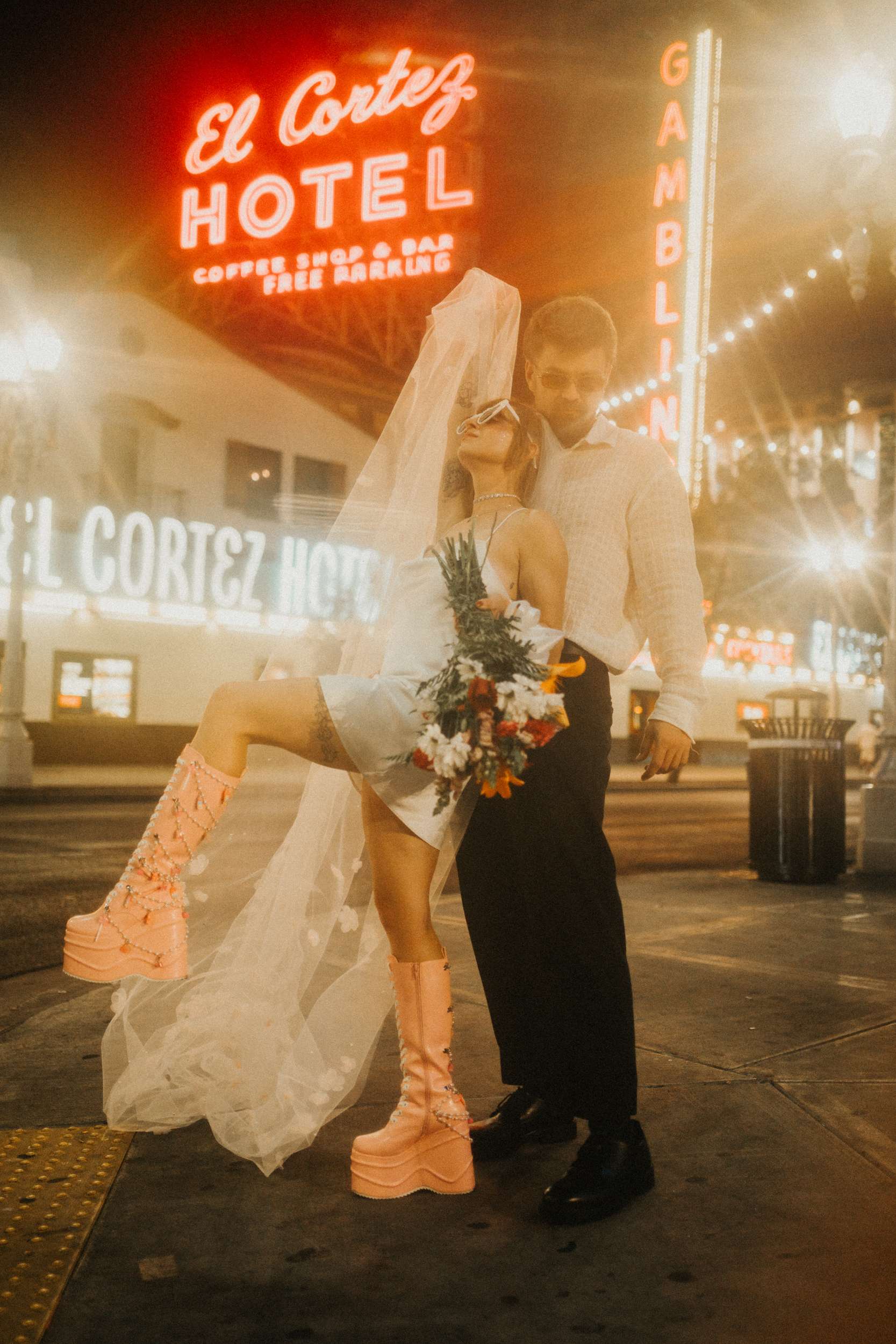 They strutted out of the chapel as if stepping into a music video. Champagne in hand. Cake eaten siting on the street. A random staircase in a casino was turned into an epic portrait location. “We wanted to look like rockstars!” they said “And Vegas was the ideal place for that. We loved that we had time for ourselves and we didn’t really have to care about anything else.”