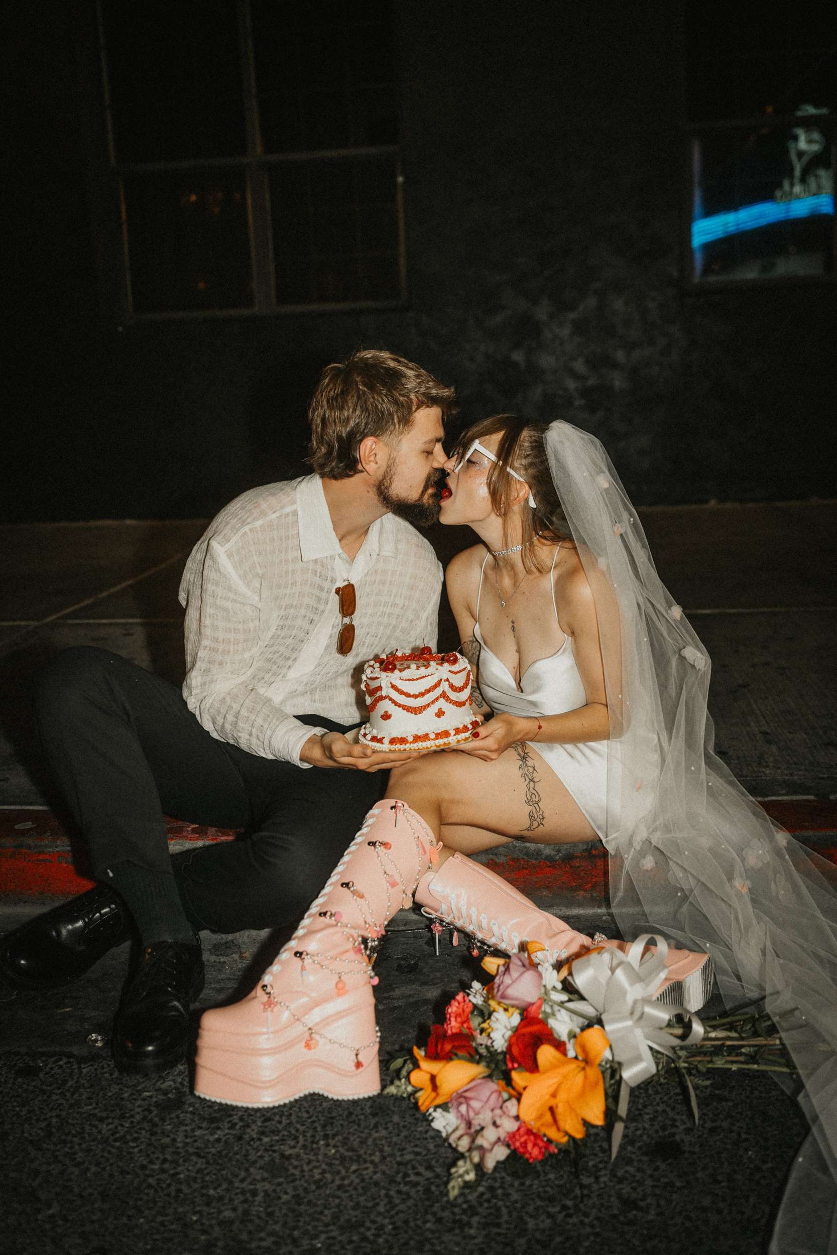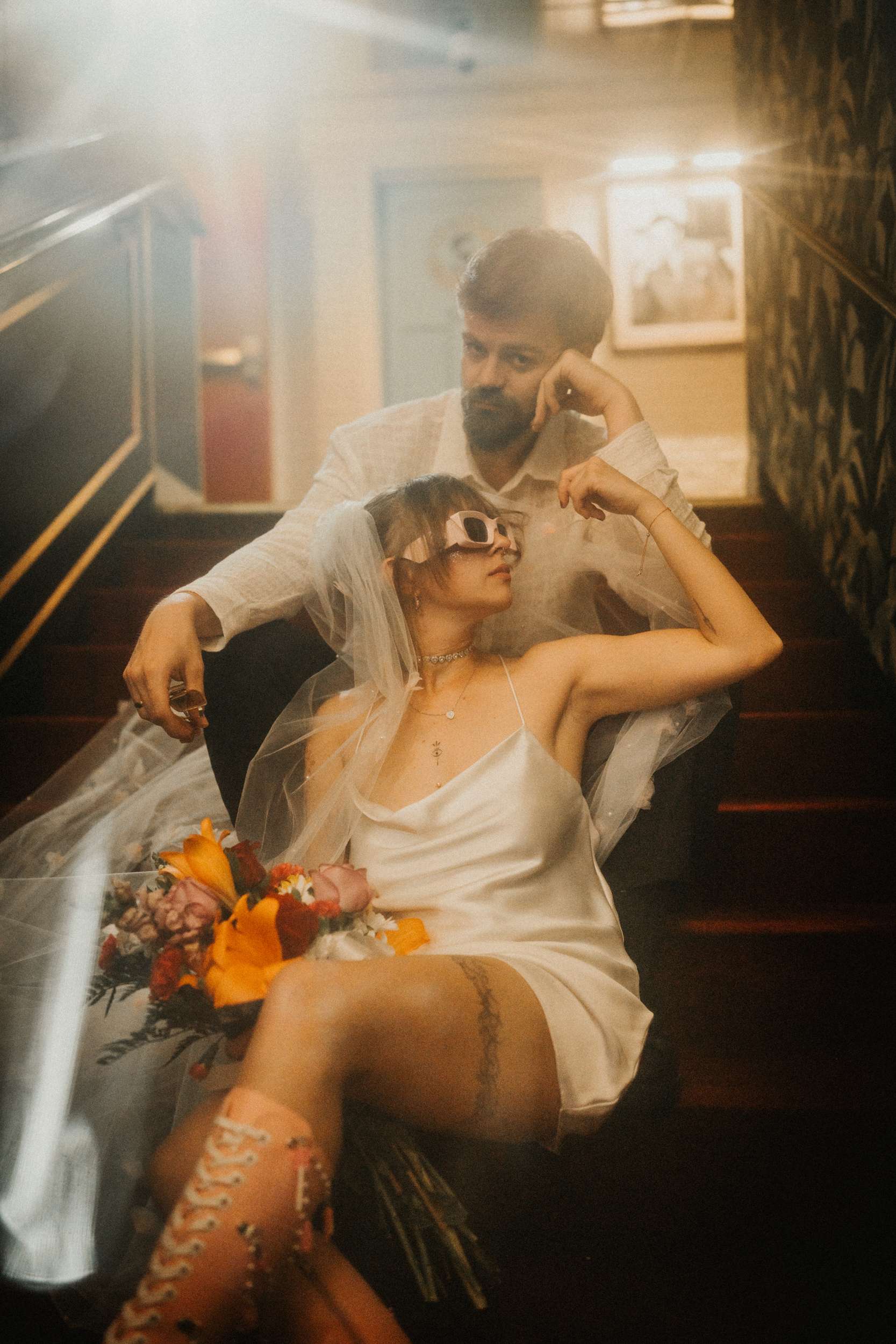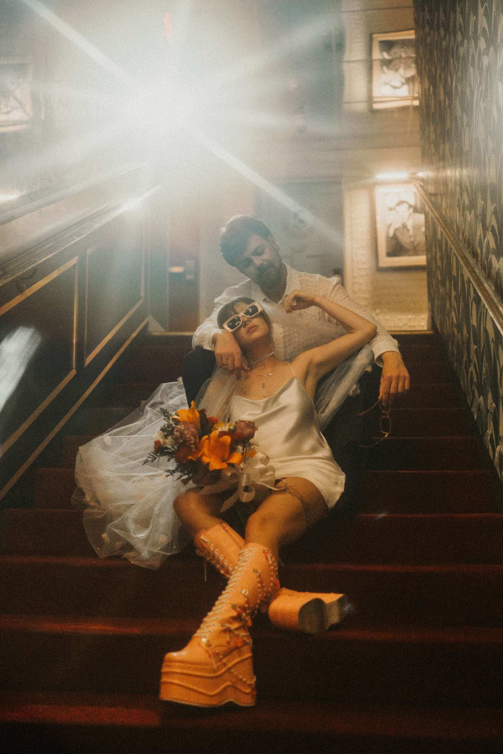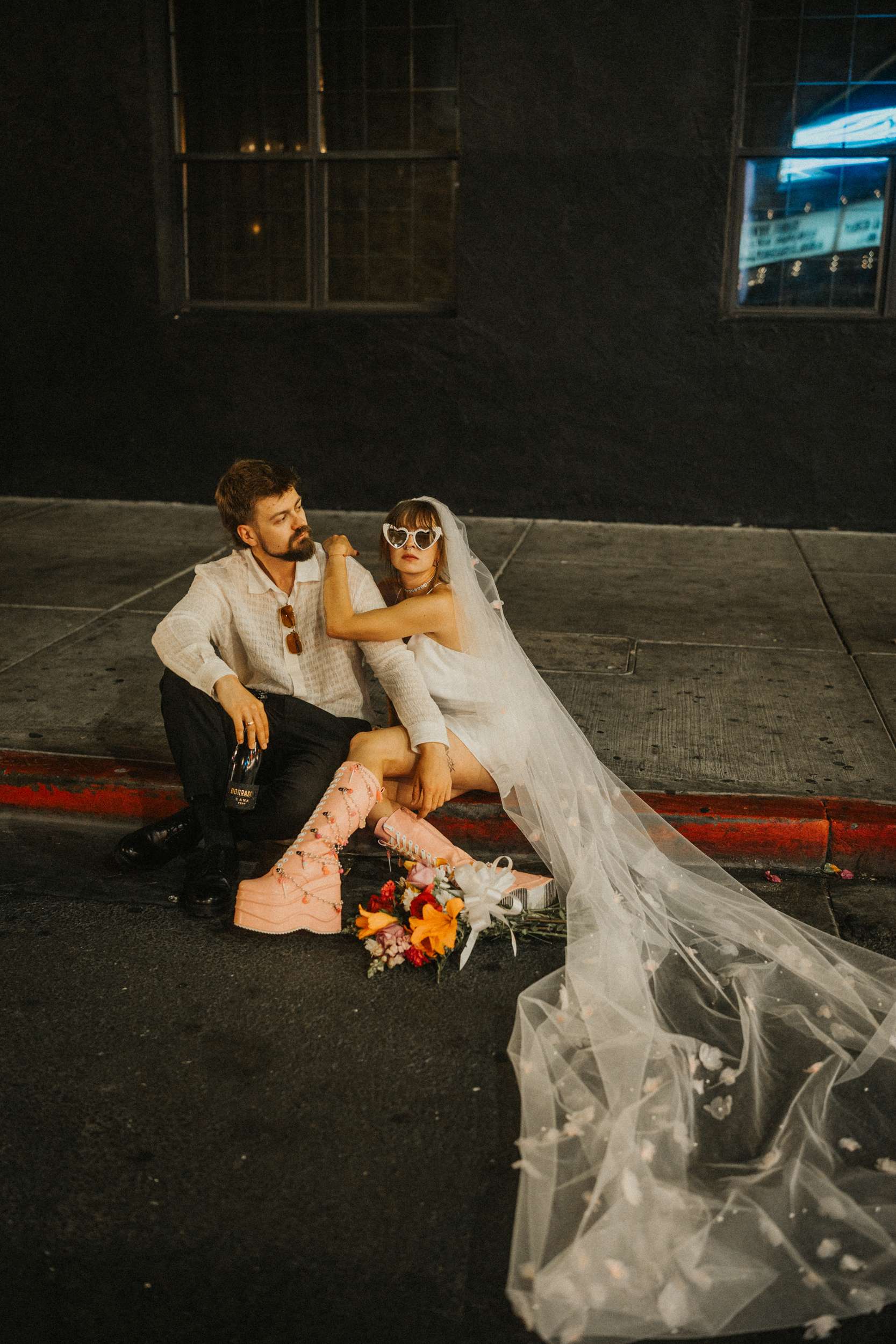 They strutted out of the chapel as if stepping into a music video. Champagne in hand. Cake eaten siting on the street. A random staircase in a casino was turned into an epic portrait location. “We wanted to look like rockstars!” they said “And Vegas was the ideal place for that. We loved that we had time for ourselves and we didn’t really have to care about anything else.”