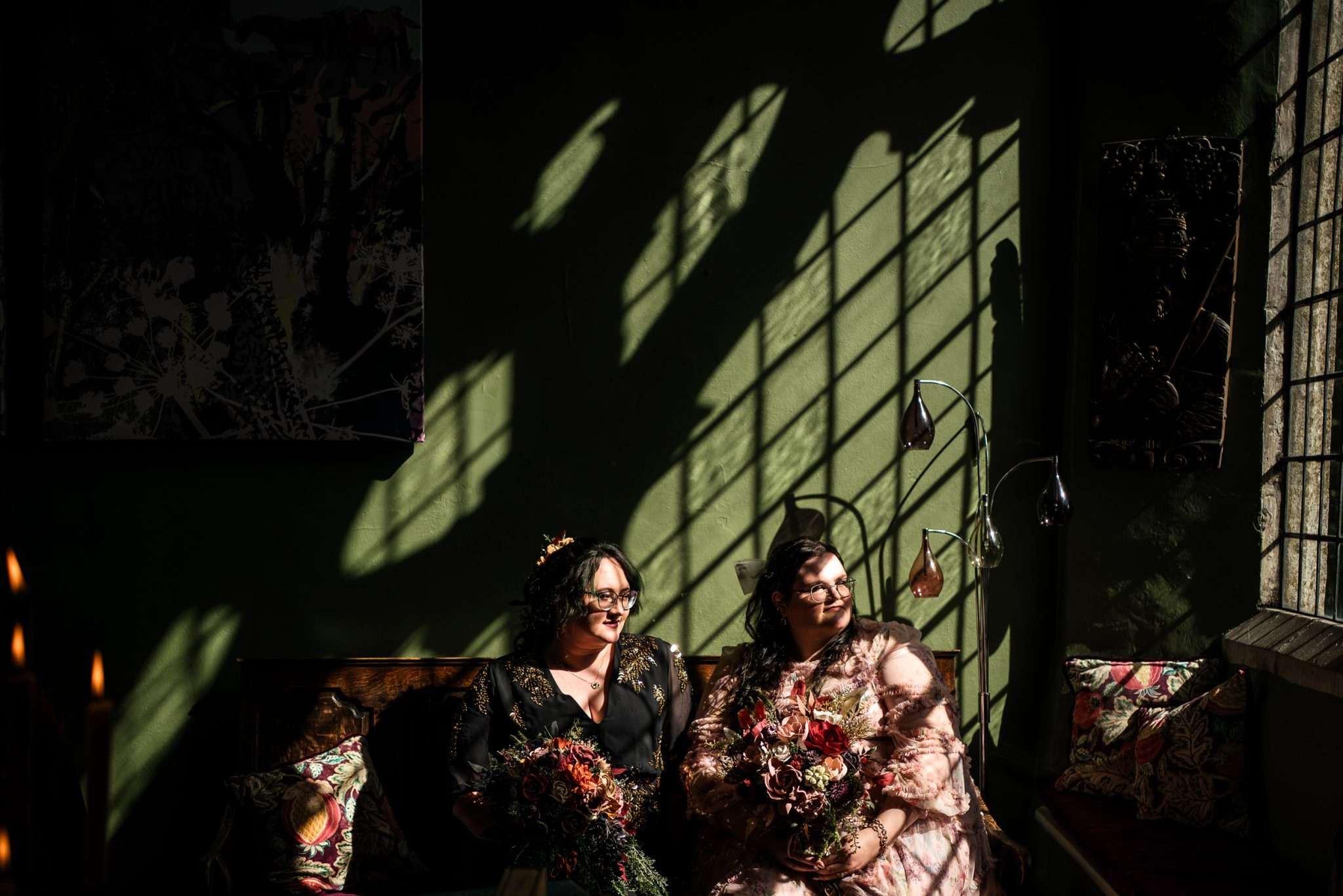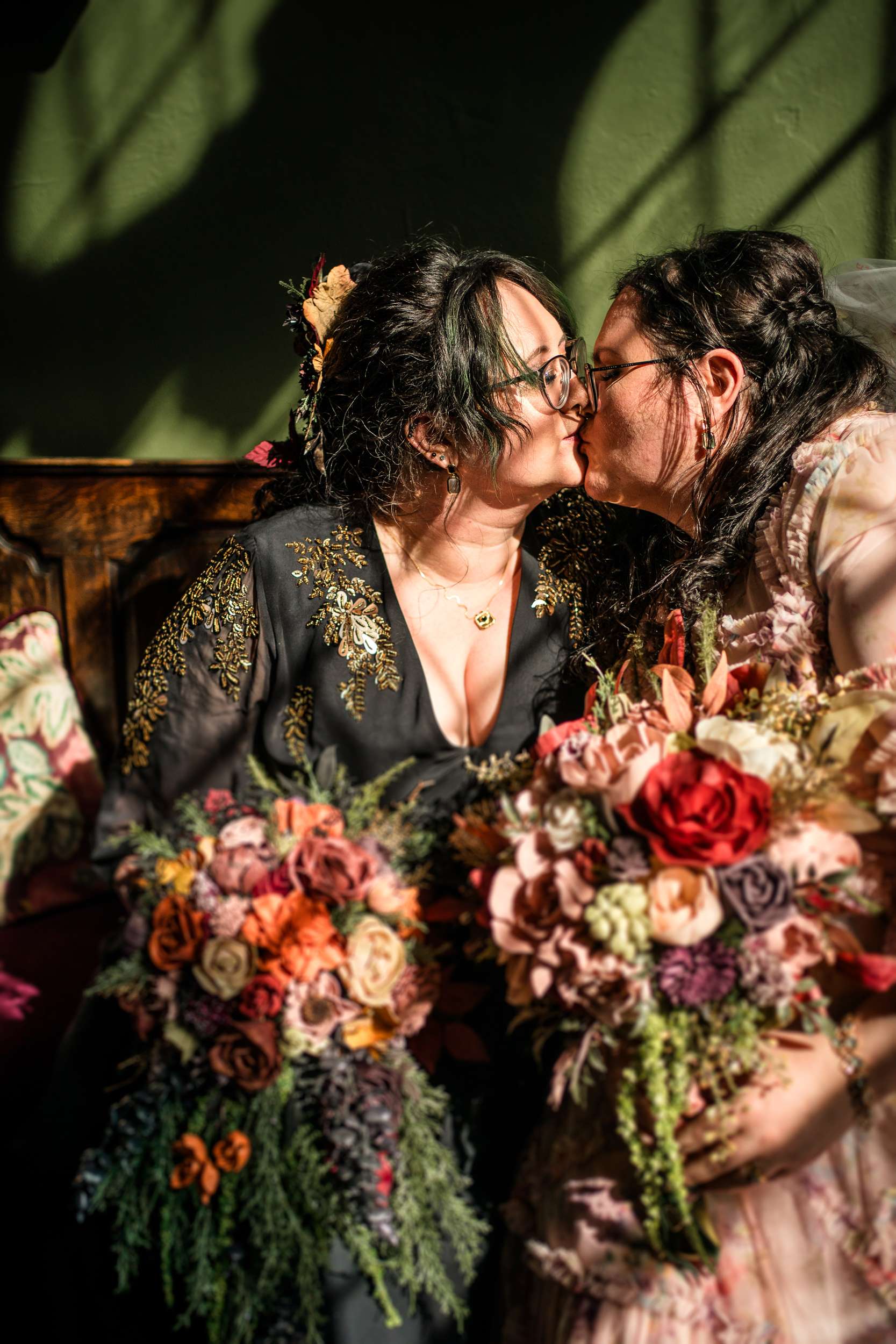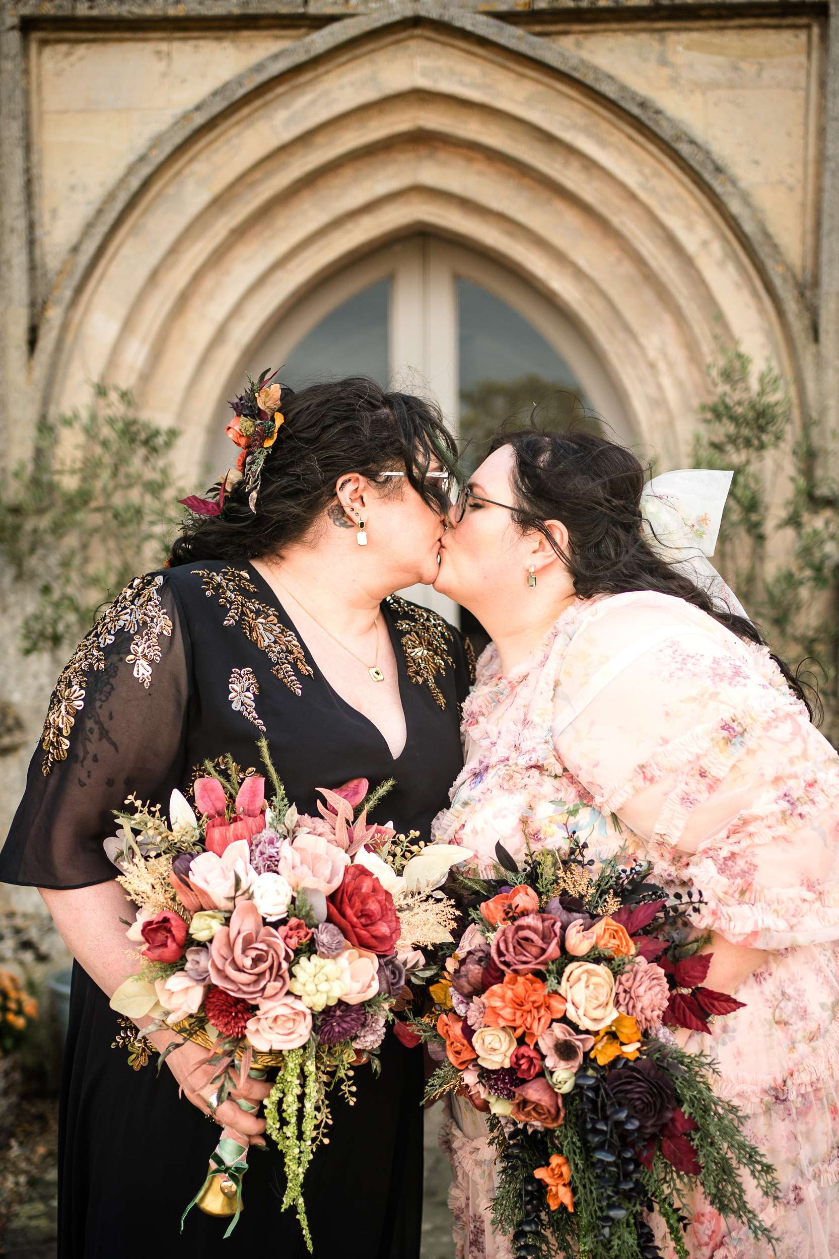 Cally and Abby have very different styles – Cally loves pastels and florals whereas Abby is more goth. So their wedding was all about combining their aesthetics. The result was a day that sat somewhere between a fairytale forest and Halloween. They knew their styles didn’t match in a neat, symmetrical way, but just like their relationship, it totally worked.