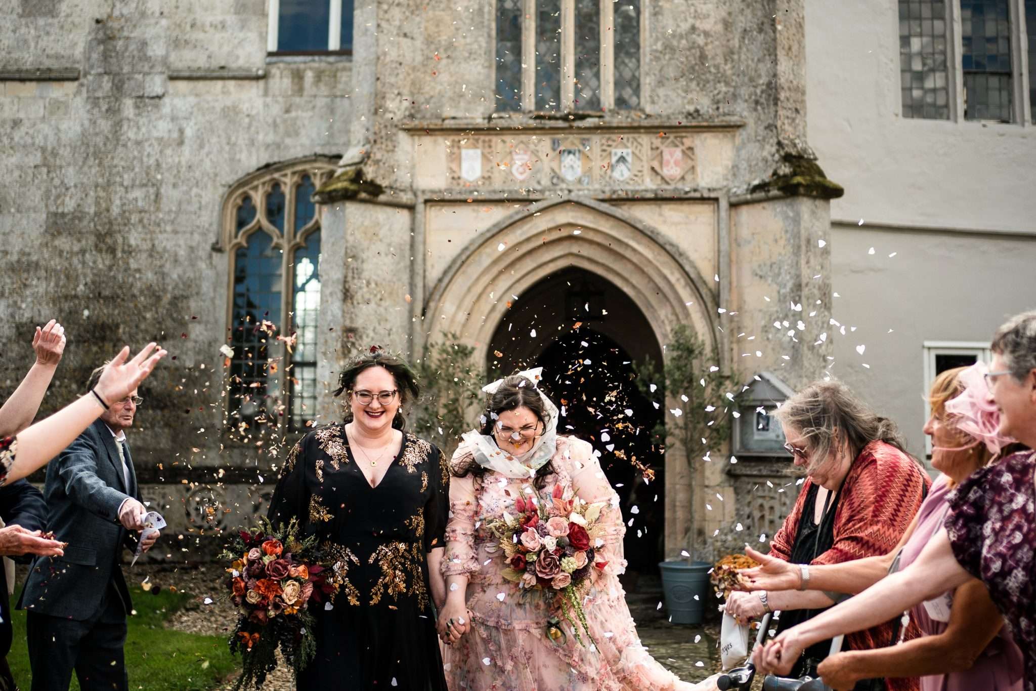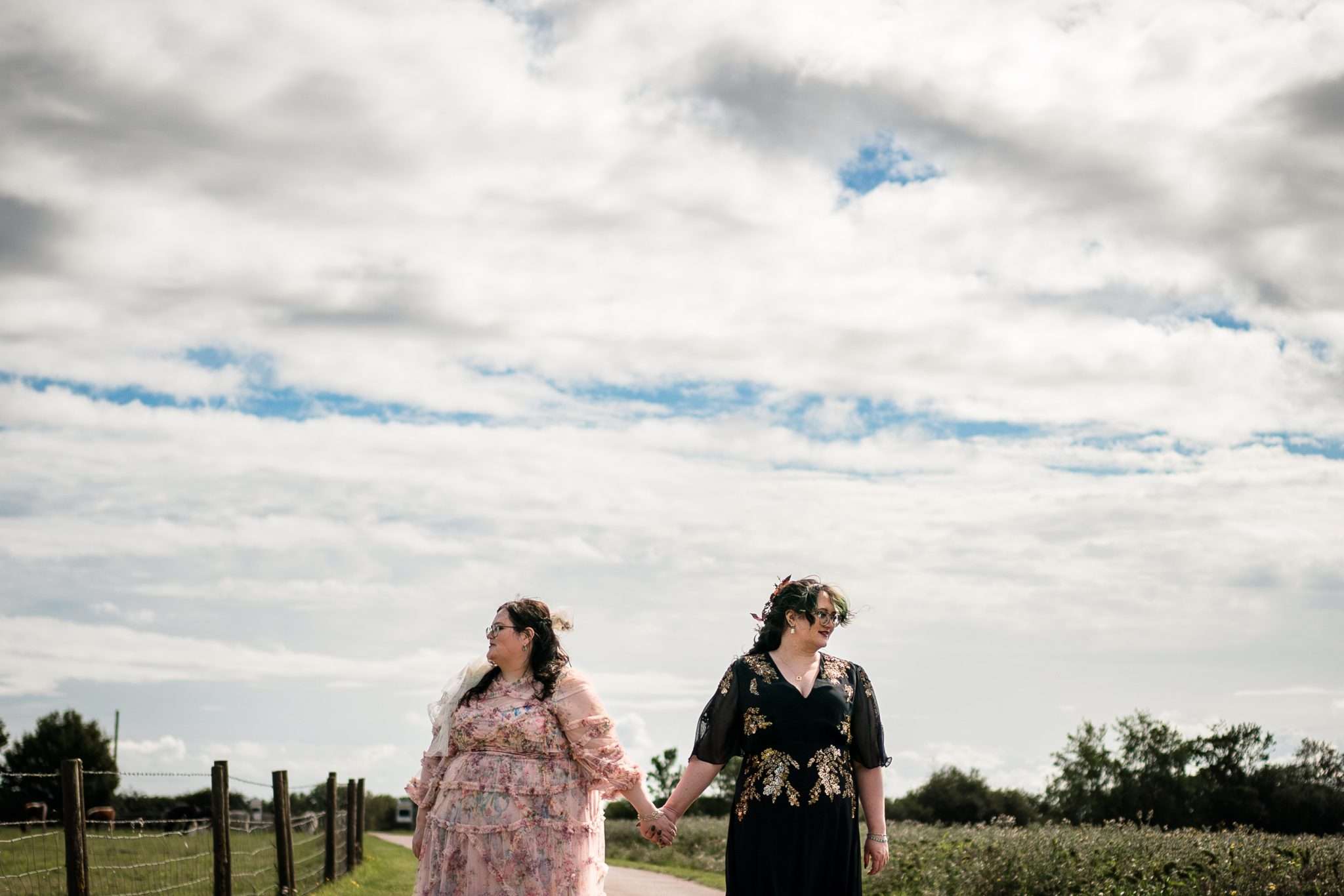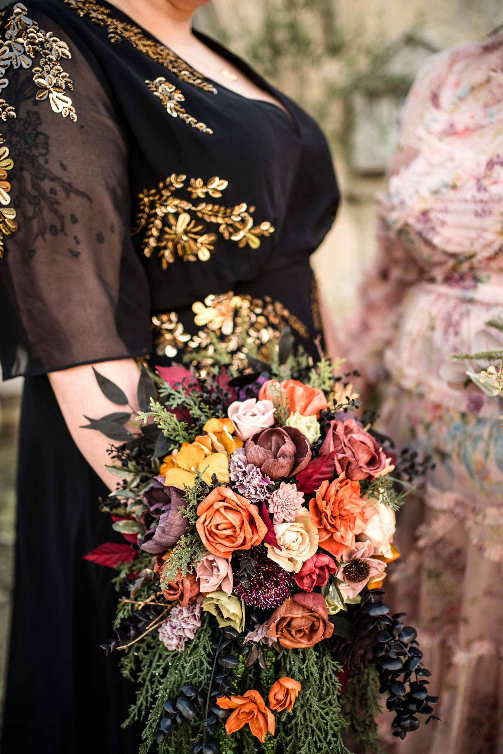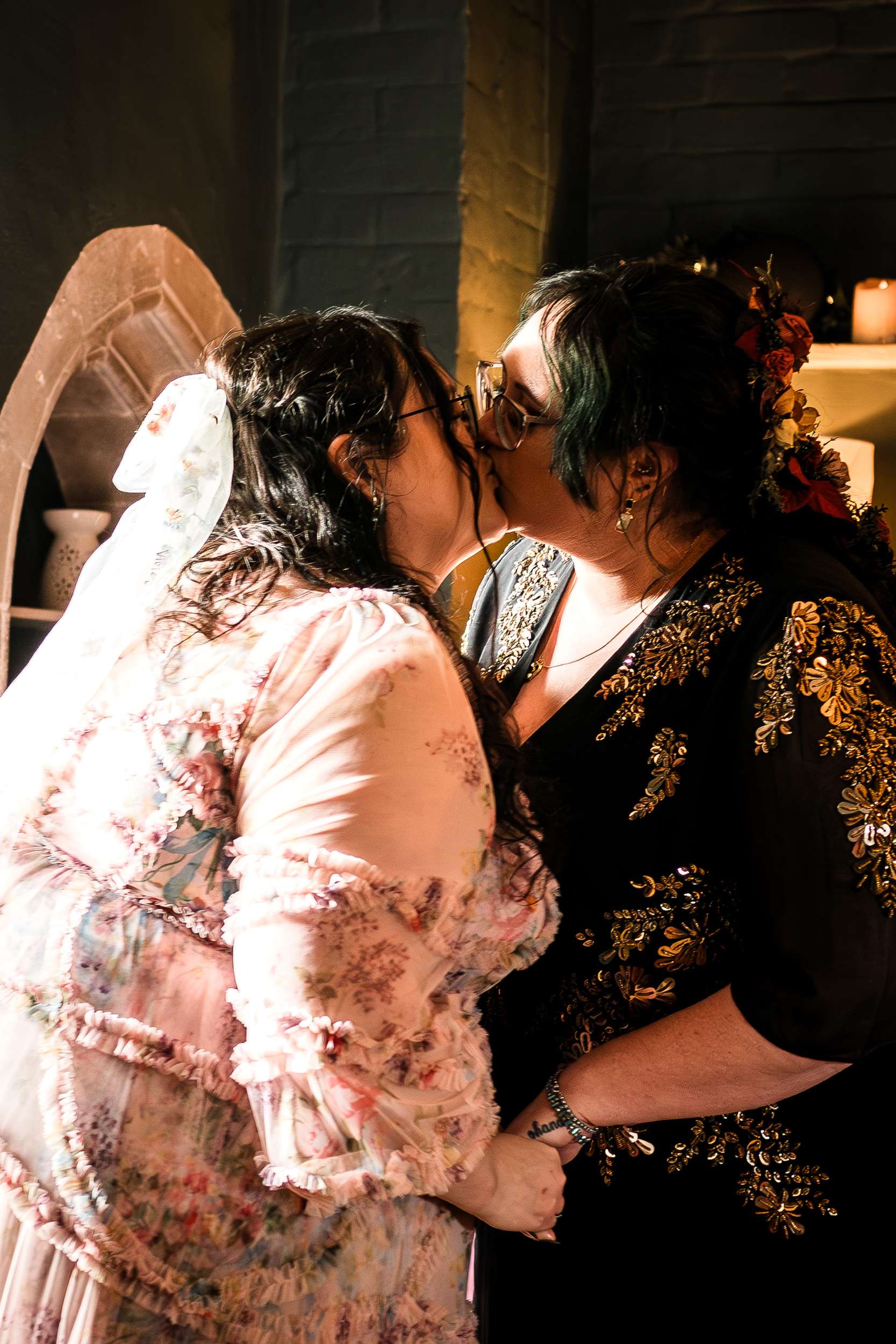 Cally and Abby have very different styles – Cally loves pastels and florals whereas Abby is more goth. So their wedding was all about combining their aesthetics. The result was a day that sat somewhere between a fairytale forest and Halloween. They knew their styles didn’t match in a neat, symmetrical way, but just like their relationship, it totally worked.