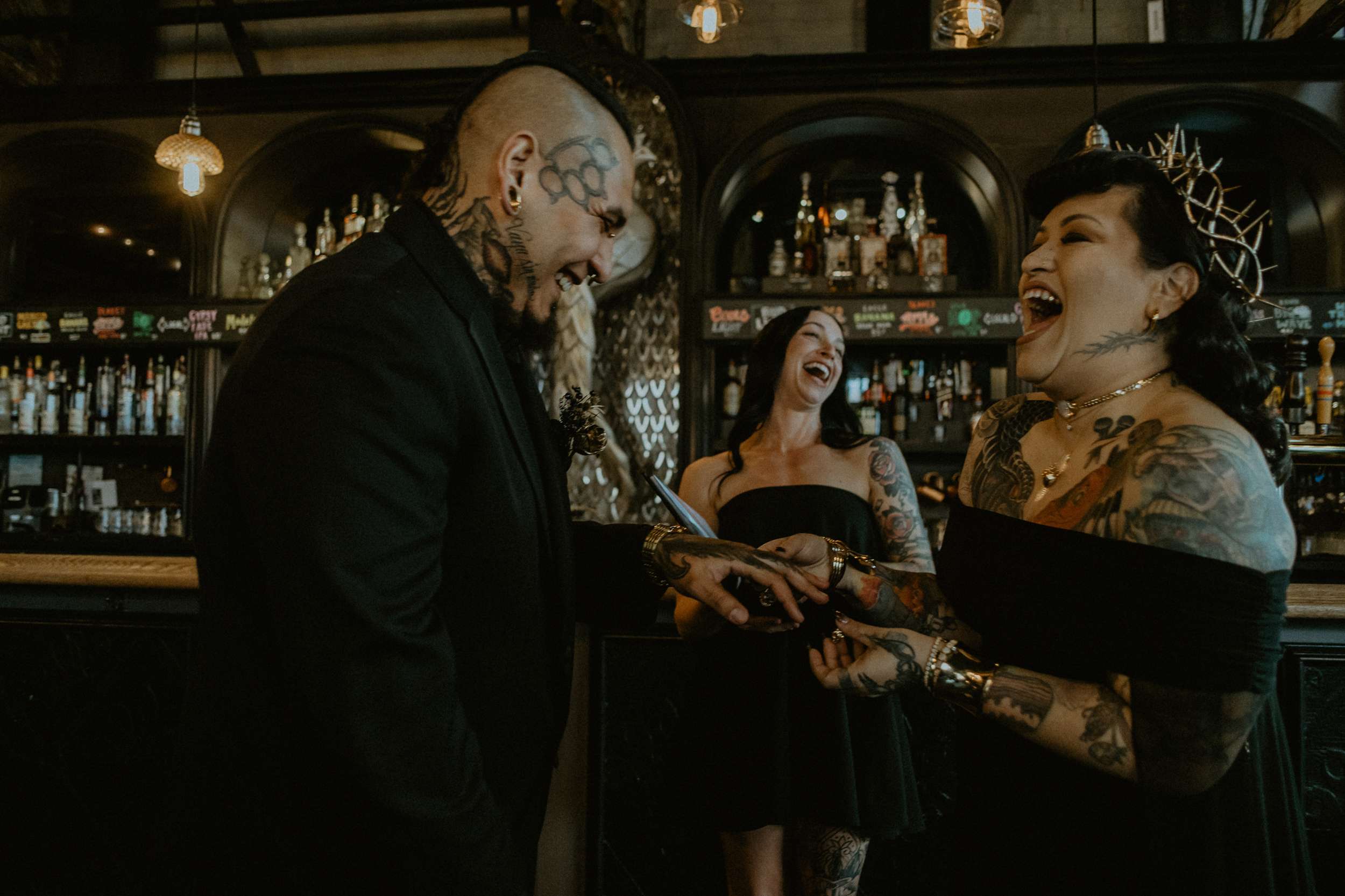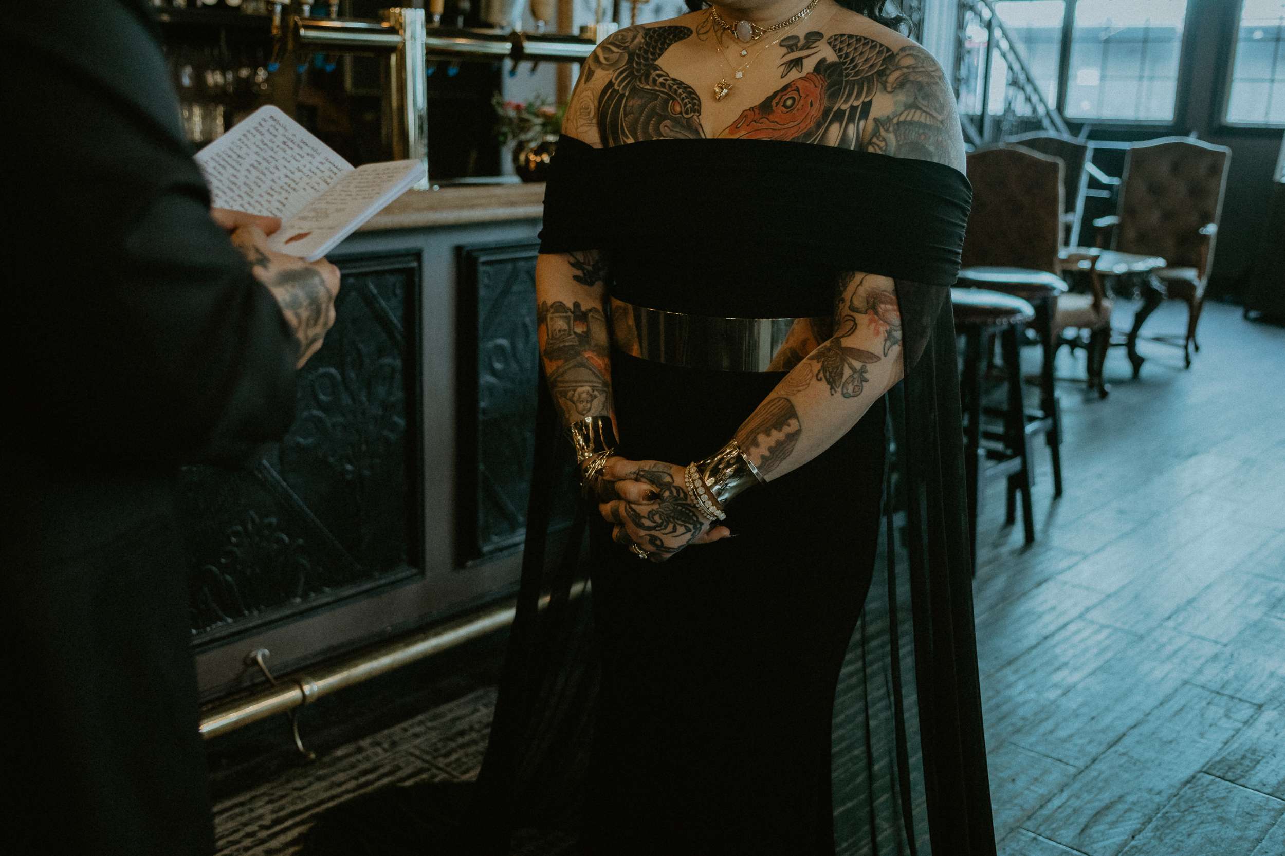 The ceremony was the highlight of the day, held at Commonwealth in downtown Vegas and officiated by their wedding planner. A small group of friends were their witness and Chaniel arrived to Motörhead. “The greatest moment of our wedding day was the moment I finally got to see my husband”, she continued. “Walking down the stairs and towards the rest of my life – I could barely keep my composure. Never in my life have I cried tears of joy the way I did the day we were wed. When we exchanged our vows it felt like we were casting spells, and in that moment we were suspended in time.”