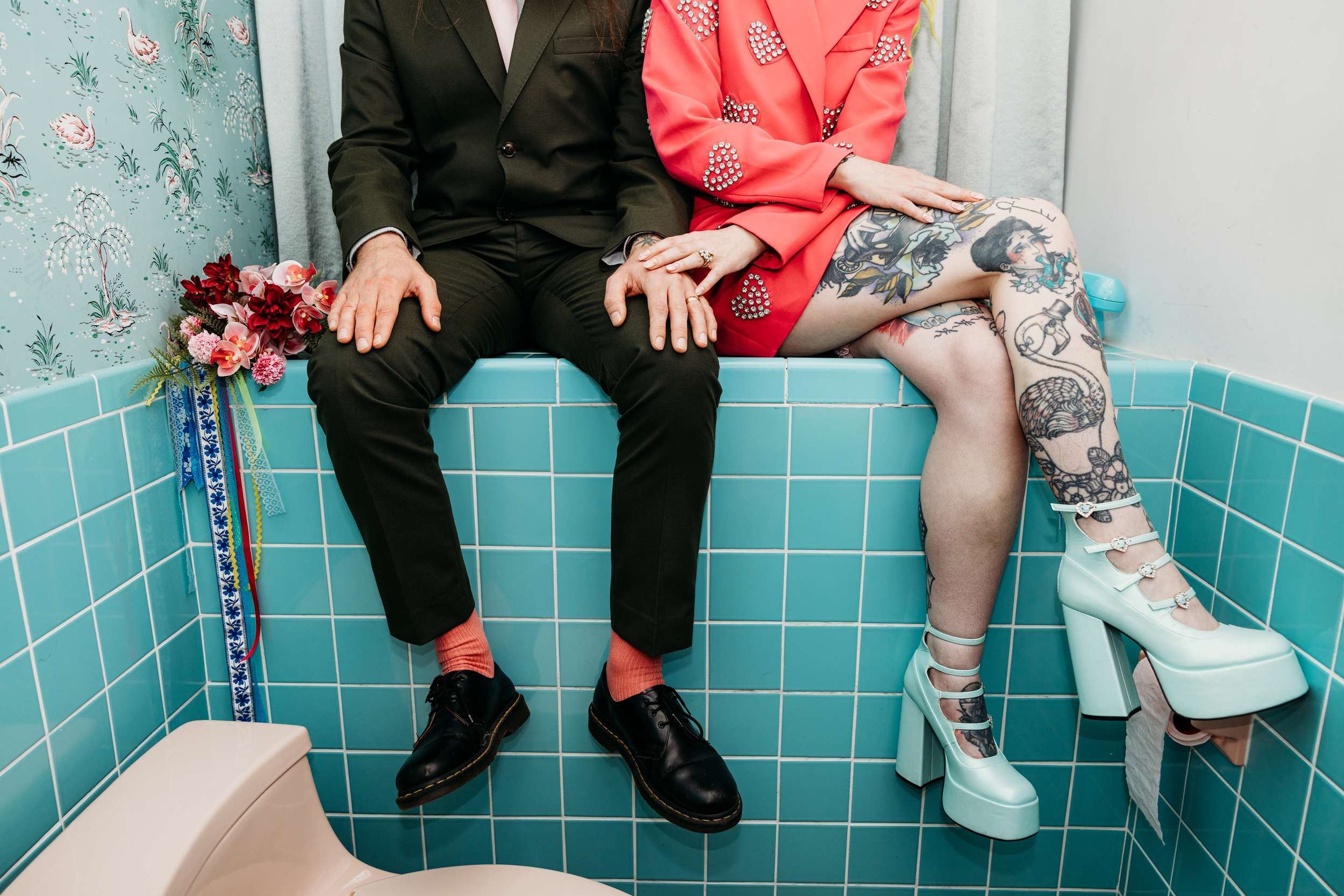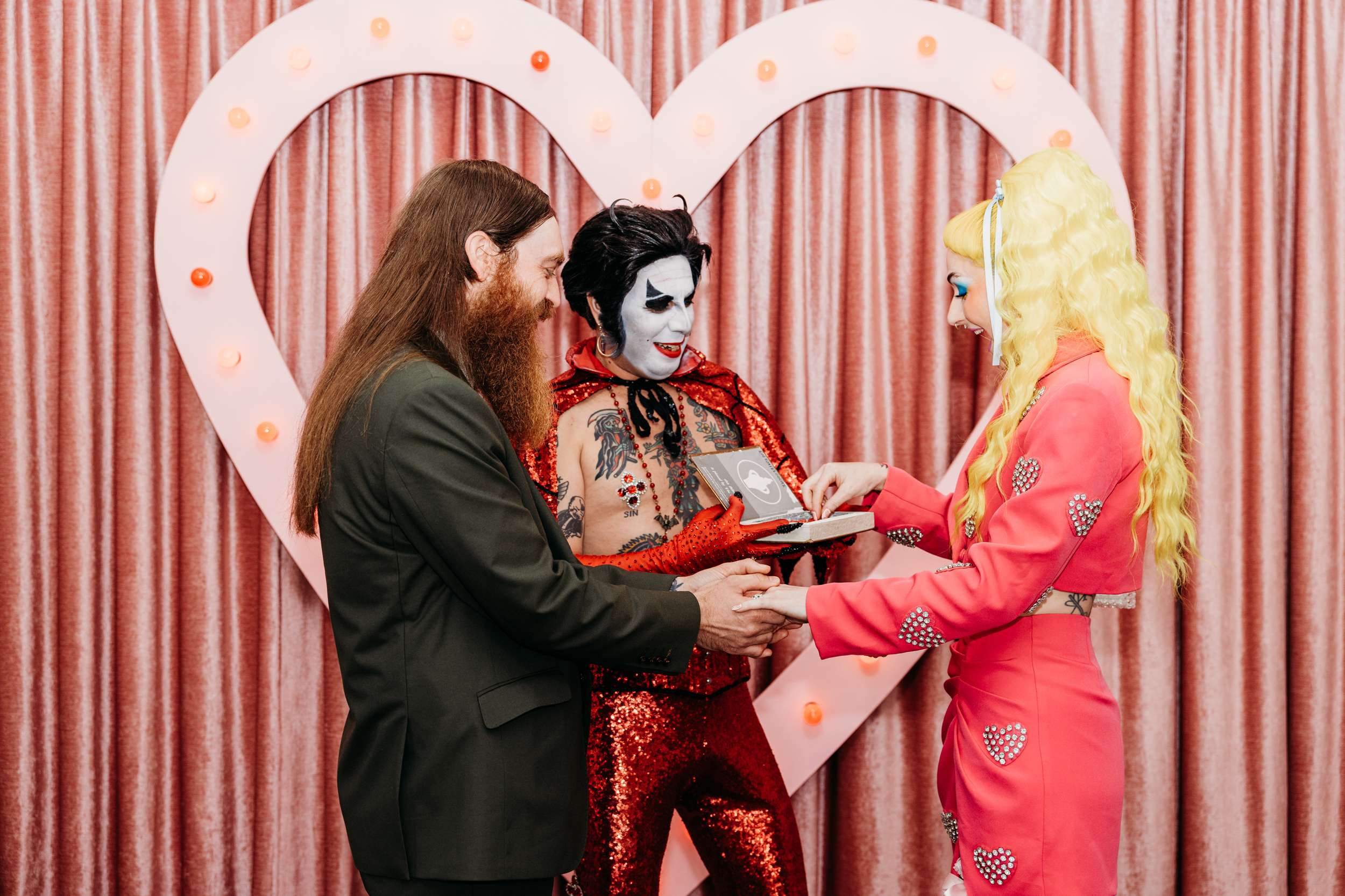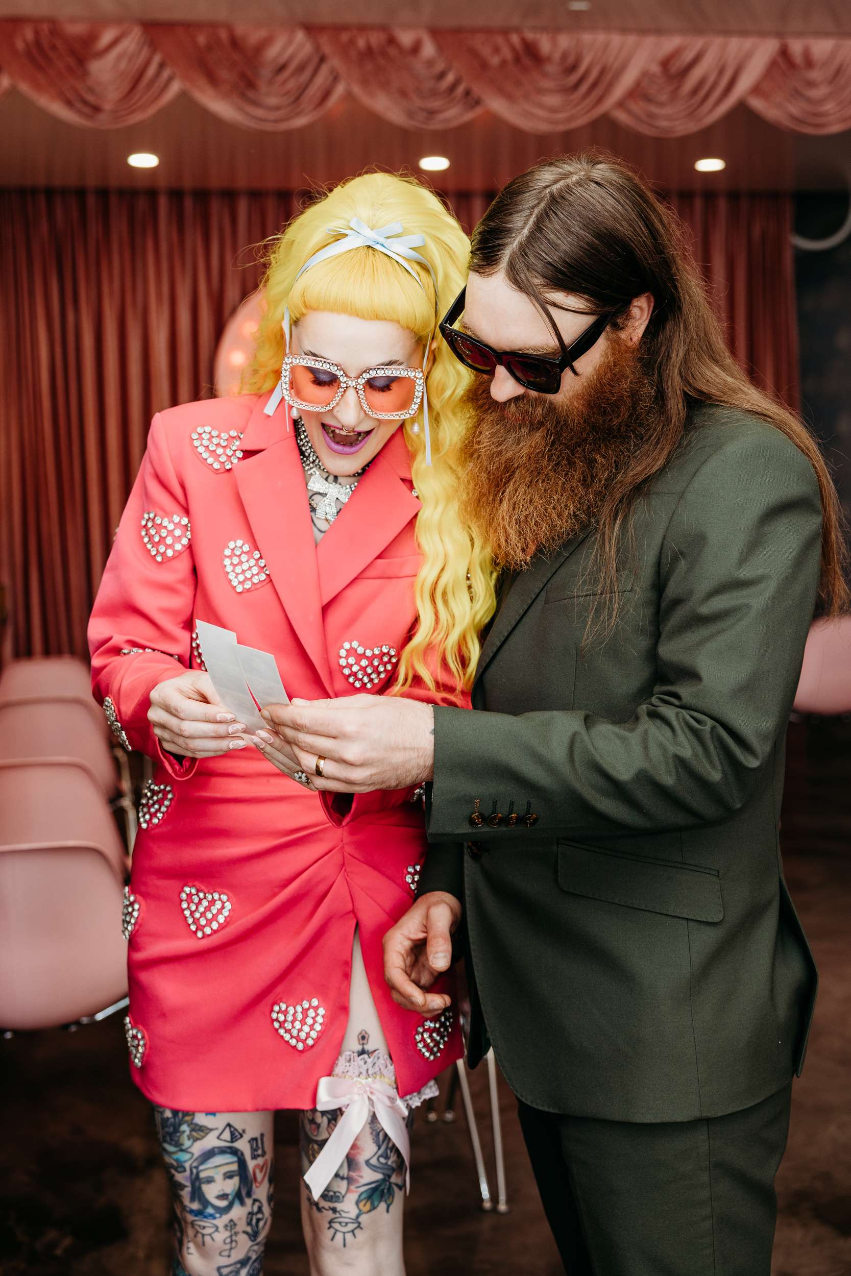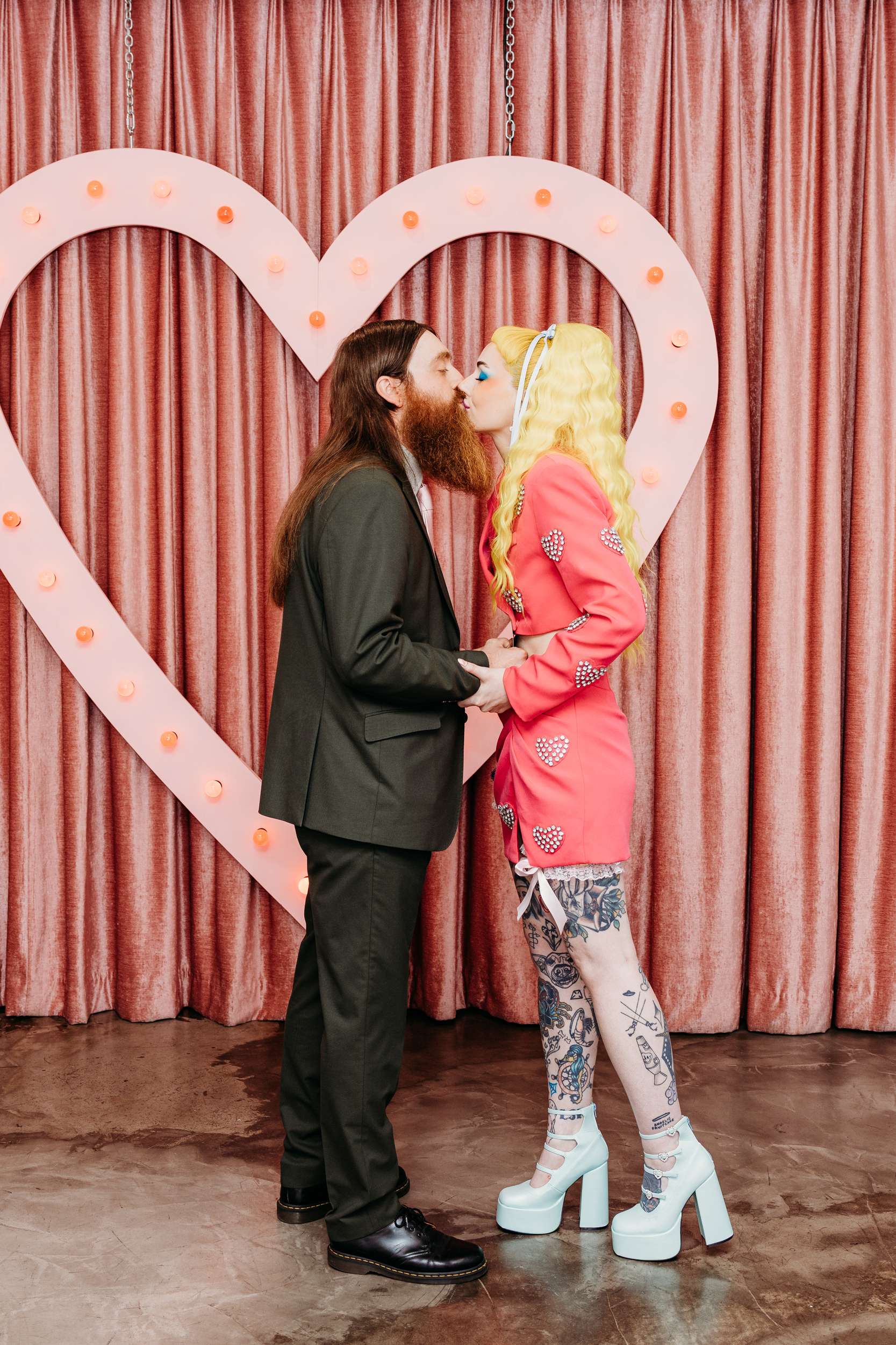 Jess and Glenn met over a decade ago through mutual friends in their city’s music and tattooing scene. A friend set them up, they went on a first date, and by 2016 they were inseparable. Their mutual love of gigs, late nights and creative people shaped how they bonded, so it also shaped how they got married.