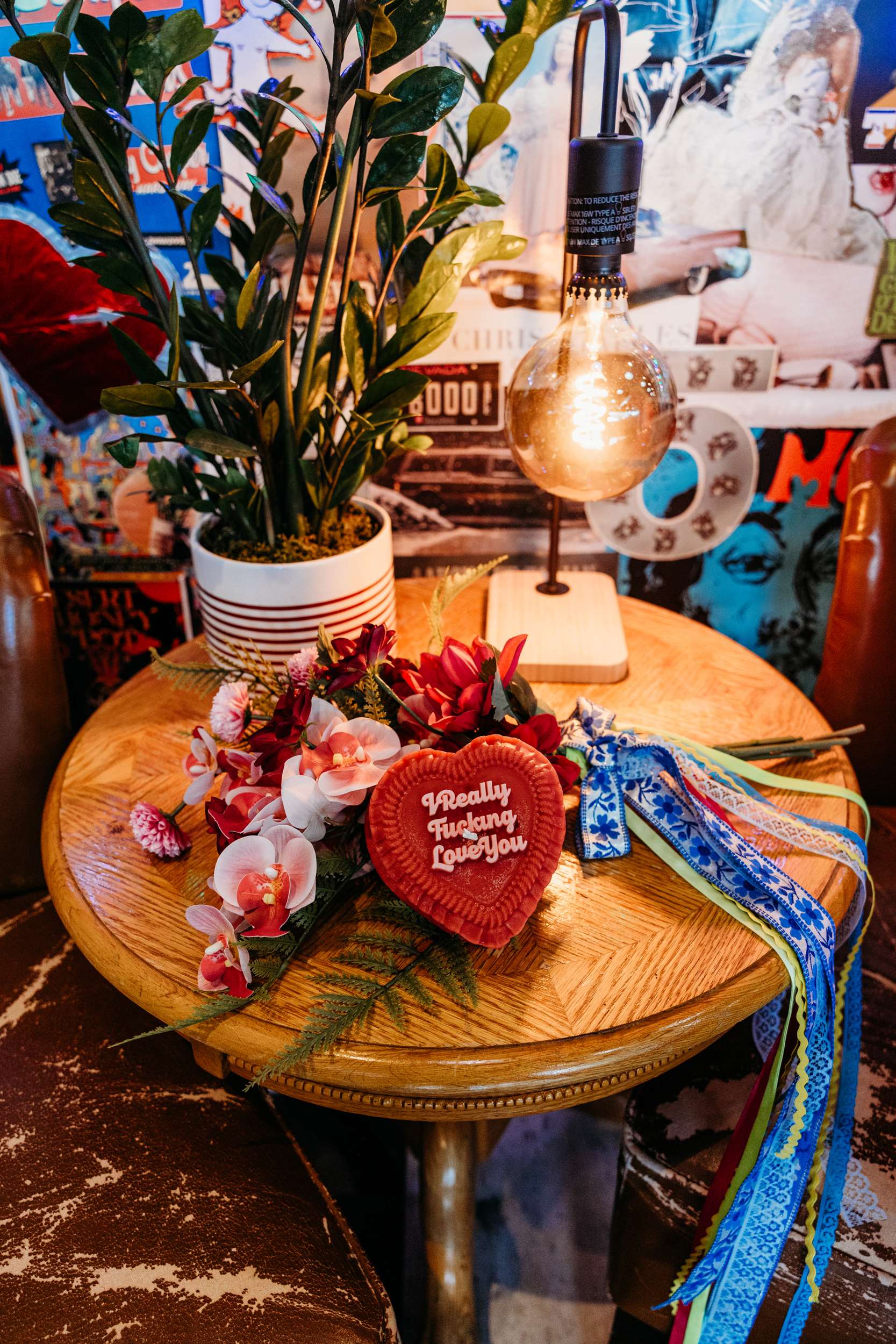 The bride is super colourful in her everyday life so a traditional white dress didn’t feel like the right fit. Although she did buy a few, when she put them on they never felt like the right choice. When she found her suit on Vinted, all the pieces finally fell into place. The only tradition that made the cut was a sixpence in her shoe for good luck, given to her by a woman in a vintage jewellery shop in Newcastle where they bought her engagement ring and Glenn’s wedding band.