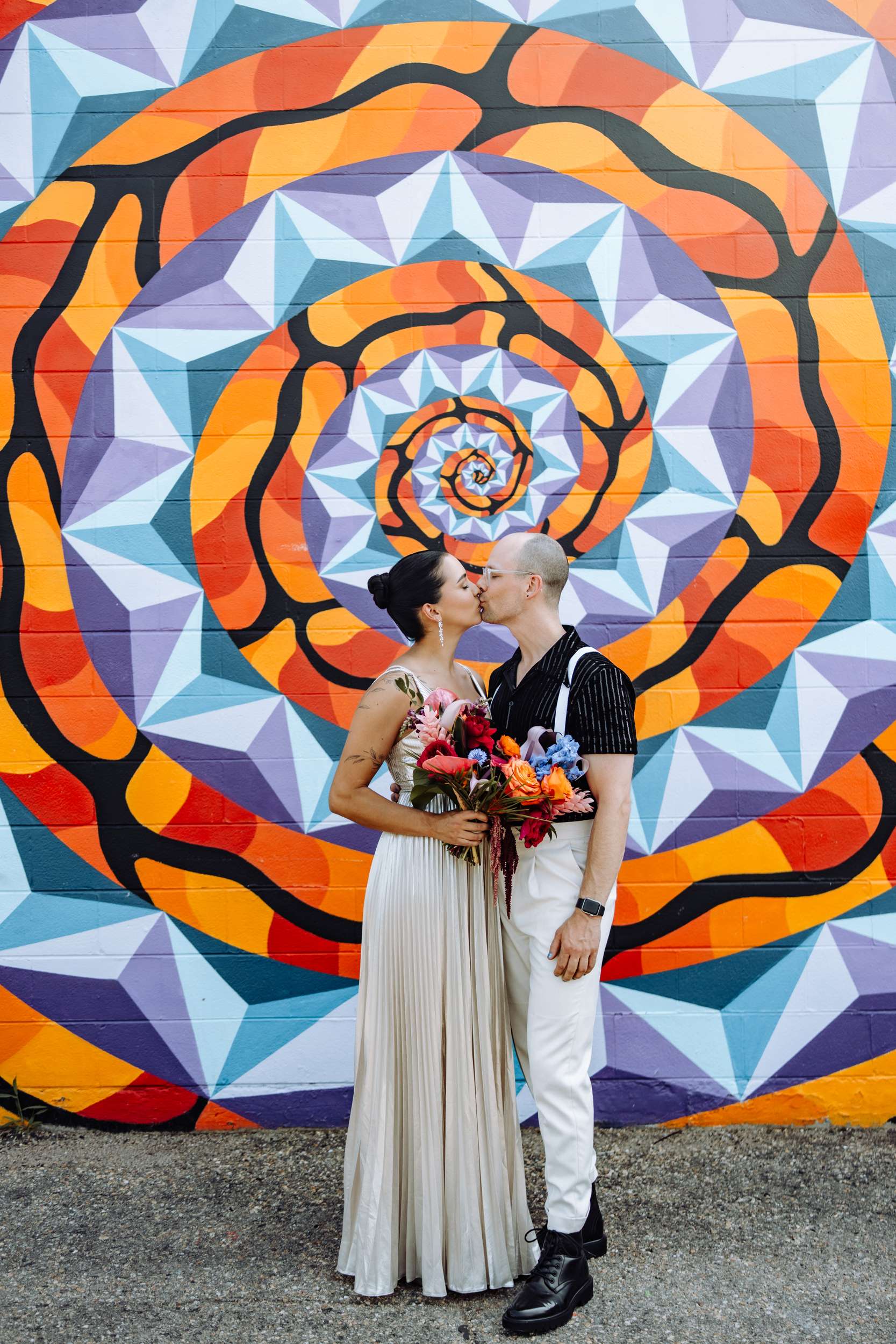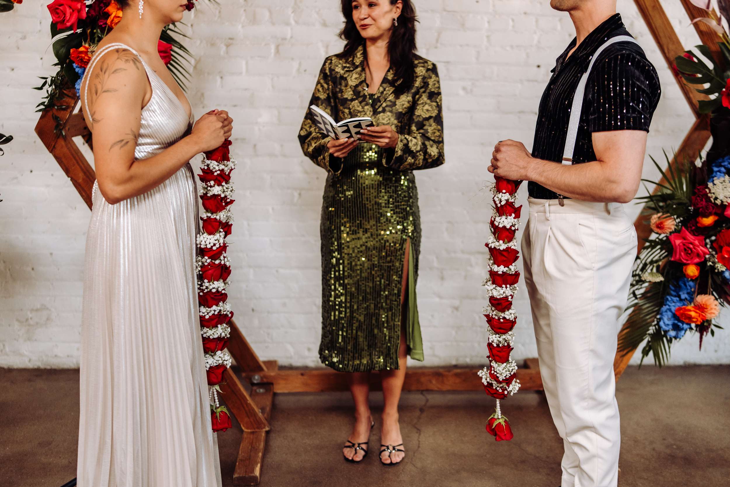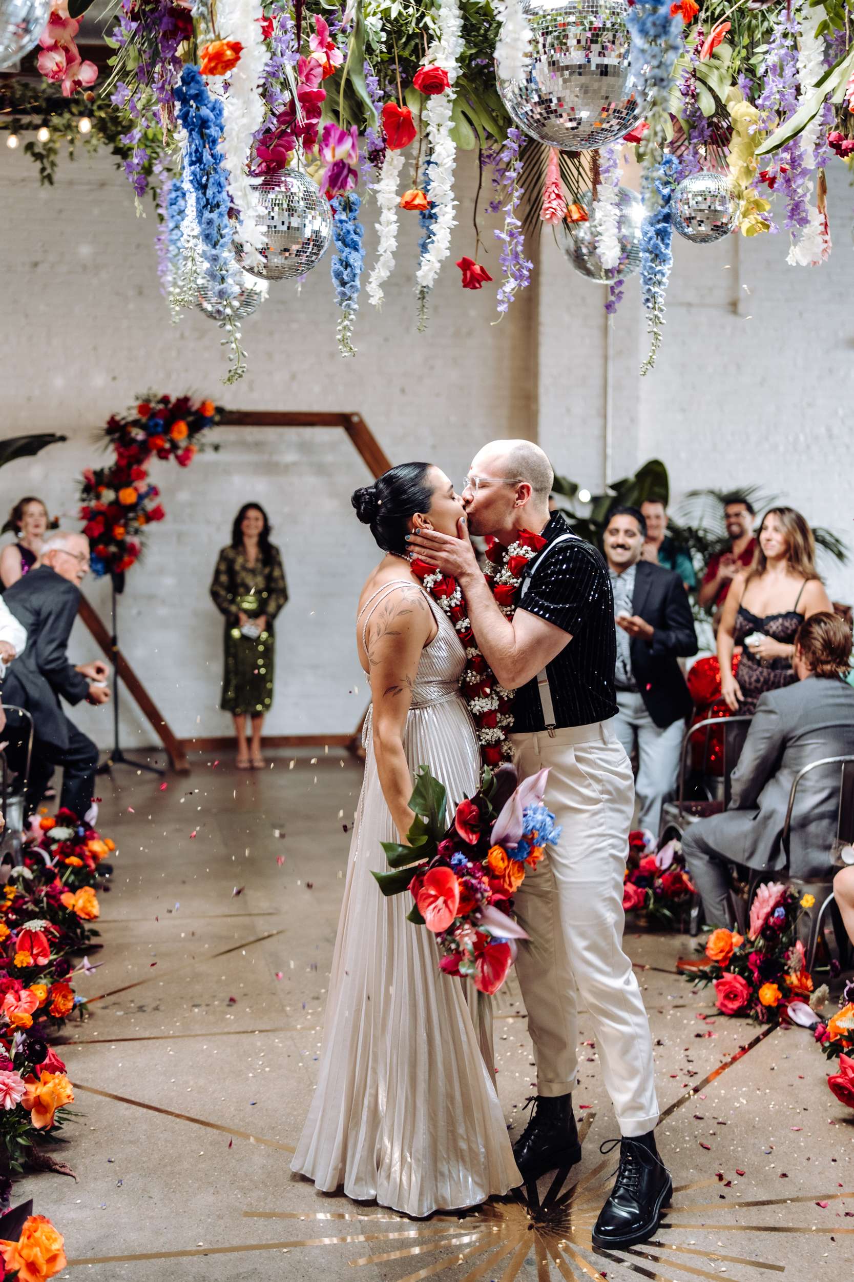 “Once we really thought about it, the creative and imaginative energies started flowing. The start of the planning process was very fun for us, it felt like anything was possible. We knew that if we were going to do this there were a few things that were priorities: 1) we wanted this event to be authentic and true to us 2) we wanted to create a safe emotional space for vulnerability for ourselves and our guests 3) we wanted the reception to be a full on rave.”