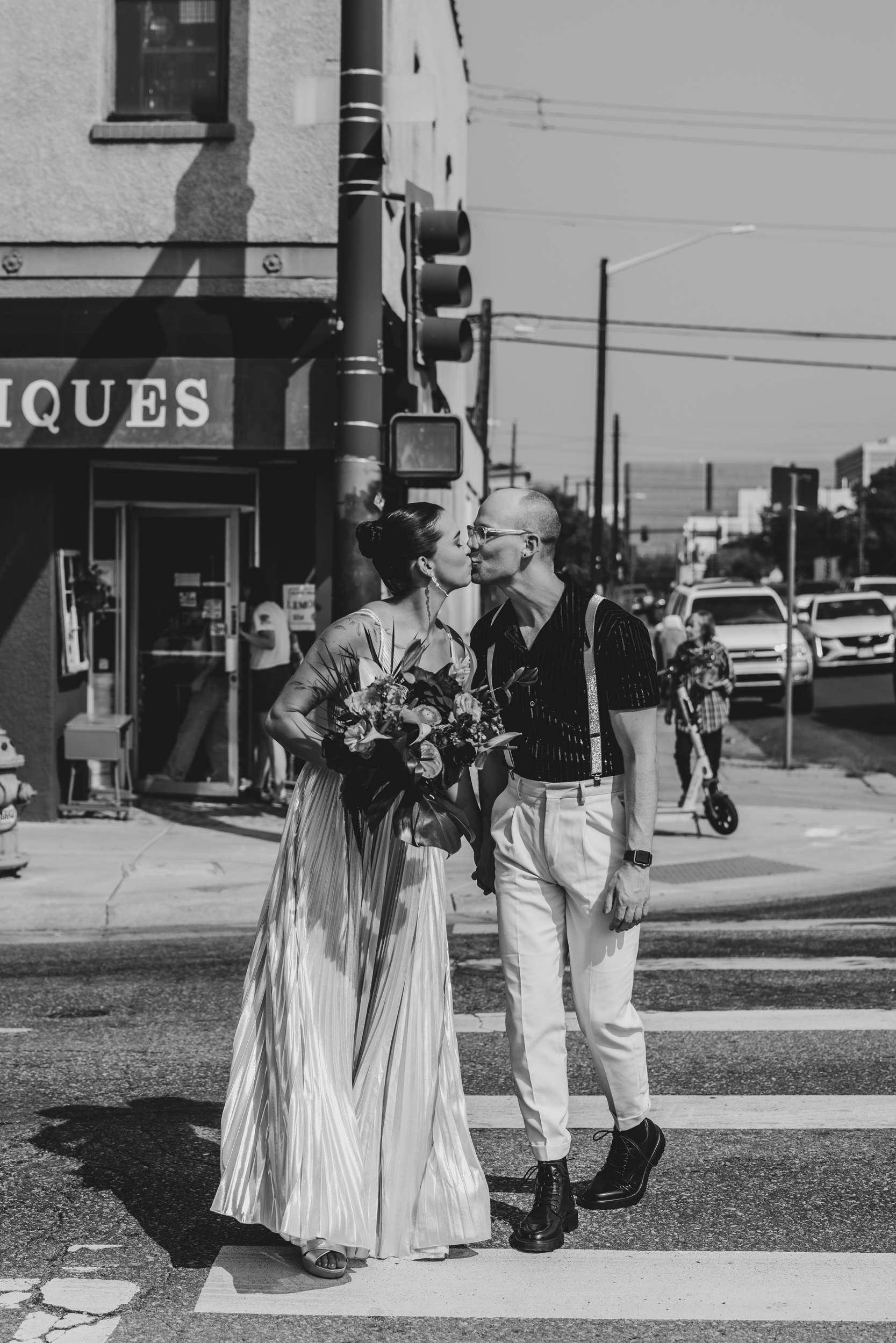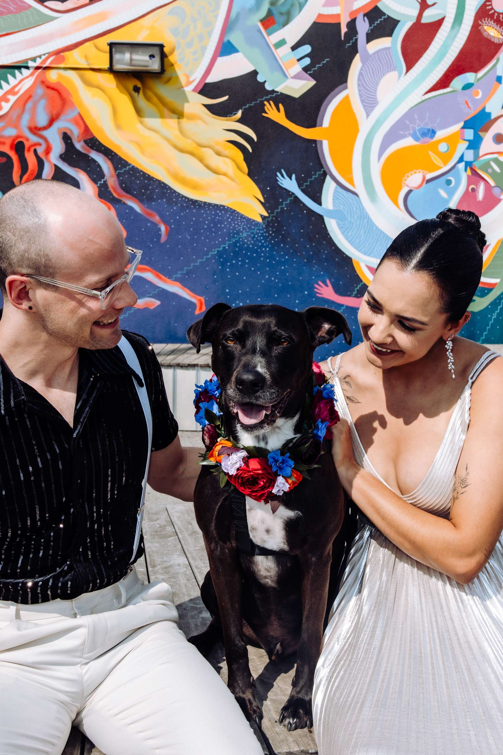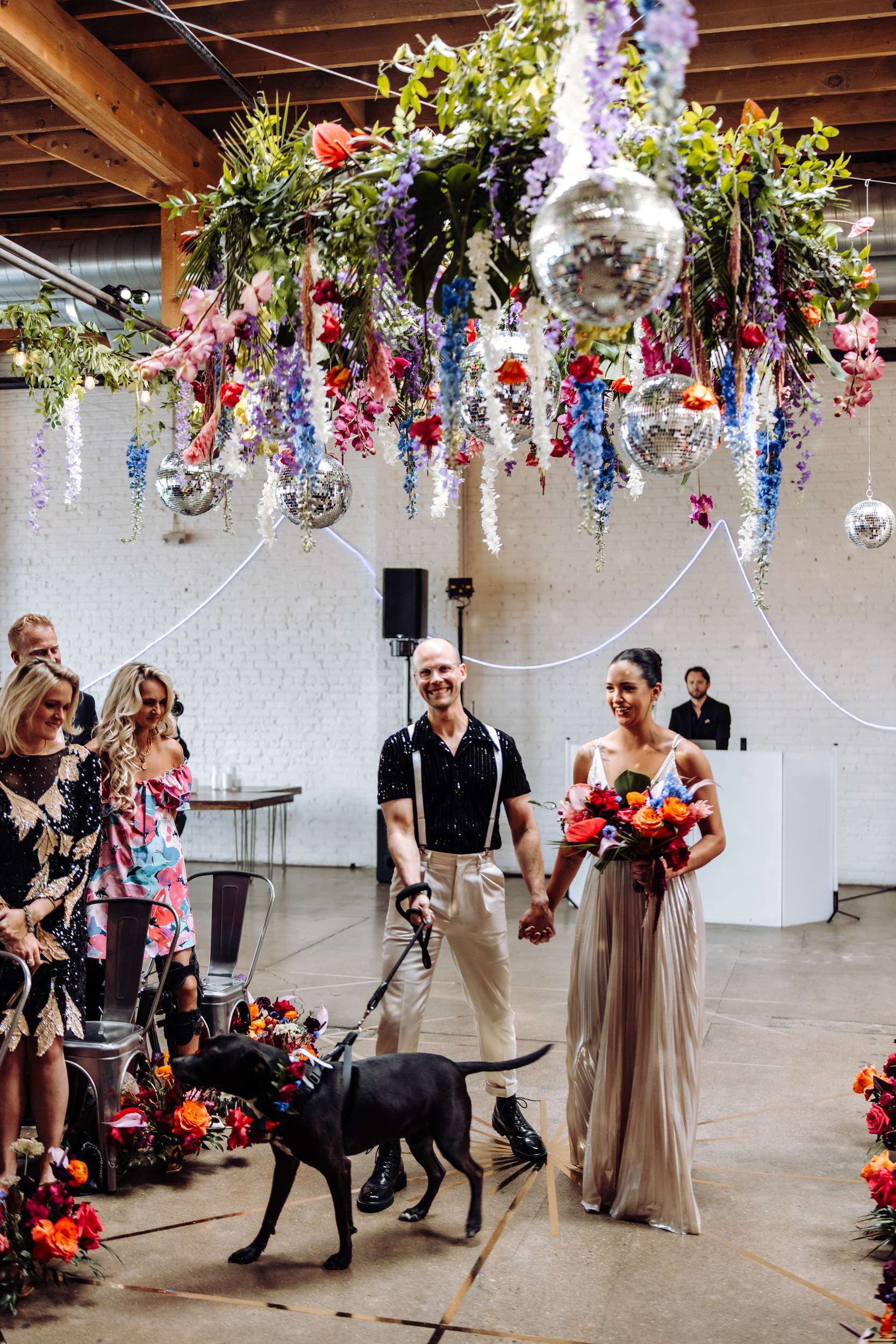 Their ceremony was led by a friend and guests could sit anywhere they liked. The wedding party walked out to This Version of You by Odesza thren Rekha and Mike walked down the aisle together with their nine year old pitbull mix, Gatsby, to A Moment Apart.
