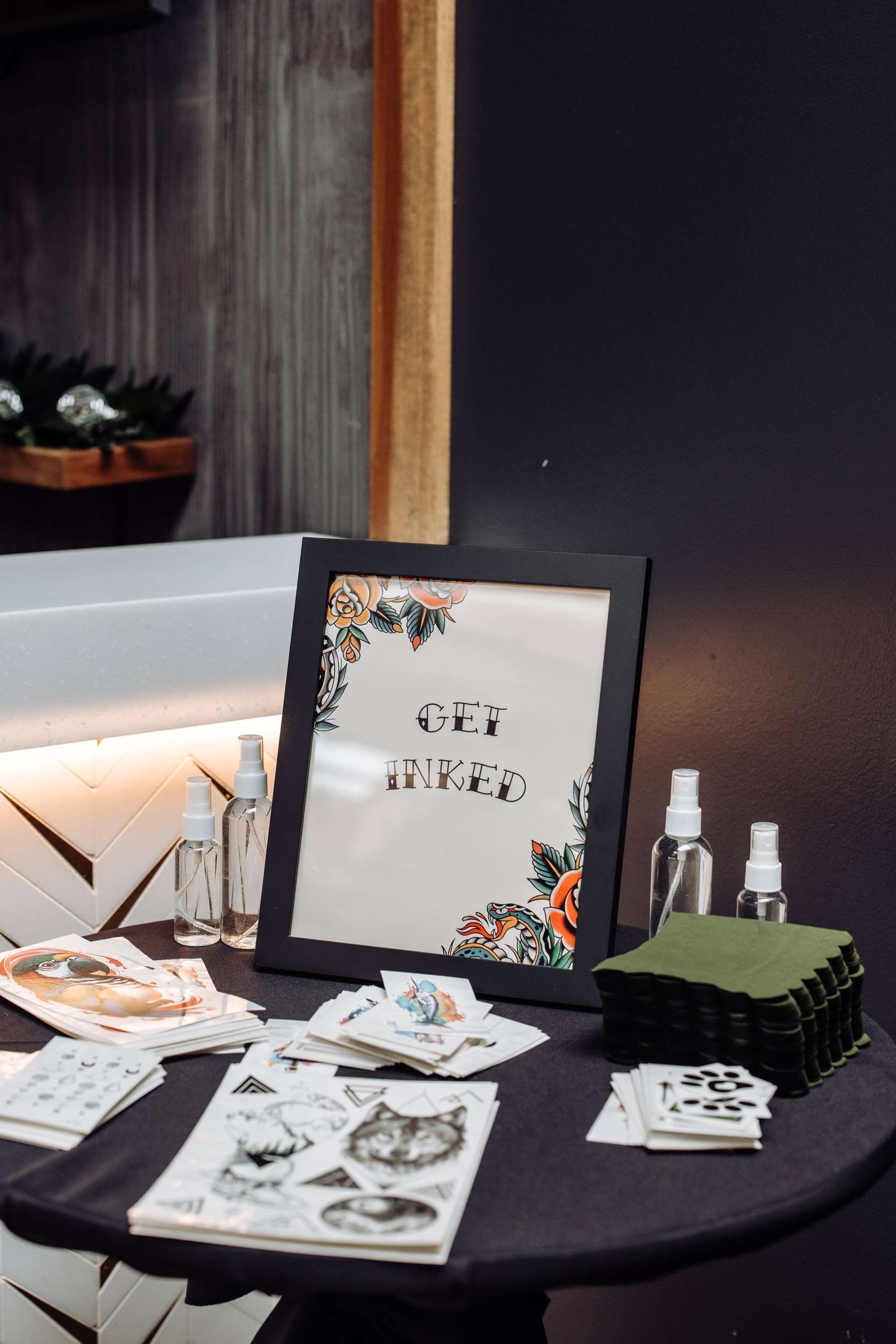 To help shift energy from ceremony to rave, they created stations around the space – a temporary tattoo station, a glam and glow station with body glitter, LED glasses, glow sticks and sprouts.