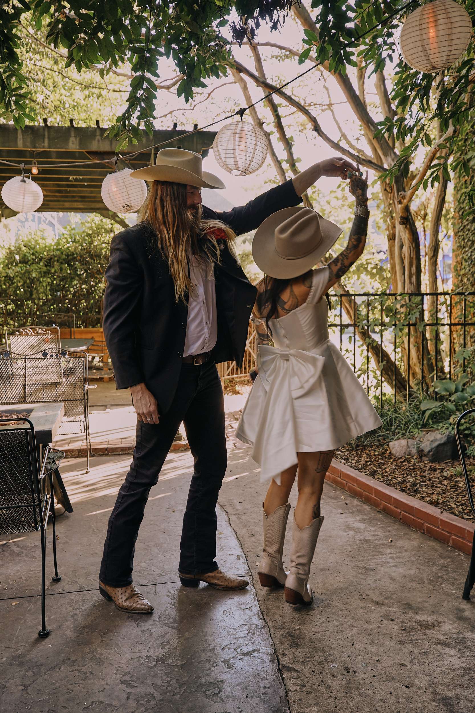 “We didn’t have the traditions of planning a wedding with a full ceremony and guests, we just kept it small, affordable and just what we wanted”, she concluded. “We just wanted it to be for us, and keep it our style and fun! The biggest cost was my flights to Nashville but everything else was very affordable. Our photographer was a friend, Casey’s outfit was all thrifted and mine came to less than £400 total! Our advice to others would just be to do it your way, and don’t worry about other people’s expectations or opinions. It’s your day! You don’t need to spend thousands to have an amazing wedding.”
