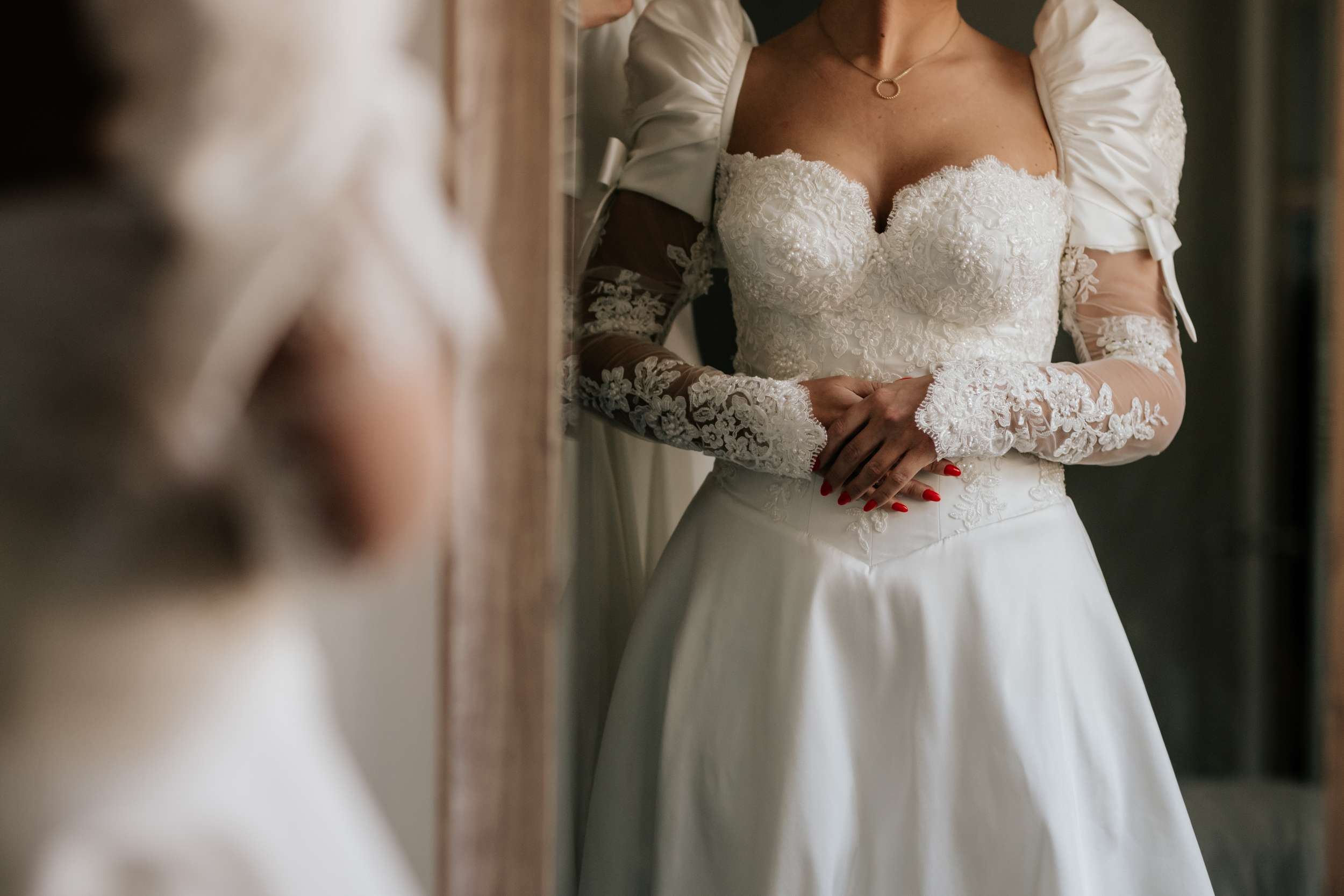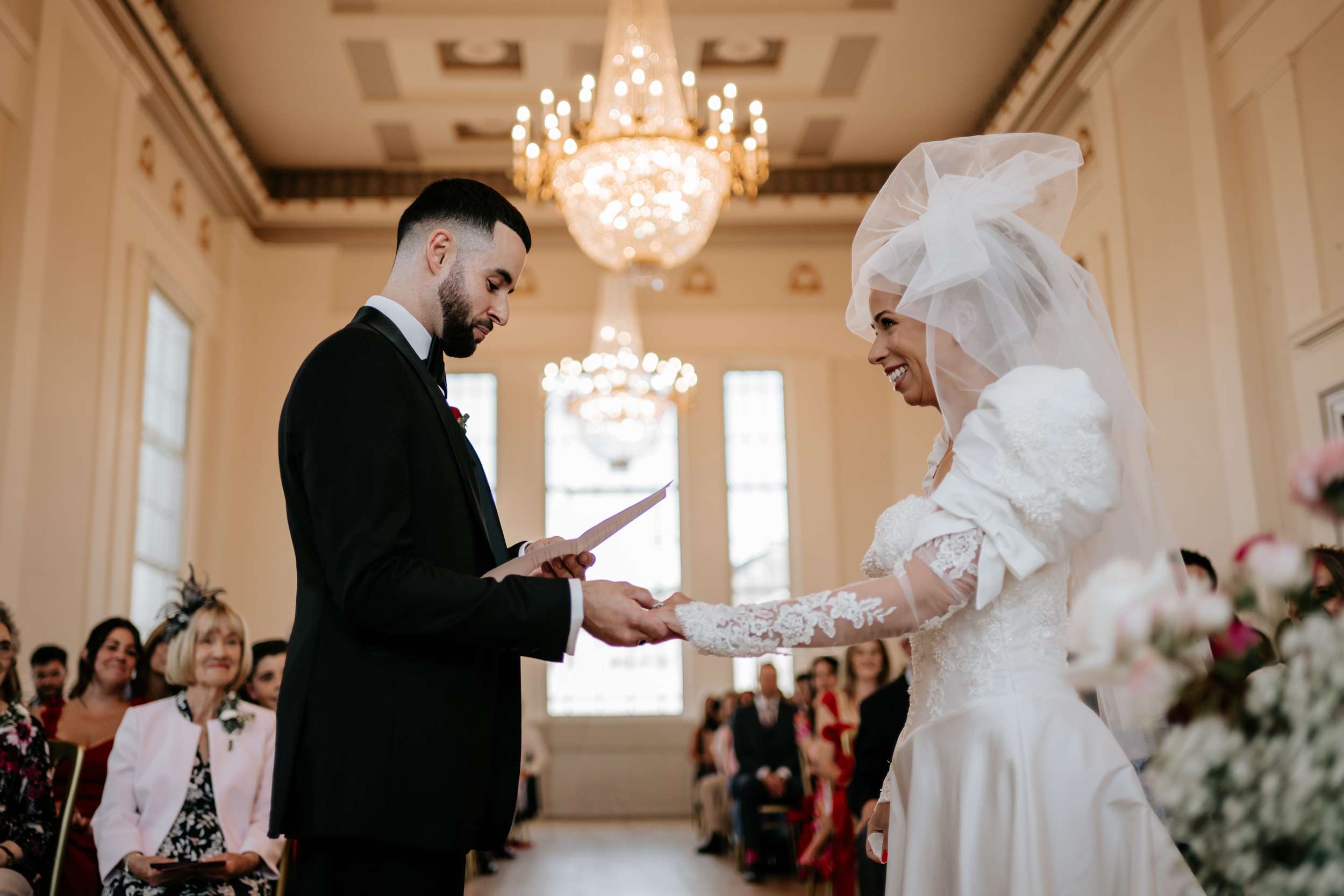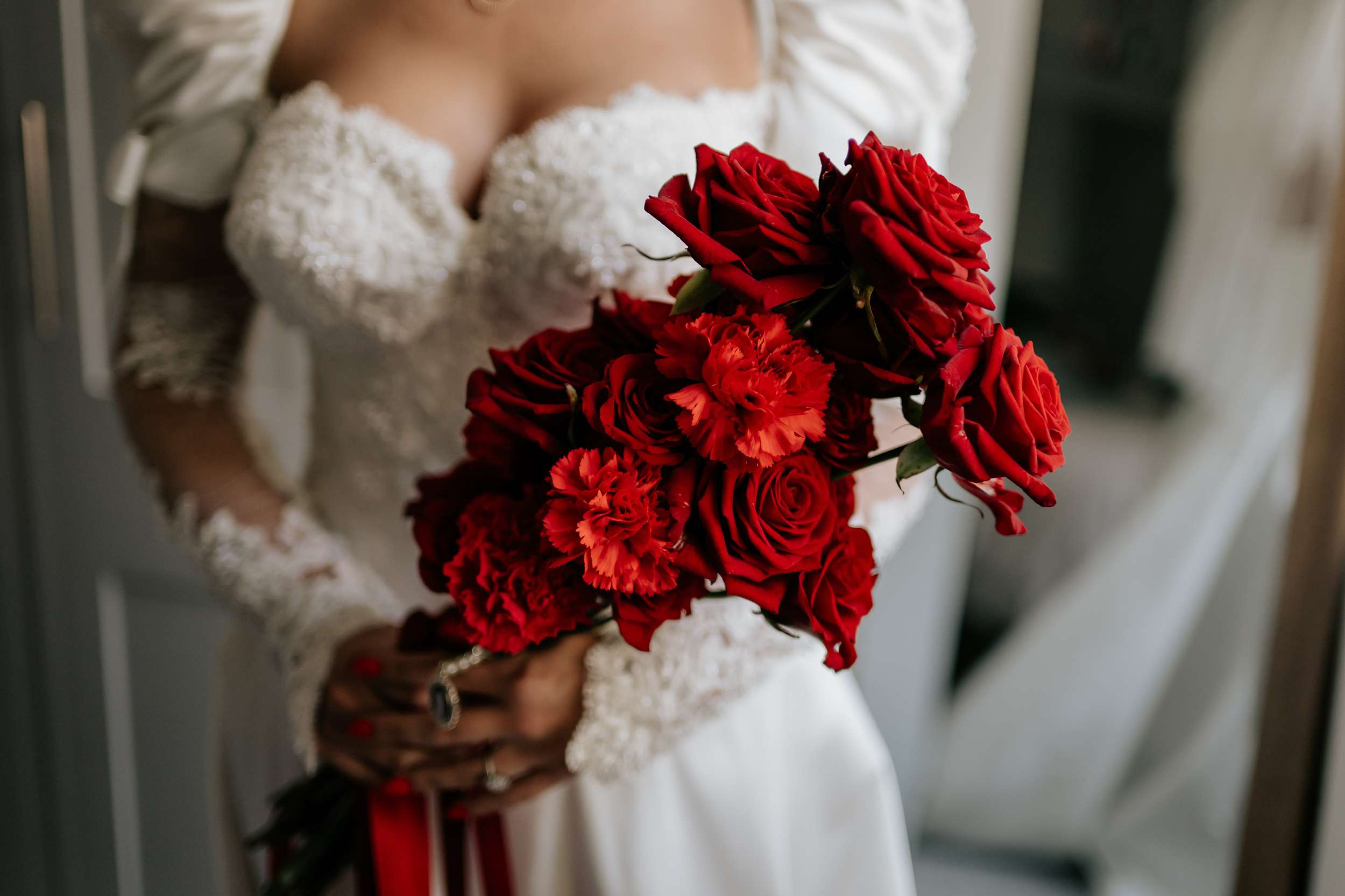 “Our inspiration was Guns ‘n’ Roses’ November Rain video, with the drama of Meatloaf’s I Would Do Anything For Love and Celine Dion’s It’s All Coming Back To Me!” Chloe explained. “A blend of classy 80s (we didn’t want it to look fancy dress!) and the 80s-does-the-50s style. We had lots of ribbons and bows, vintage cake, reds and pinks. My inspiration for the day started with the dress itself, which I always knew I wanted. I worked everything else around the dress, which proved difficult at times as Harry didn’t know what I was going to wear!” The dress was bespoke, made by Lisa Lyons, and designed specifically for Chloe’s body and brief.