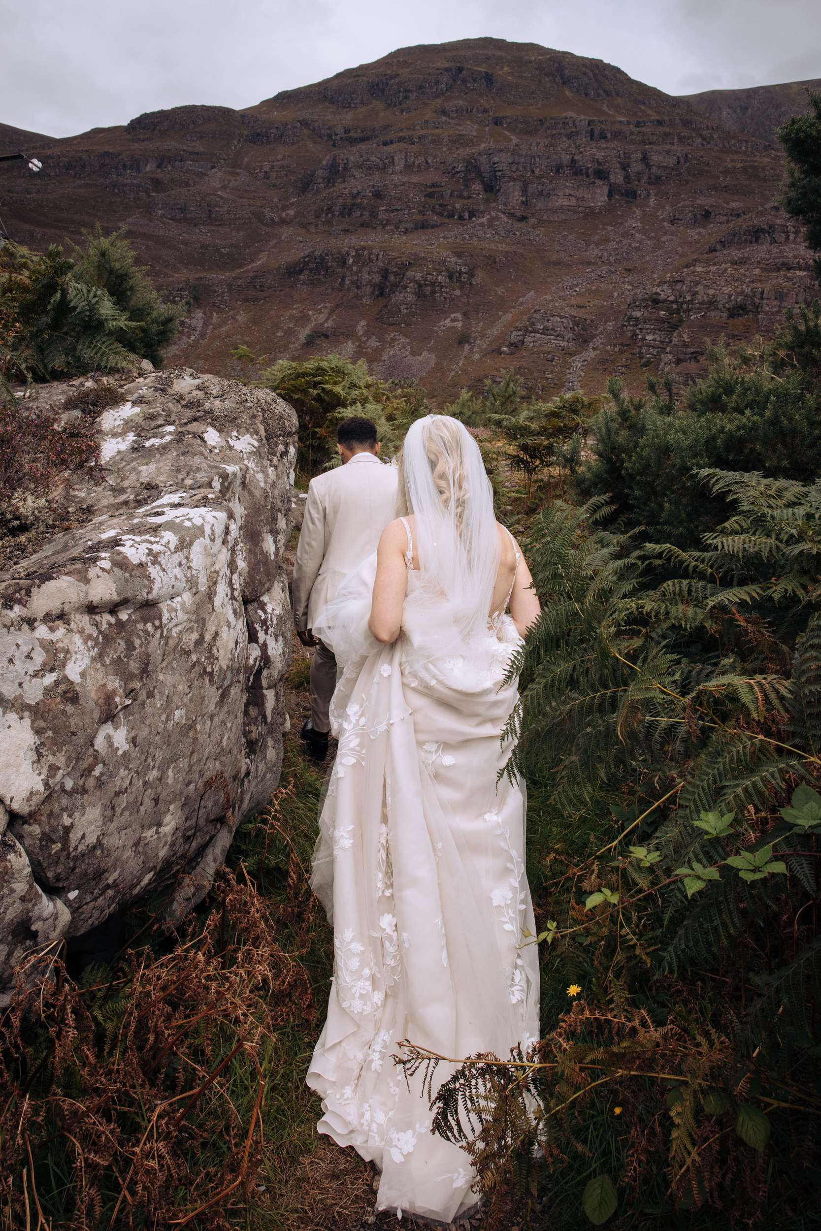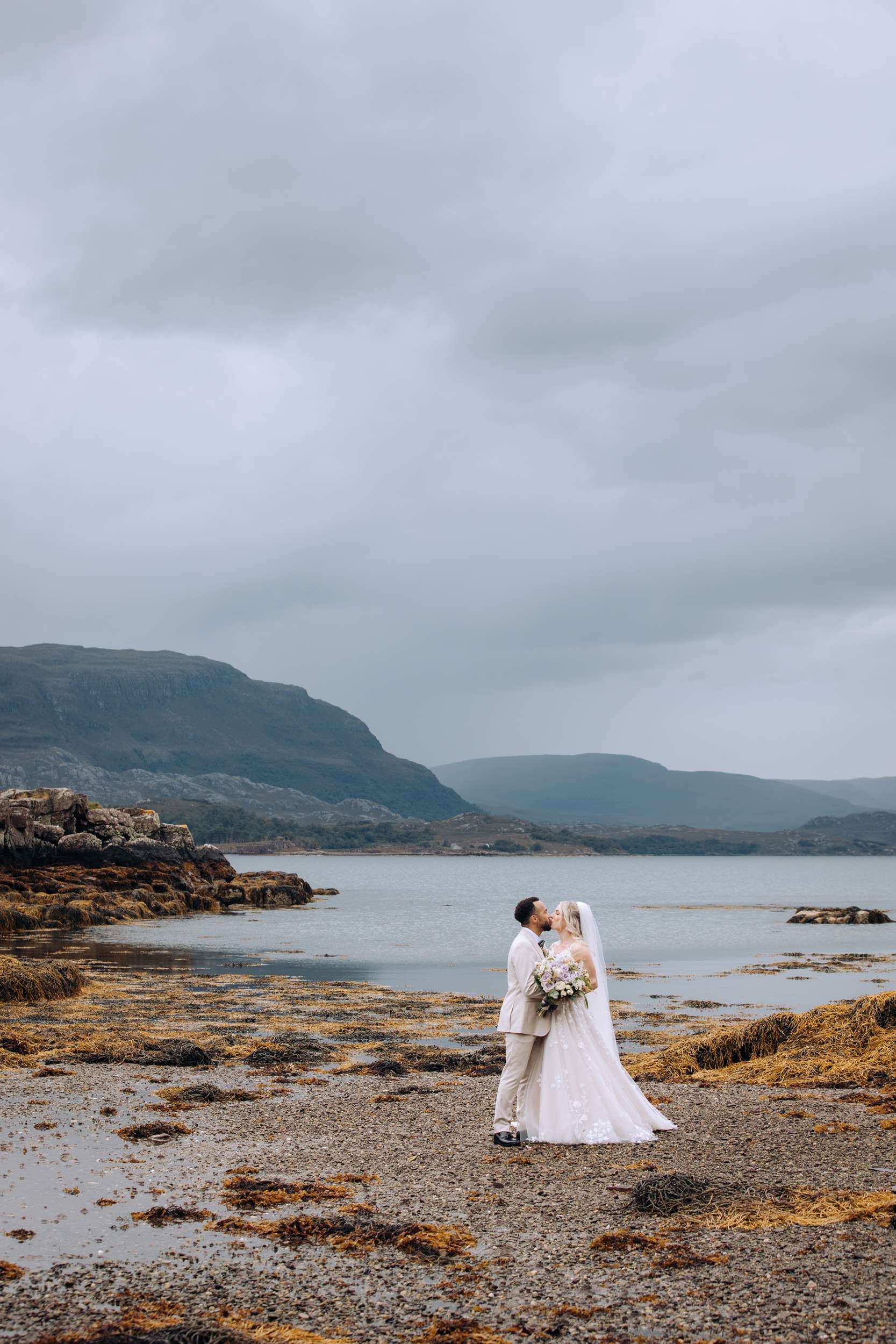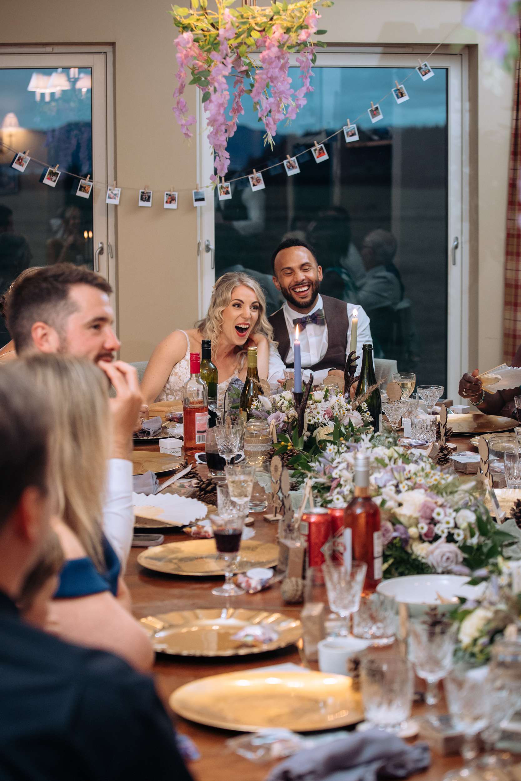 The ceremony took place at Am Ploc Open Air Historical Church in Torridon, with the reception held later at their lodge in Strathcarron. “A musical duo played while our guests arrived,” the bride told us. “My dad walked me down the aisle to Malibu by Mumford and Sons. Our ceremony was celebrant-led by the brilliant Halde Pottinger, who made everyone laugh and cry tears of happiness as he retold our very own love story. The whole ceremony was special as we were overlooking the landscape while making the commitment to each other in front of our closest family and friends.”