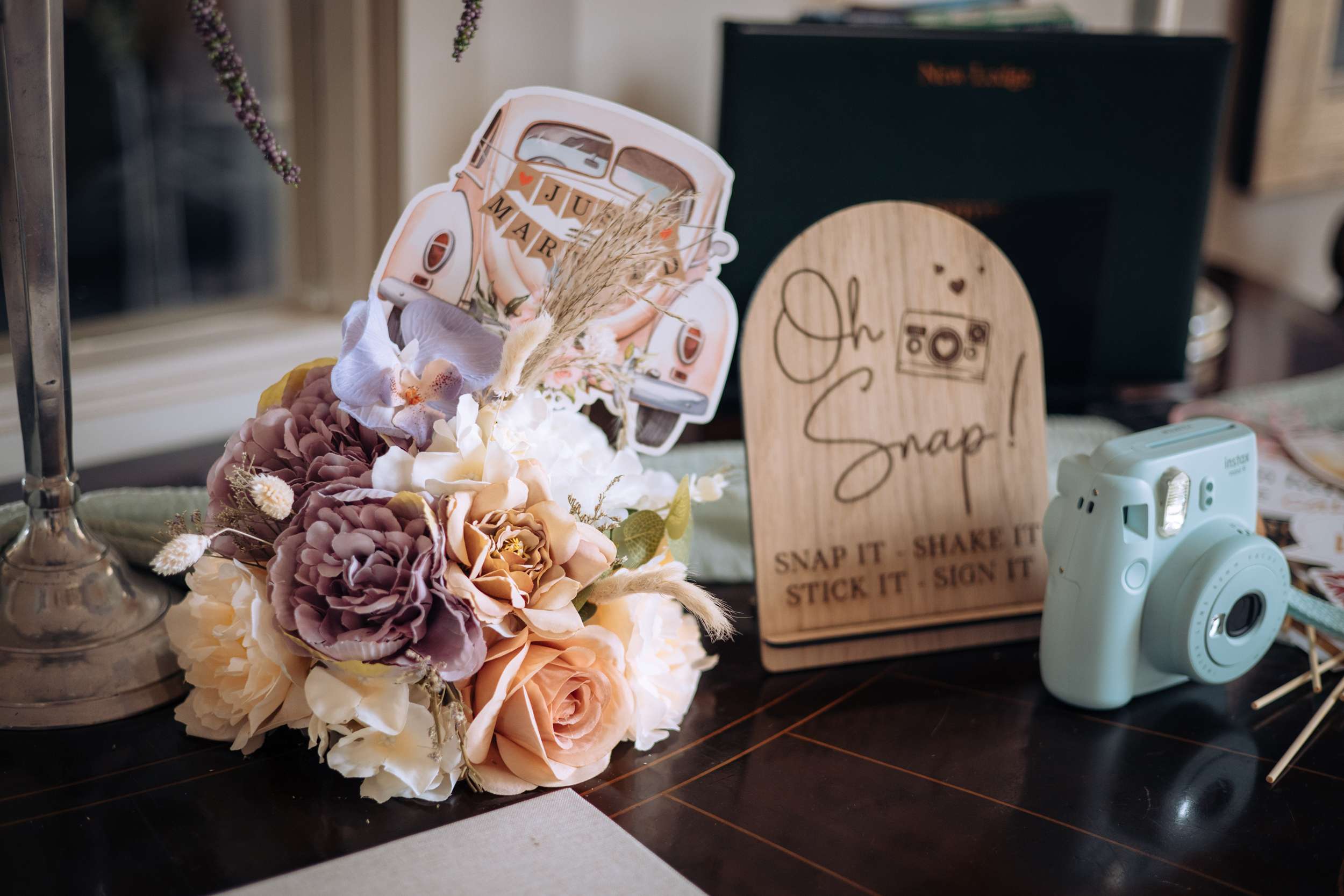 There was no formal entertainment schedule. One of Cloe’s bridesmaids brought her PA system, sang a few songs, then handed over to a playlist. Alongside dancing, the barn offered snooker, darts, table football and ping pong. An Instax mini camera was passed around, with prints added straight into the guest book.