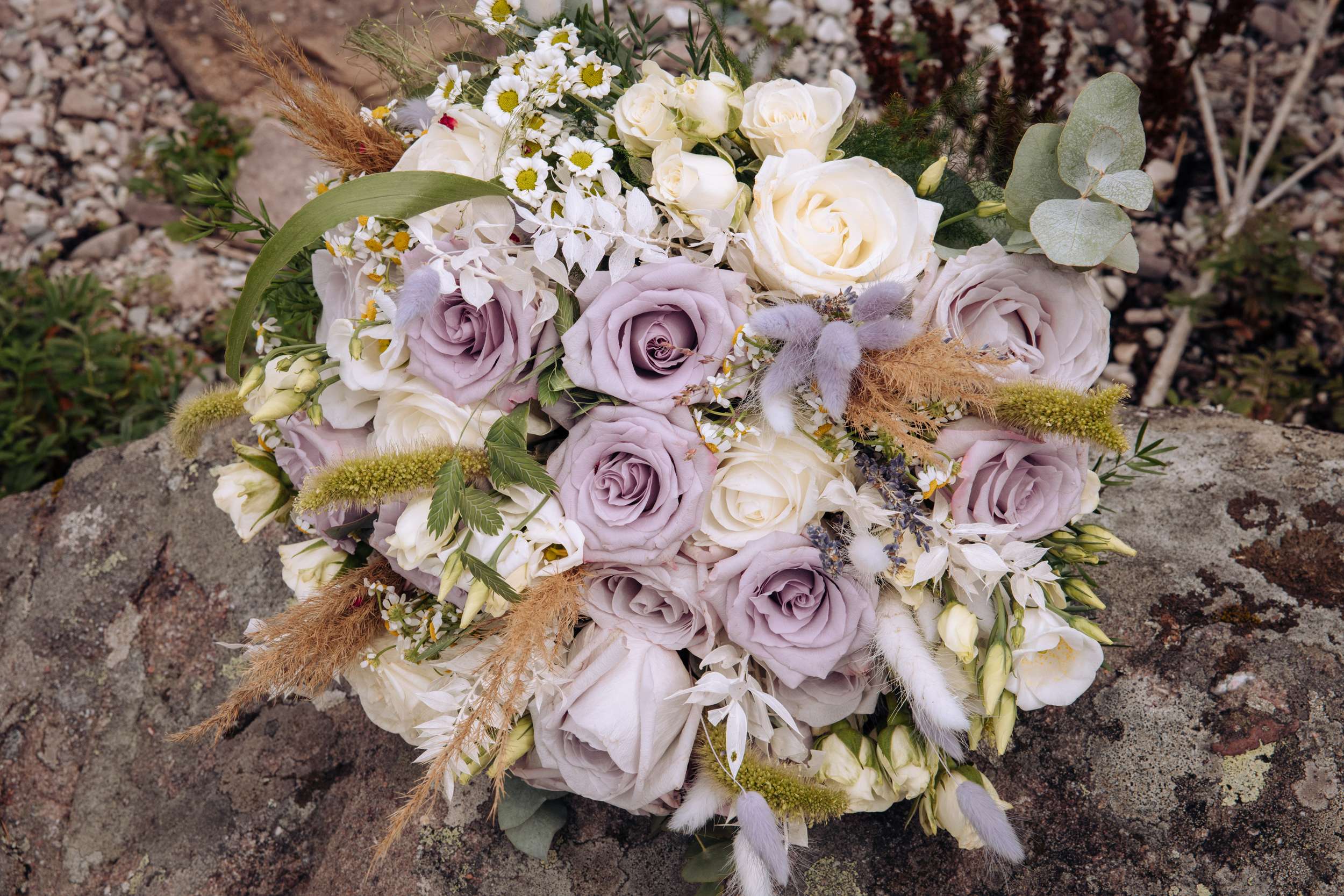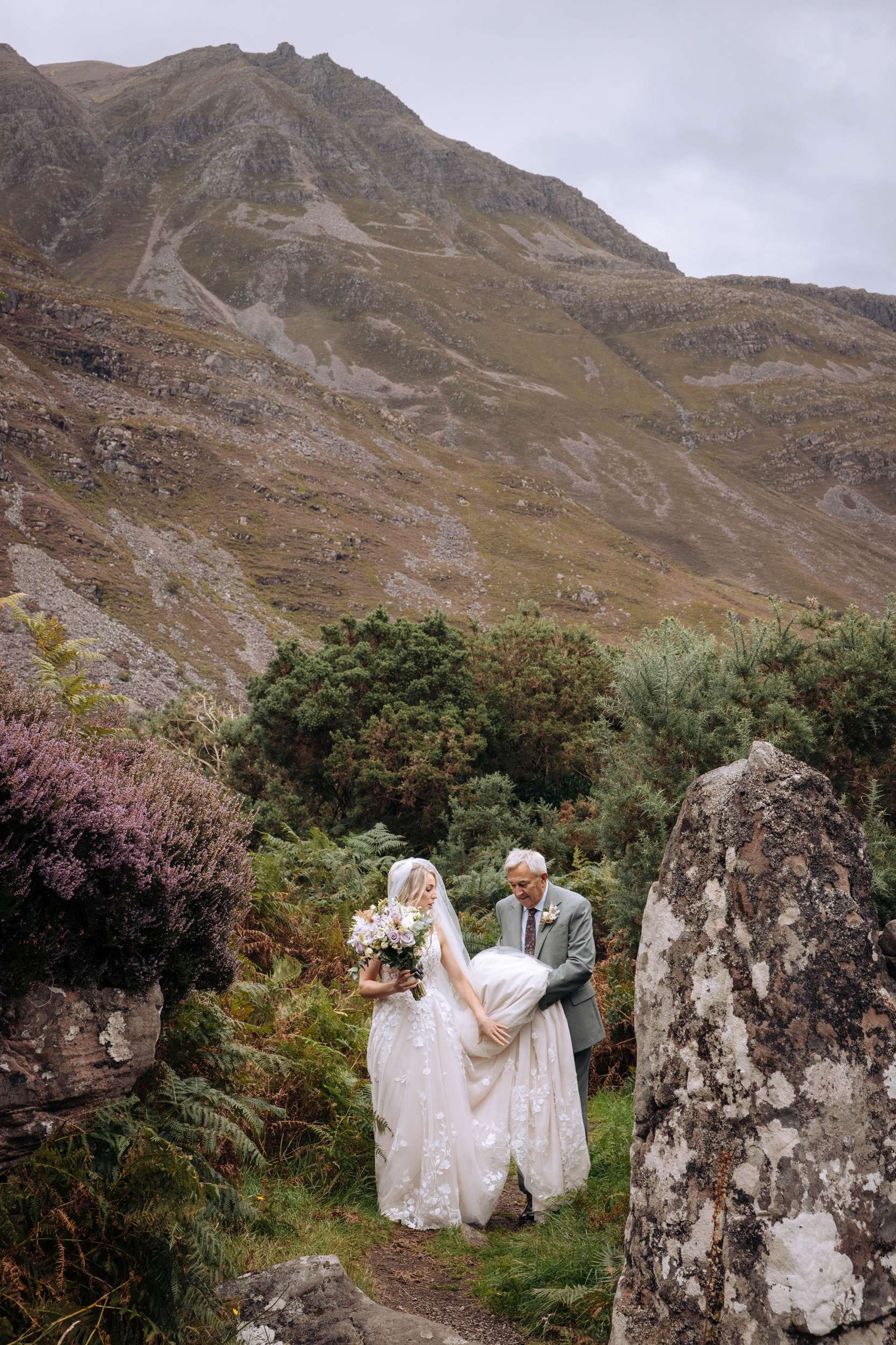 Cloe and Gareth kept things intentionally low-key for their Scottish Highlands wedding. They married with just sixteen guests, all staying together in a large lodge, sharing meals, views and the pace of a few slow days away. The setting did most of the work, so their brief was simple: natural tones, hints of lilac and light sage, and nothing that competed with the landscape.