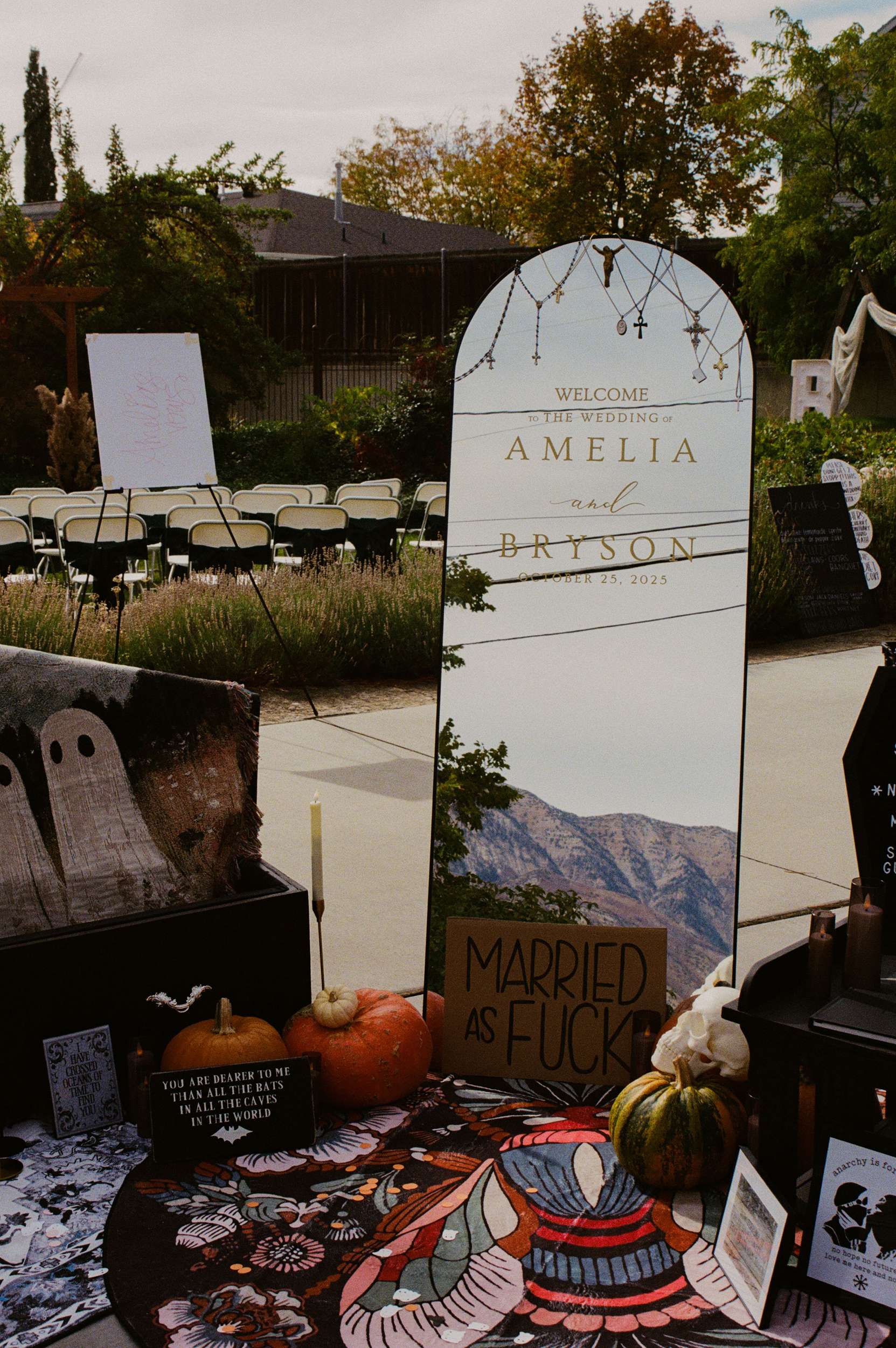 The hardest part of planning? Not caving to other people’s expectations. “We are already an openly alternative couple with decently Mormon families, and feel the need to tone it down to make others comfortable sometimes,” Amelia admitted. “It was so important for me to remember that this truly needed to be a reflection of us, and not to worry what other people think. It all worked out in the end, even if my mum was worried about me getting tattoo ink on my dress before the ceremony! I definitely worried about judgement initially before realising this was actually my chance to be wholeheartedly selfish.”
