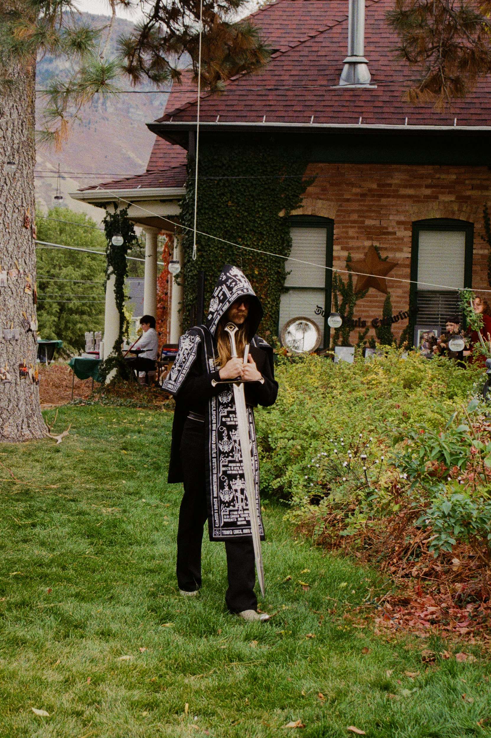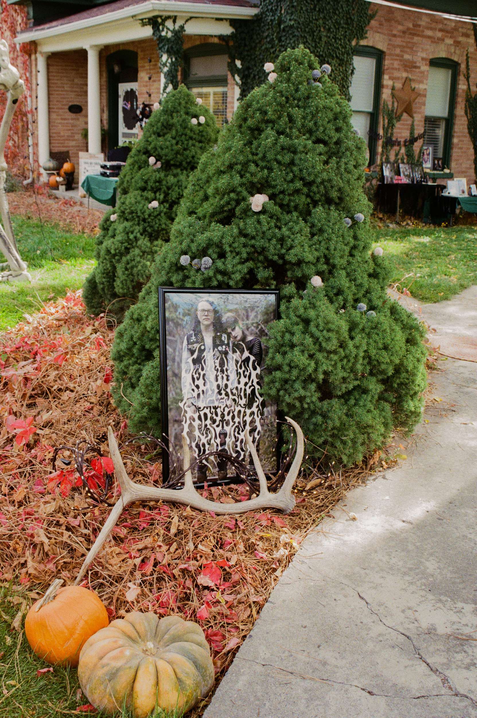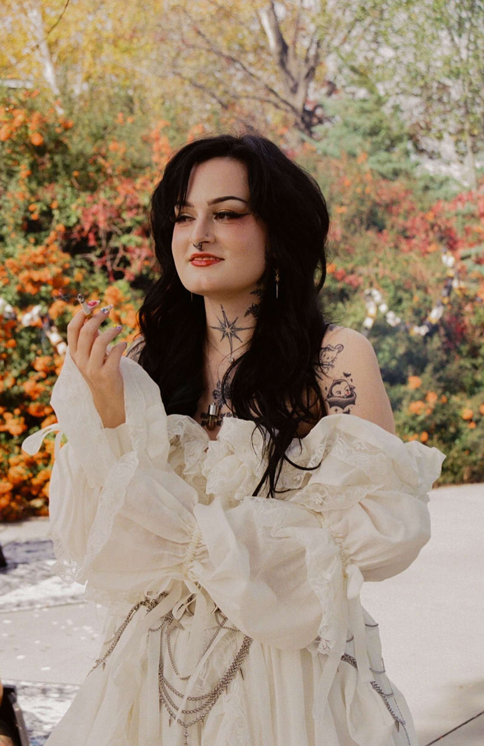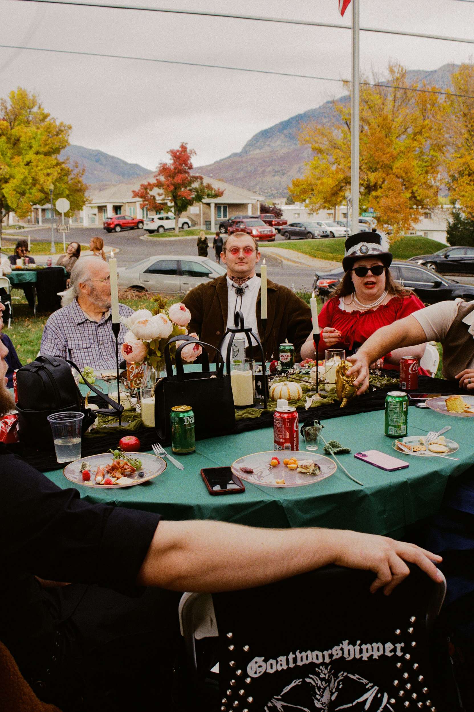 Amelia wore a Selkie dress with a custom cathedral-style chainmail belt, creepers, floral details and embroidered shoes. Bryson wore a handmade leather biker jacket, studded, patched and embroidered by hand, finished with Demonia creepers. The looks felt lived-in and personal, not styled for anyone else’s approval.