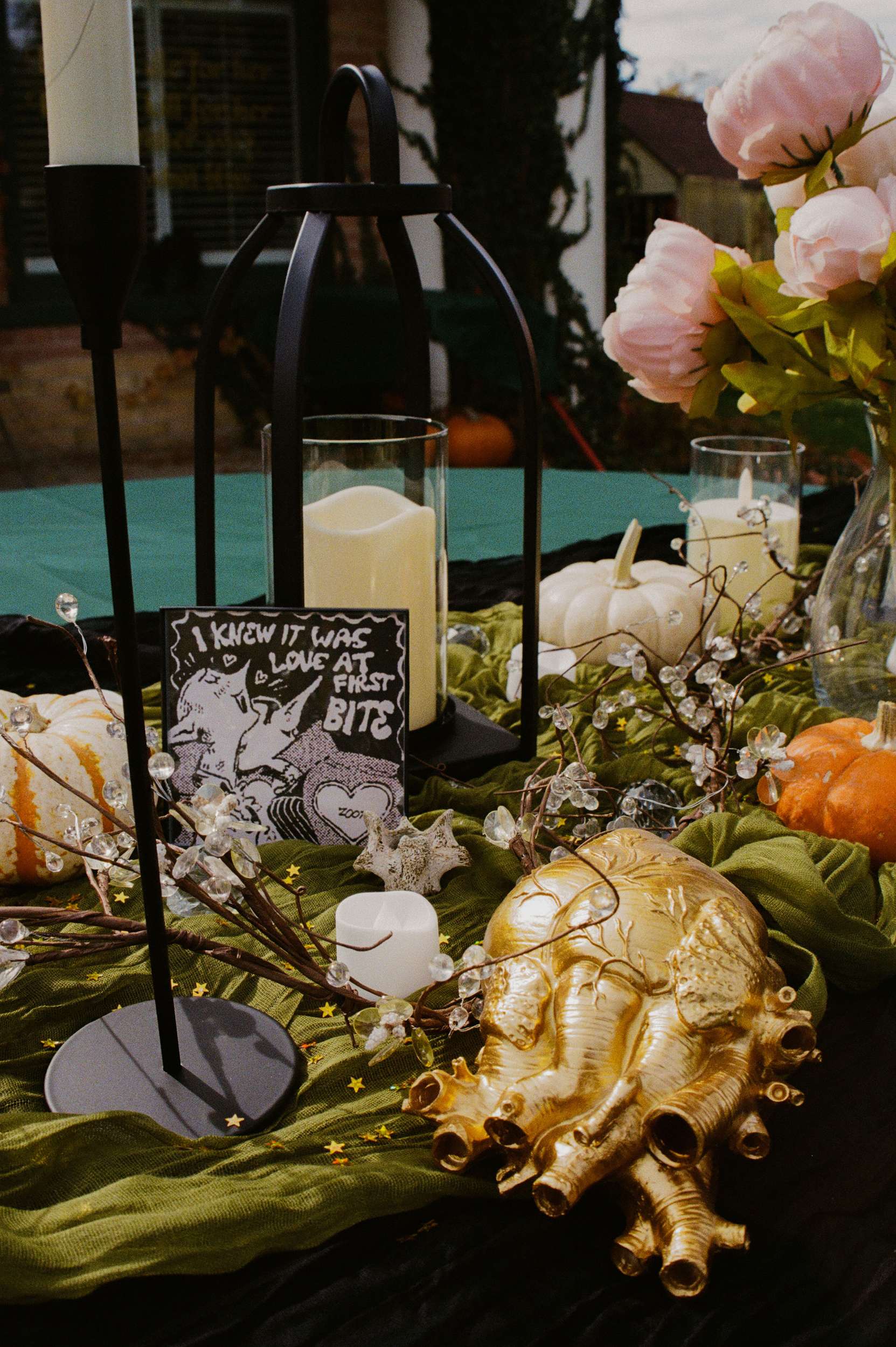 They also incorporated their love of punk, metal, and goth music by utilising lots of lyrics from their favourite bands, a handcrafted playlist, and an electric guitar guestbook. If they’d had more to spend, they would ahve loved a live punk band!
