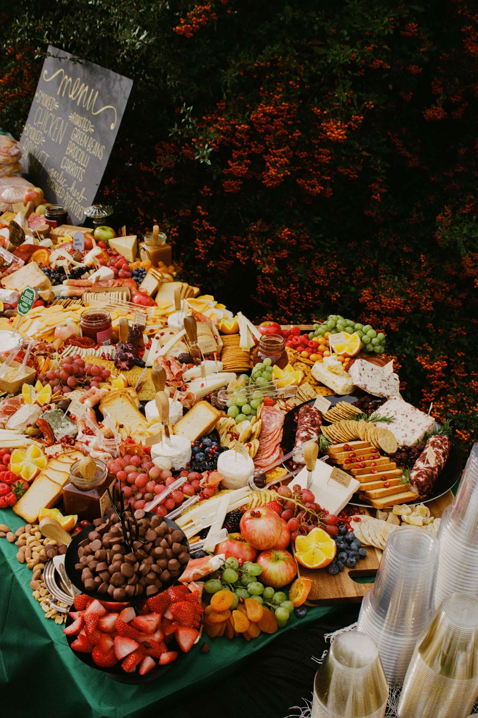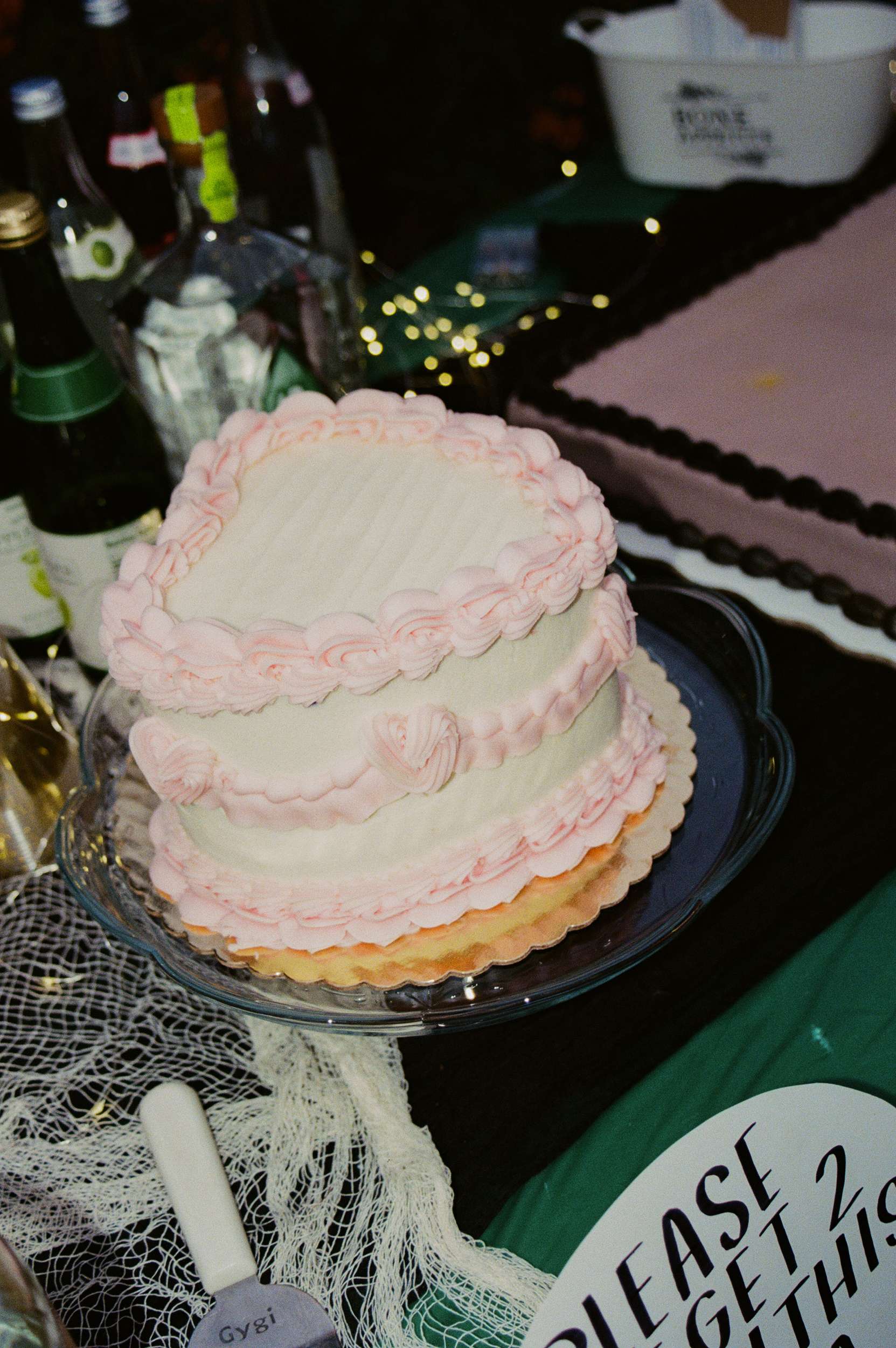 Décor, food and drink stayed close to home. The cake came from a local bakery, flowers from a local florist, and catering was handled by Amelia’s brother. The meal was smoked meats and an oversized charcuterie board. There was an open bar, plus a silver platter stacked with their favourite cigarettes.