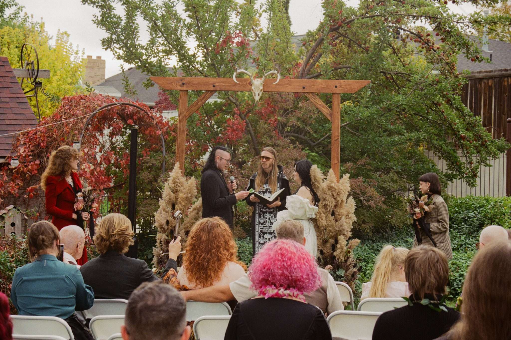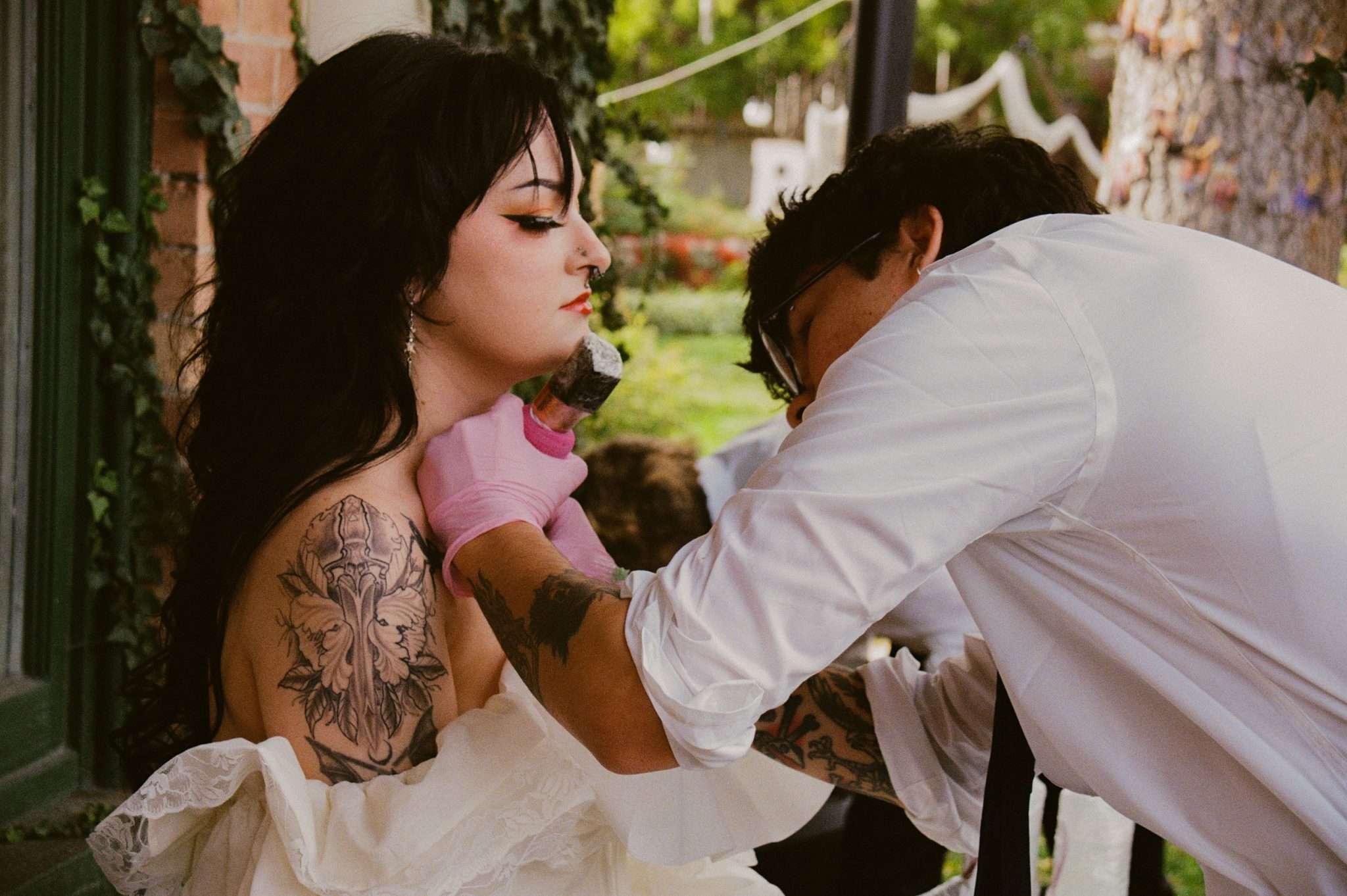 Their biggest expense was the tattoo artist. “He was willing to give us quite the industry/friend discount but I wanted to make it worth his while to show how much it meant to us that he was willing to help us with something like this.” Almost everything else was handmade or supported by their community. They came in under budget and paid for the wedding themselves, with a total spend of around $10k.