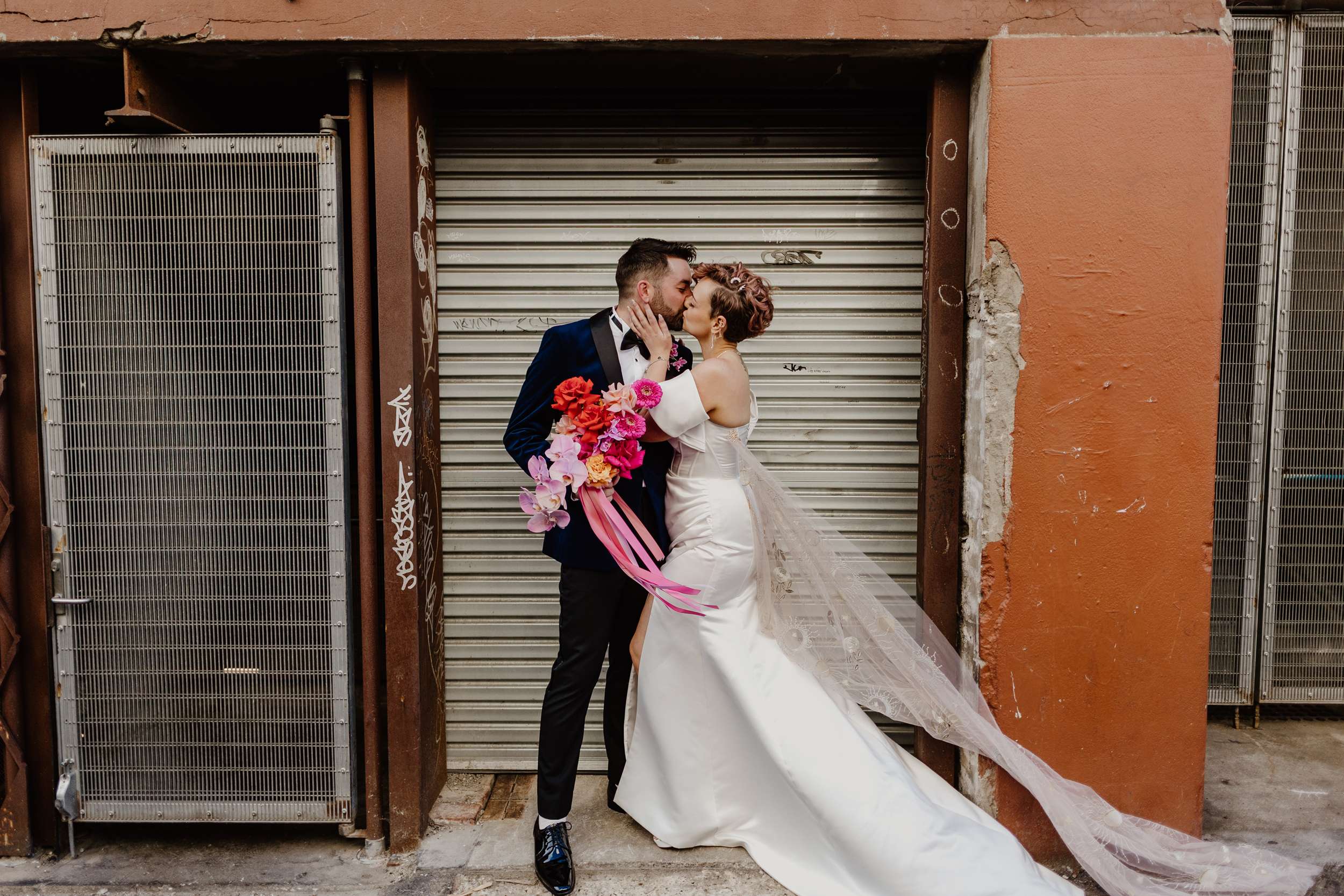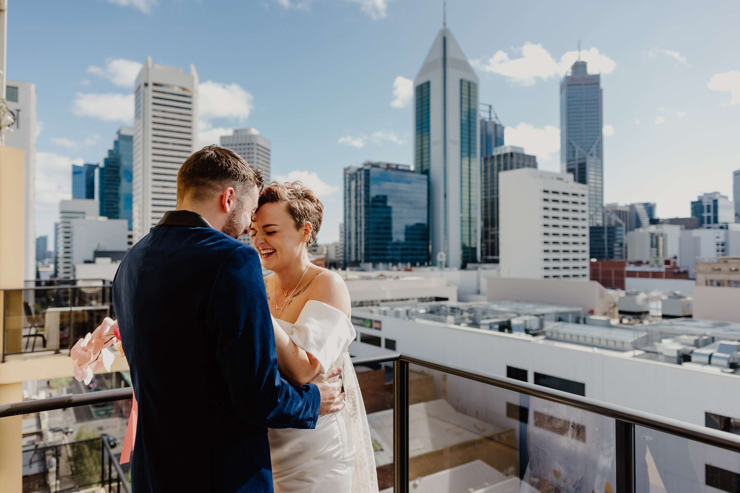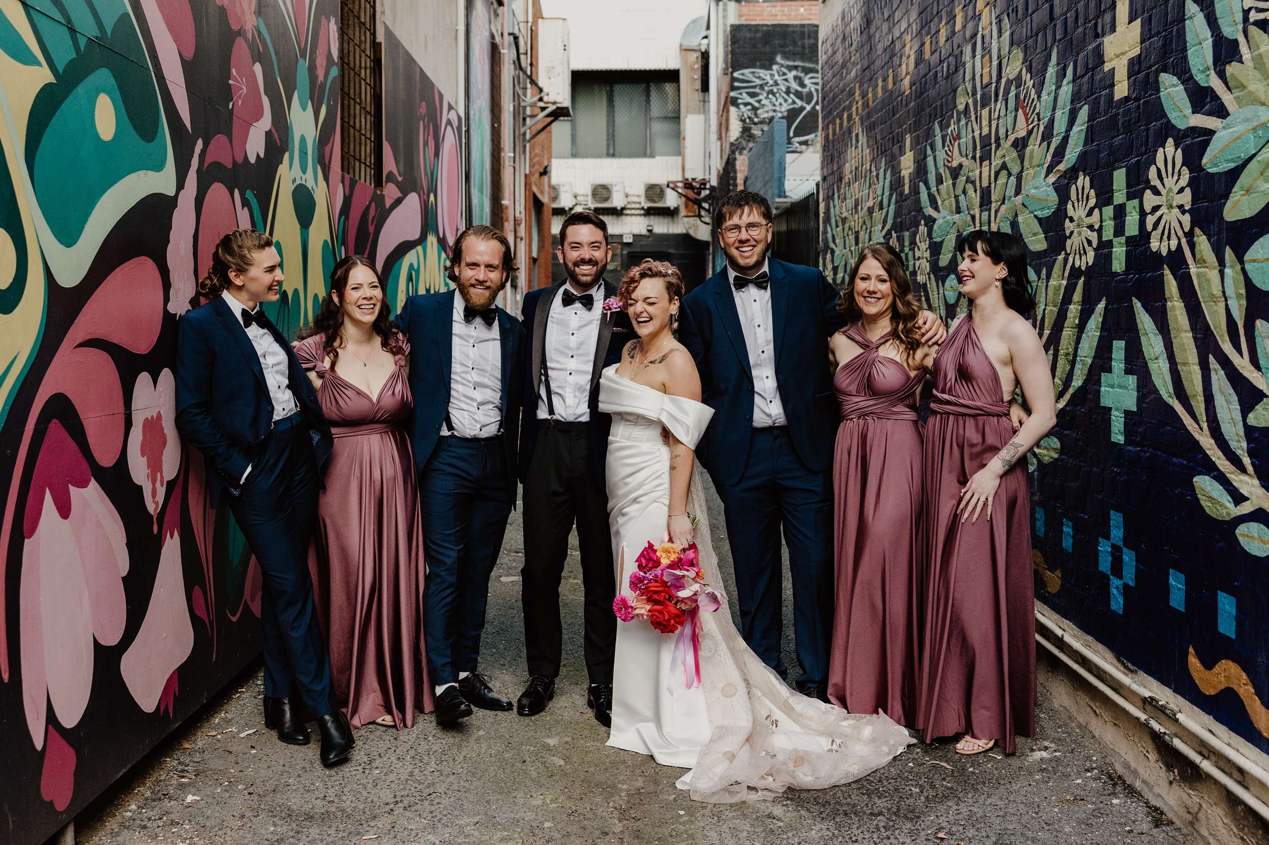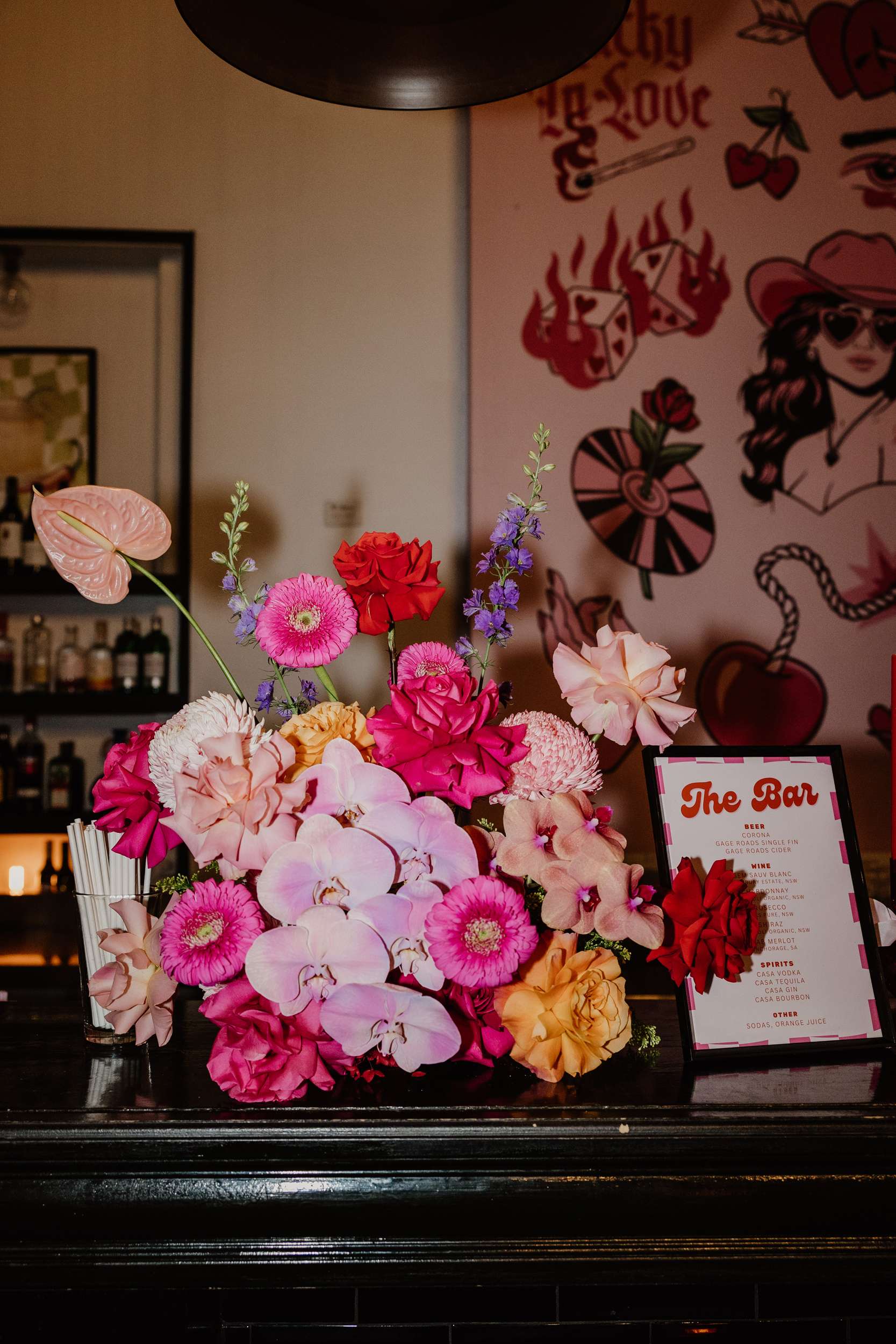 The day was held at Cherry Bomb Chapel in Perth, who handled all the décor and helped out with so many of the logistics, “In Perth our venue choices seemed limited to wineries, parks or beaches”, Georgia said. “As beautiful as they are, Cherry Bomb Chapel was so much more our style. The owners, Jodie and Chandre, have built an incredible space and assembled some amazing vendors with them. The venue was the biggest chunk of the budget, but that also came bundled with bar, food, furniture, décor and staff. Plus the girls from Cherry Bomb are absolute legends and made it worth every cent!”