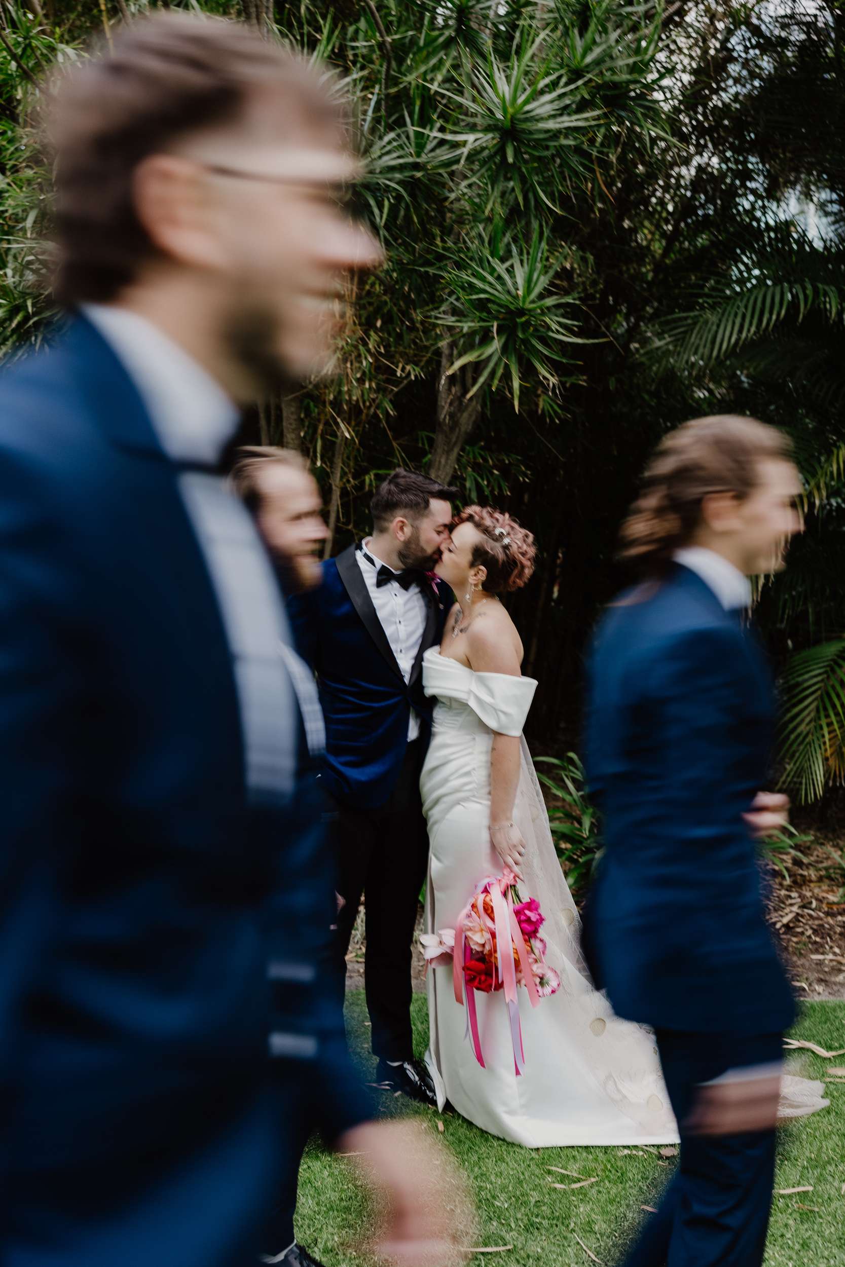 The ceremony was intimate, just 20 guests, with more people arriving for the party afterwards. “We are both the classic nerdy introverts who hate public speaking, so the rest of our guests joined us after to celebrate at the reception. Nathan walked to Porter Robinson, Georgia walked to Sleep Token. Our celebrant, Eddie, was an absolute star, even for a small crowd. We rolled a D20 dice to see who would say their vows first. Our vows were very us…weird, and included the phrases ‘Ben to my Lesley, Tuilo to my Miguel’ which are references to Parks & Rec and Road to El Dorado.“