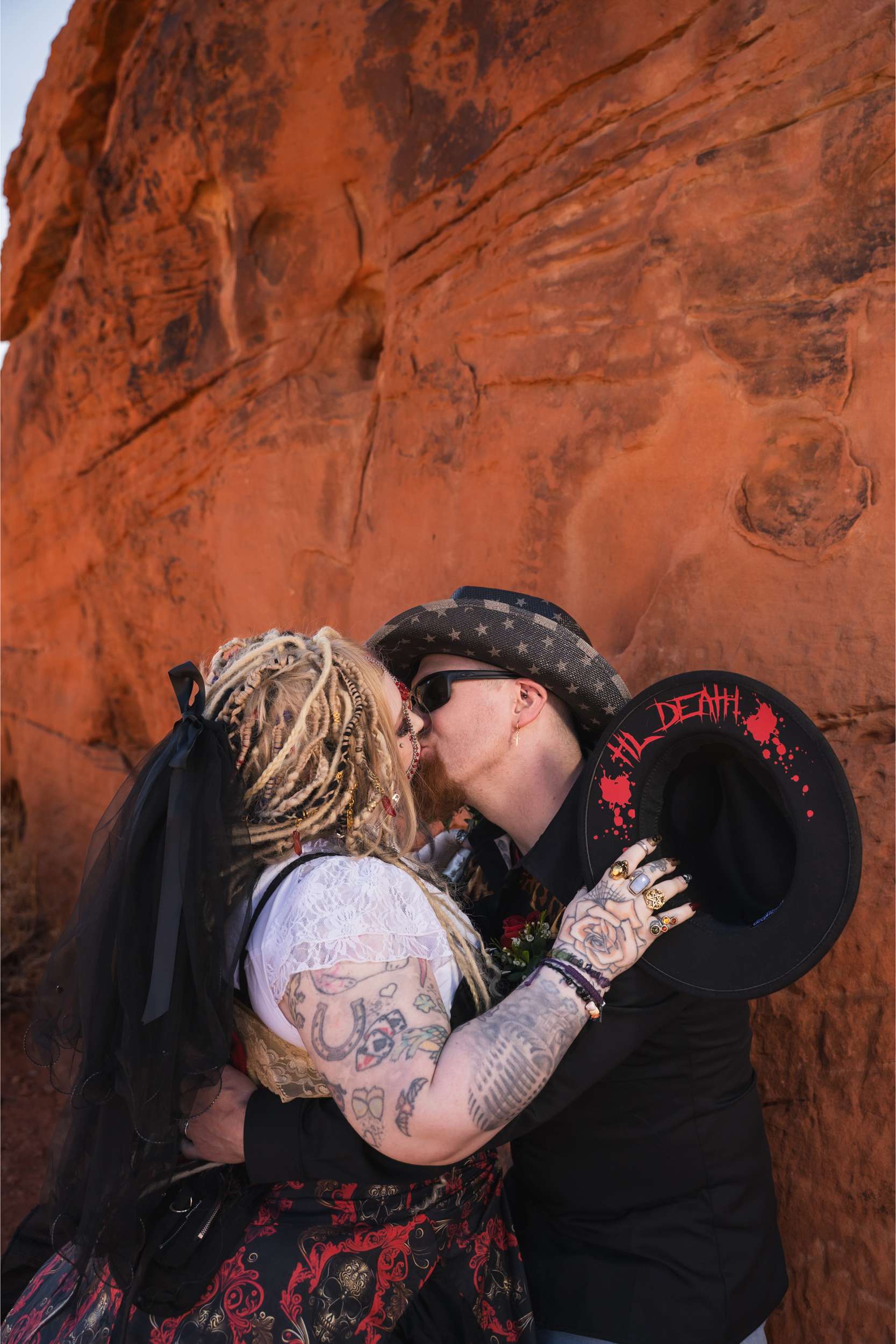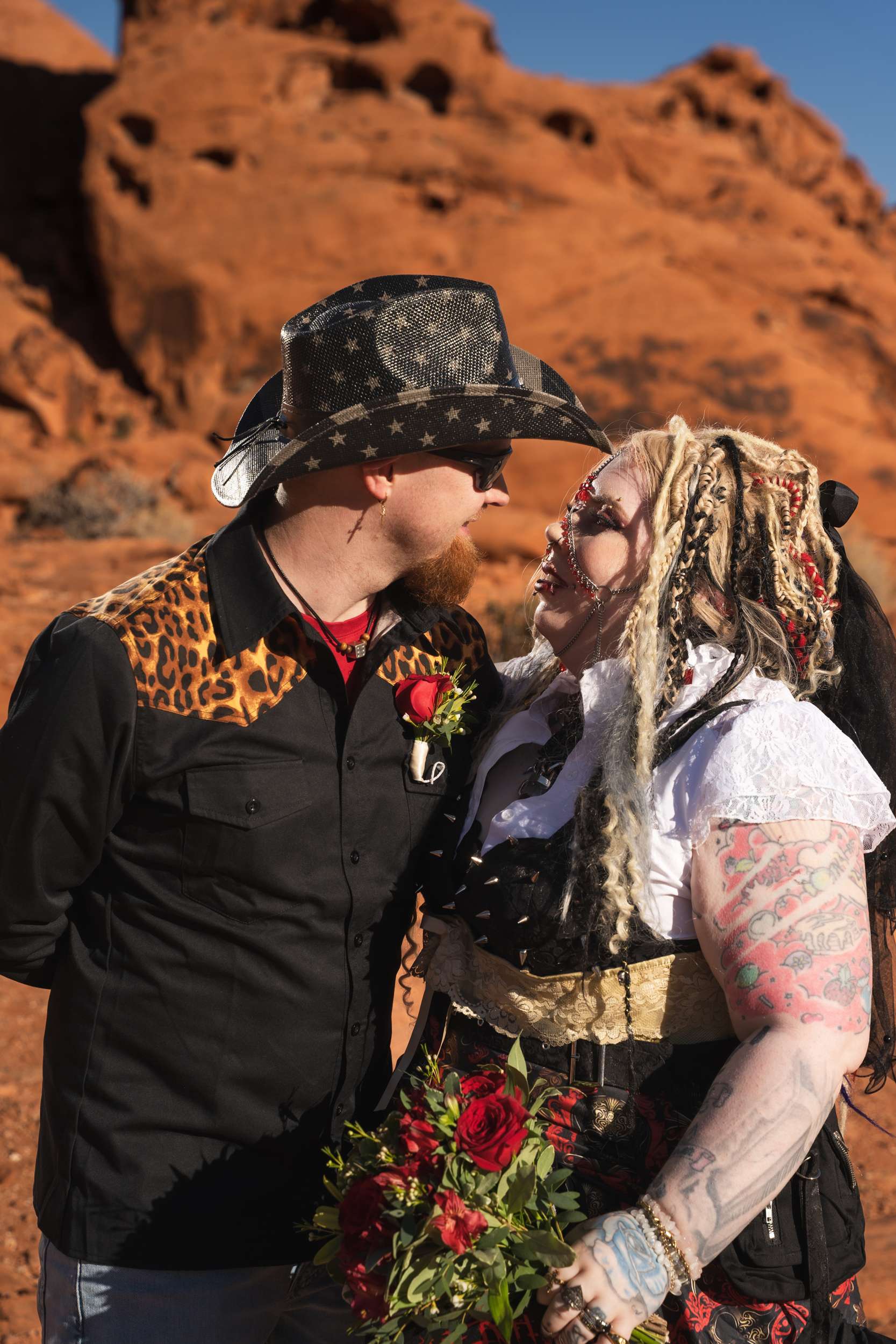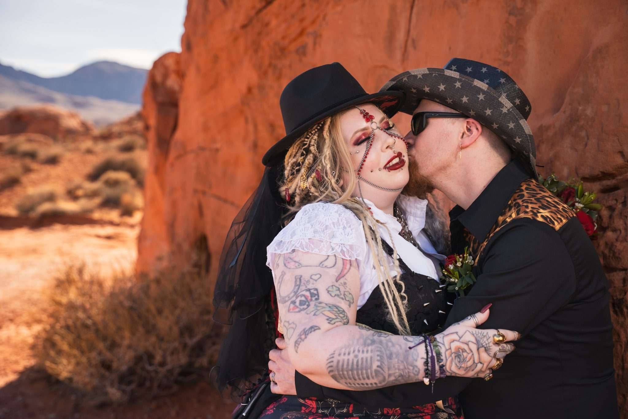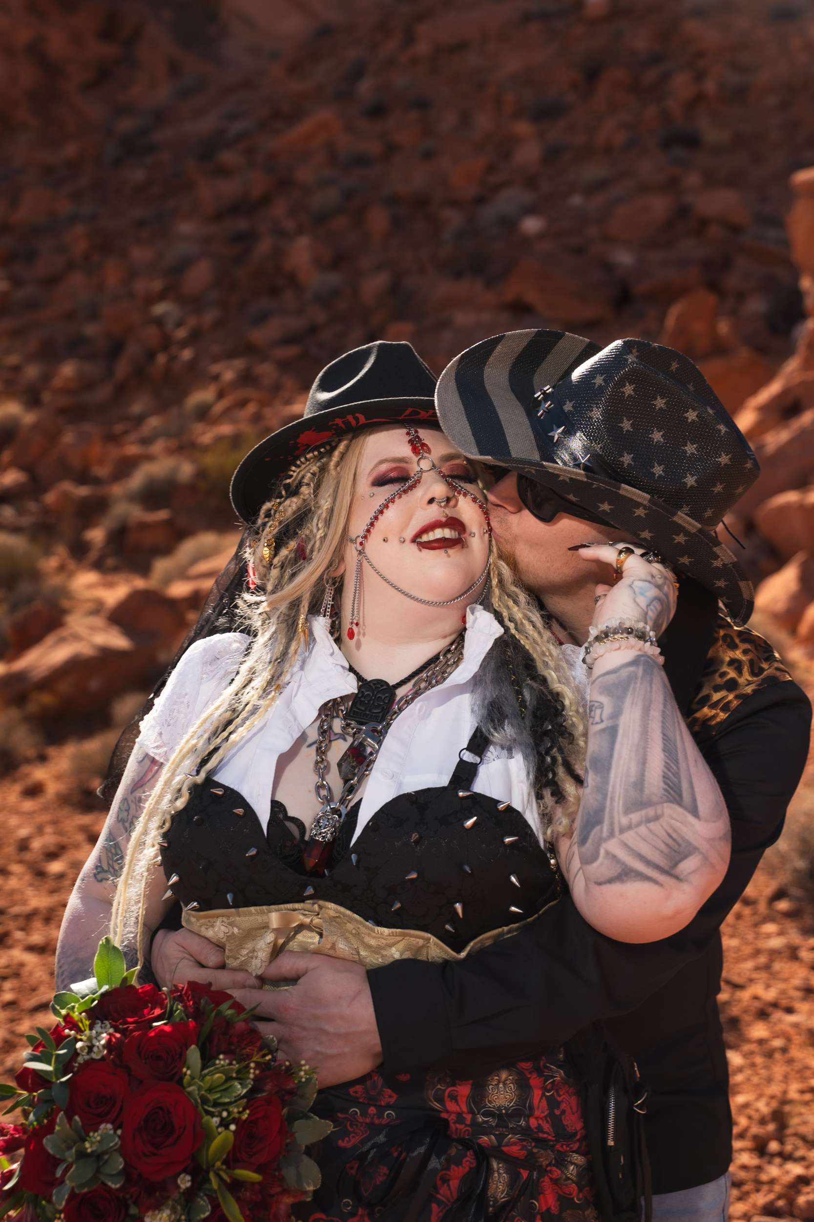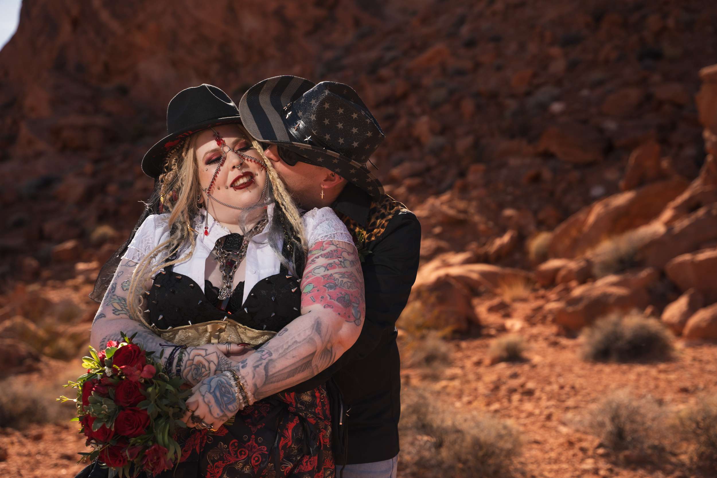There was no formal reception. They went to Valley of Fire for their photos and then went for for all0day breakfast at Denny’s afterwards. “We’d got to know our waitress so we walked in presenting her with our rings and telling her all about our day and they were all so happy for us!” Kitty said. The following day, they went to The Cheesecake Factory for their version of wedding cake.