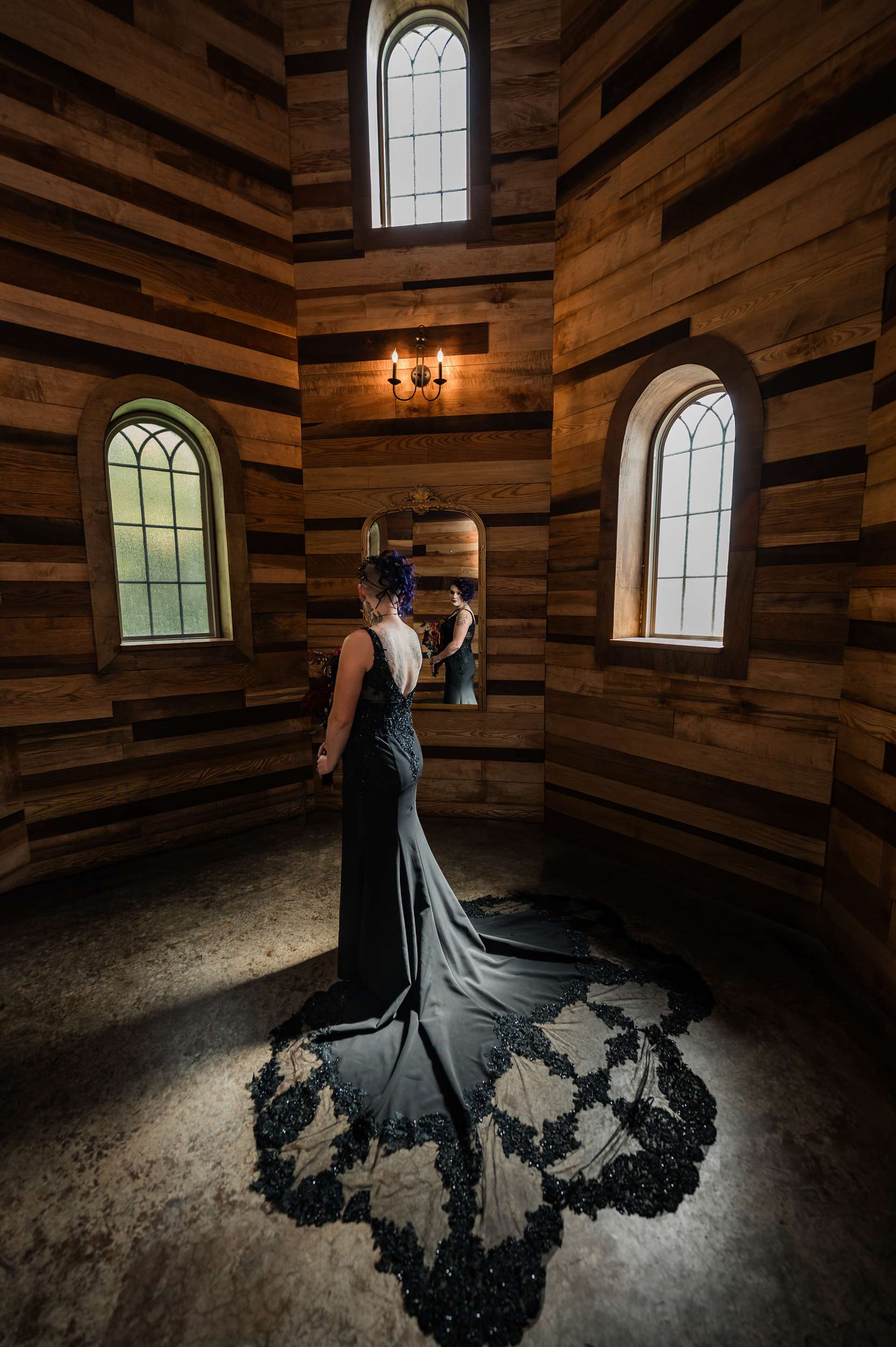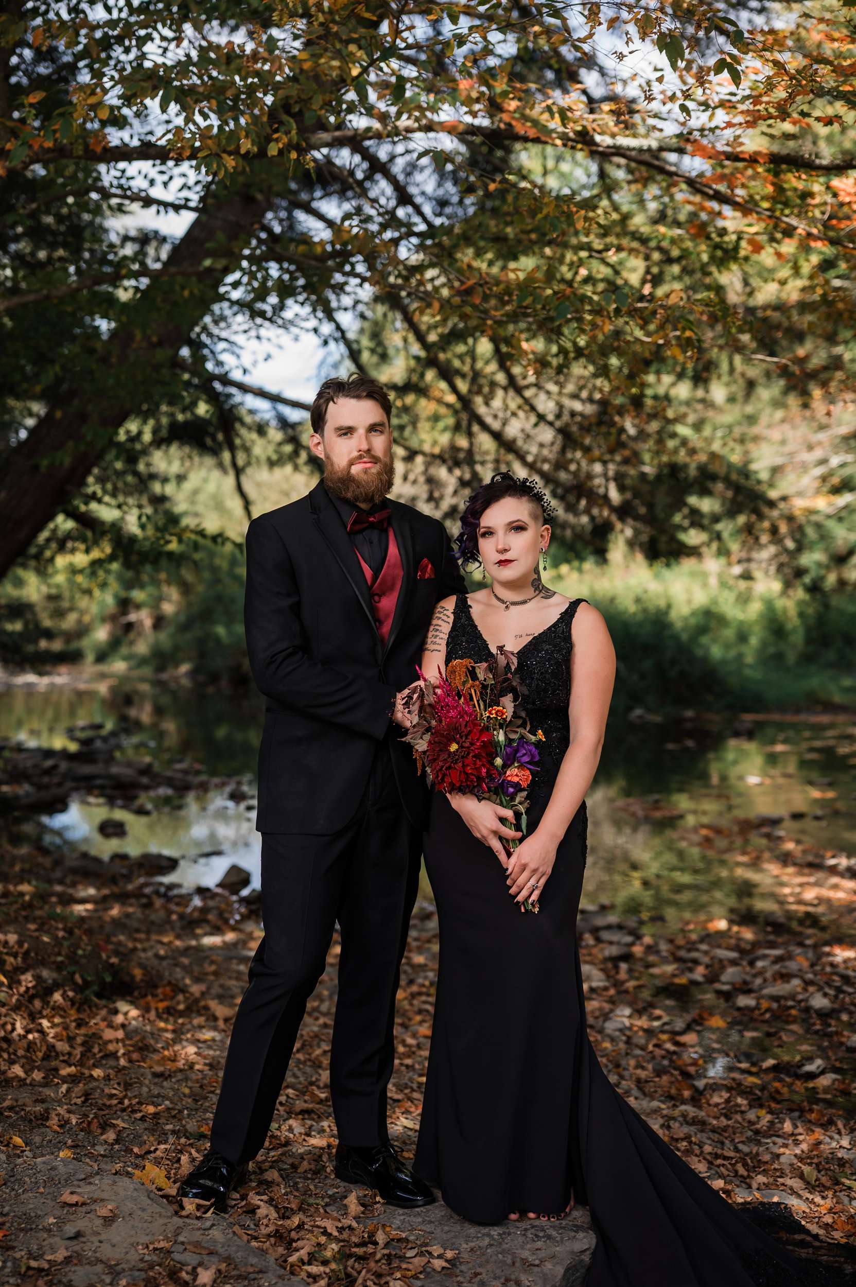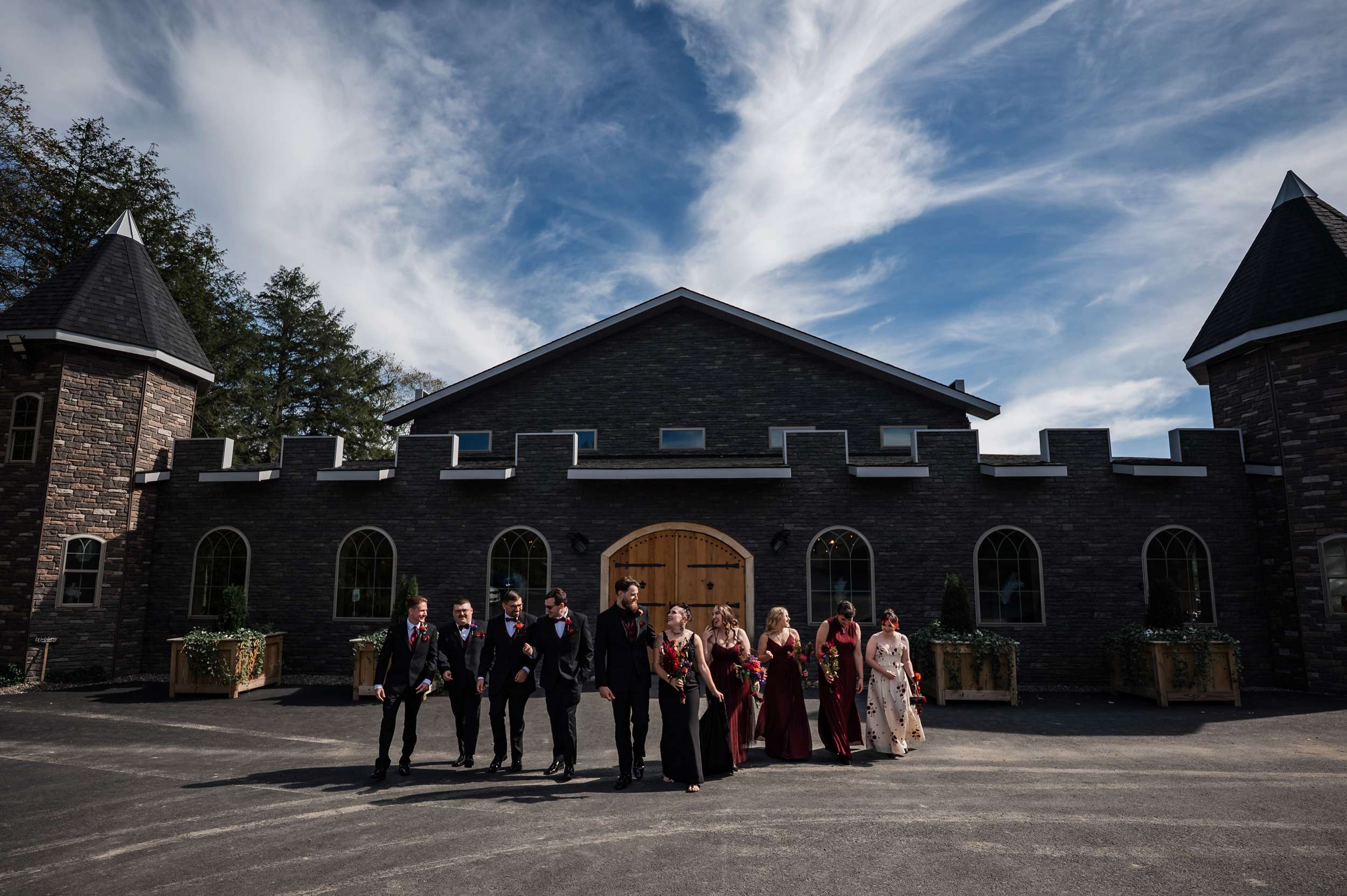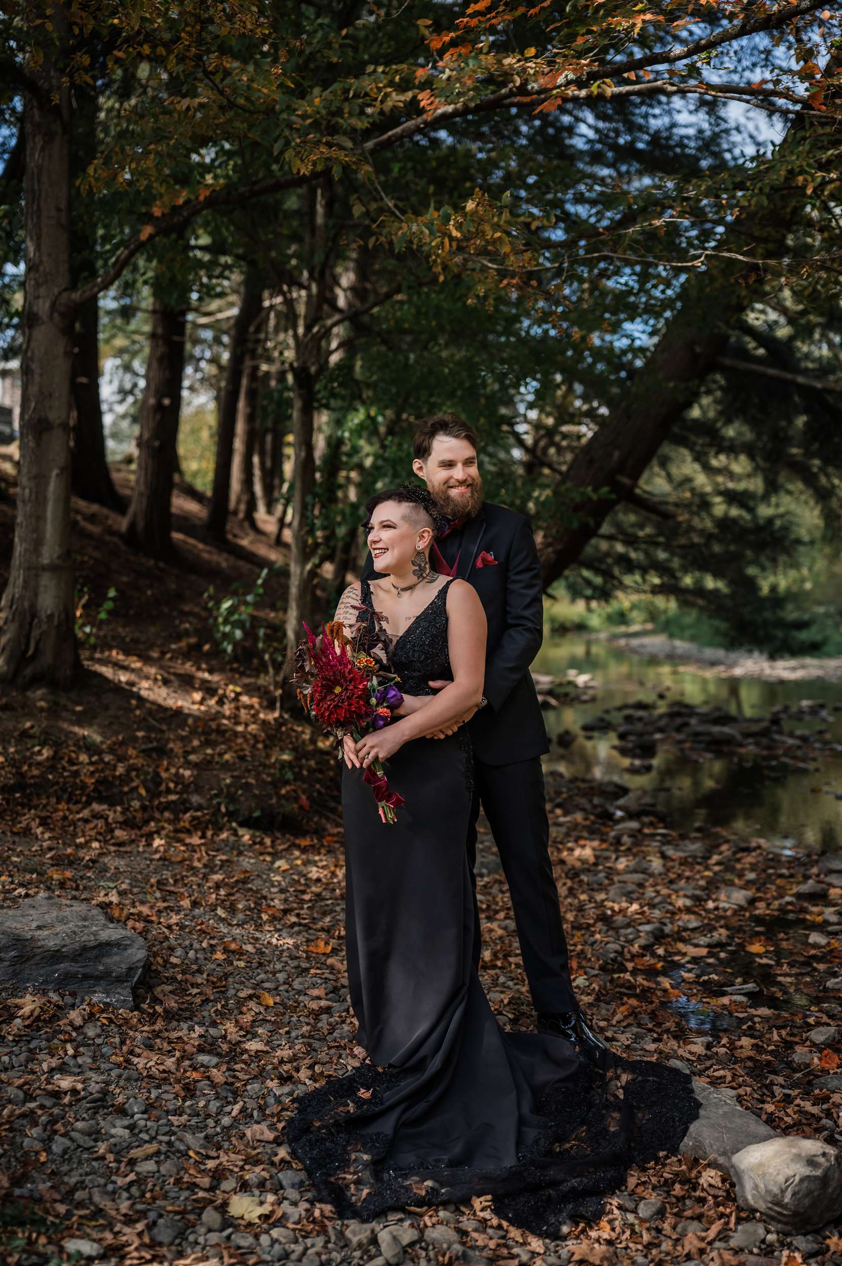 Sarah and Chris built their wedding around the premise of ’til death do us part. They fully went for it with the gothic symbolism, inspired The Addams Family and their own relationship. Stoney Creek Castle in Earlville NY provided the setting with it’s stone walls and heavy doors perfectly matching the tone they wanted for the day.